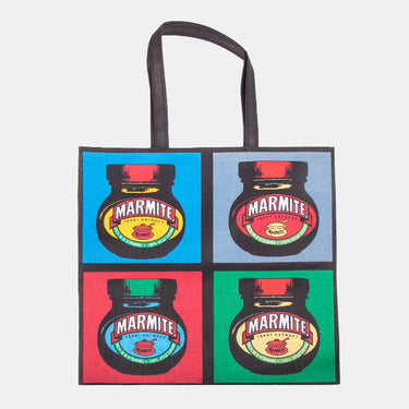 This portfolio bag makes a great gift and is just perfect for anything. The Marmite Andy Warhol pop art style adds a quirky edge. A gym bag, gift bag, a book bag and a shopping bag. It saves the environment and can be re-used by the recipient of your gift.