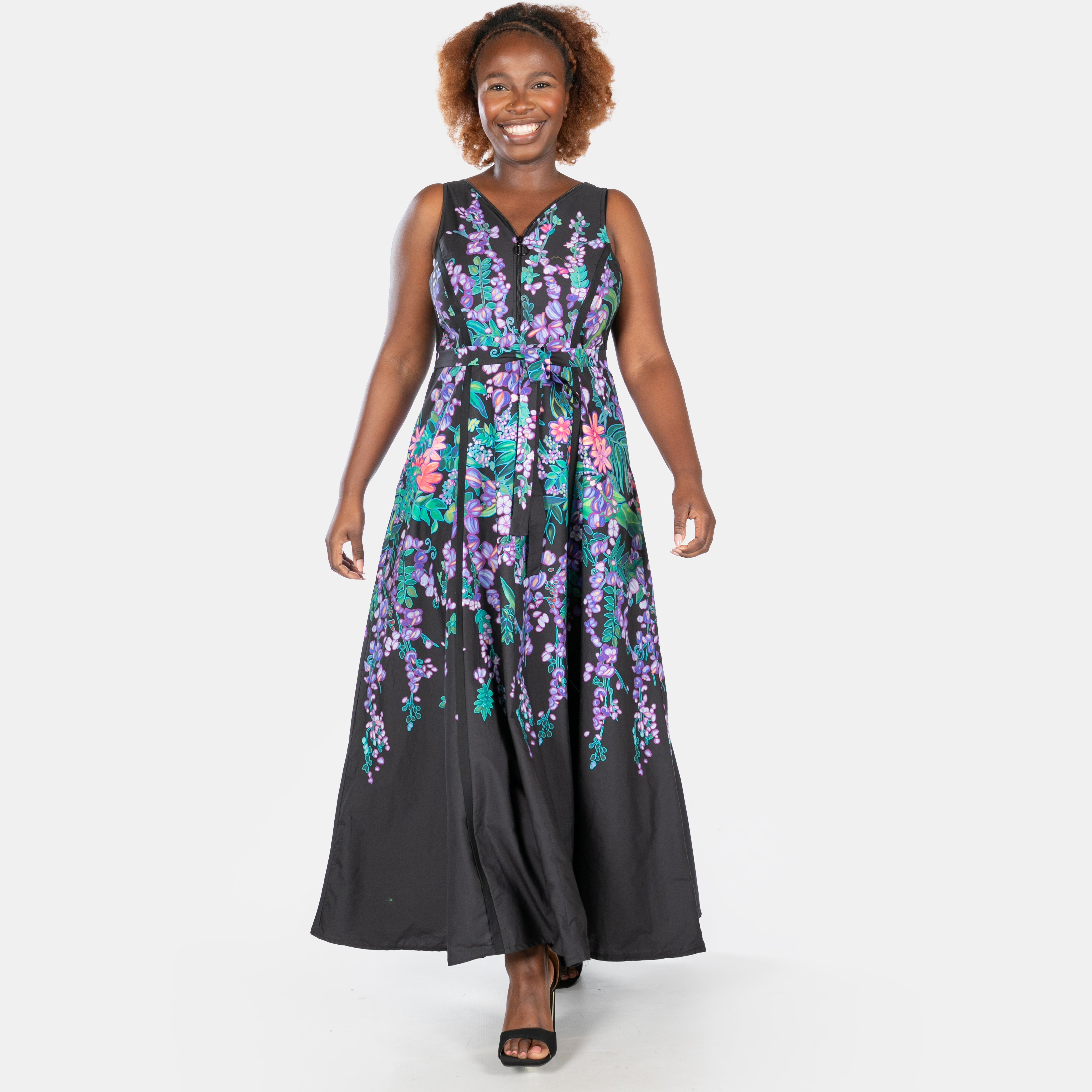 A modern take on a Regency period design, this long dress will take you from a picnic to  ballroom dancing and Champagne dinners - just slip on a pair of heels!