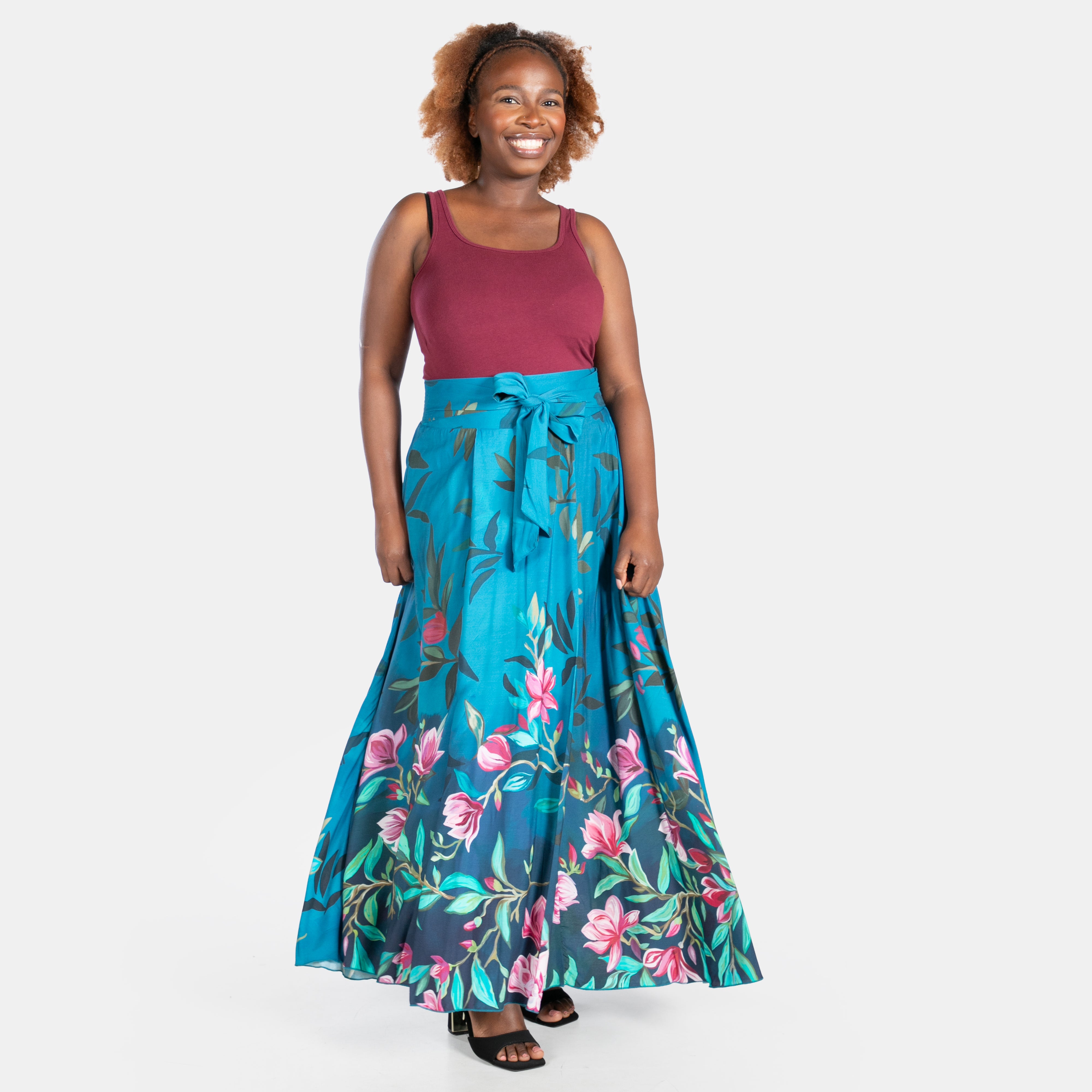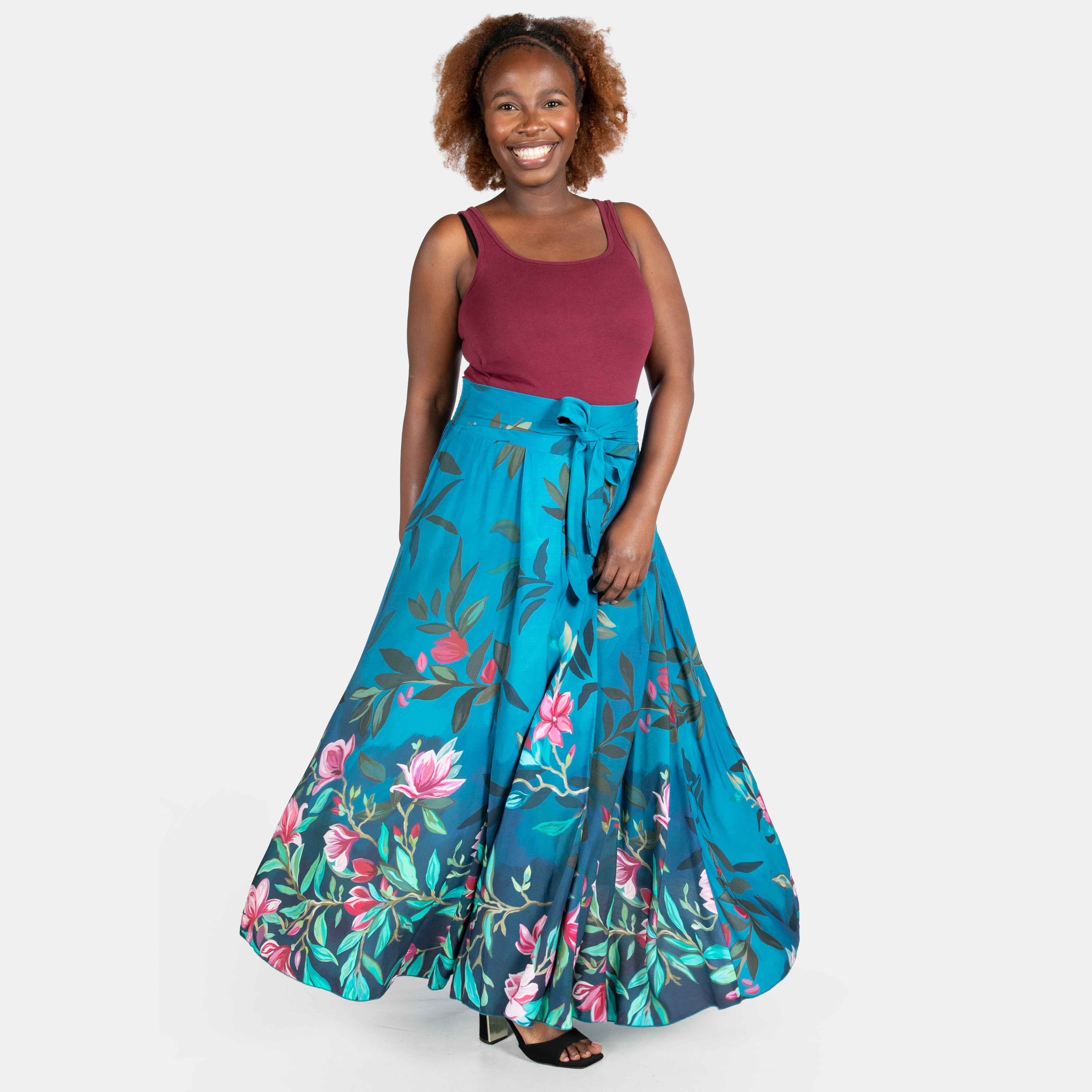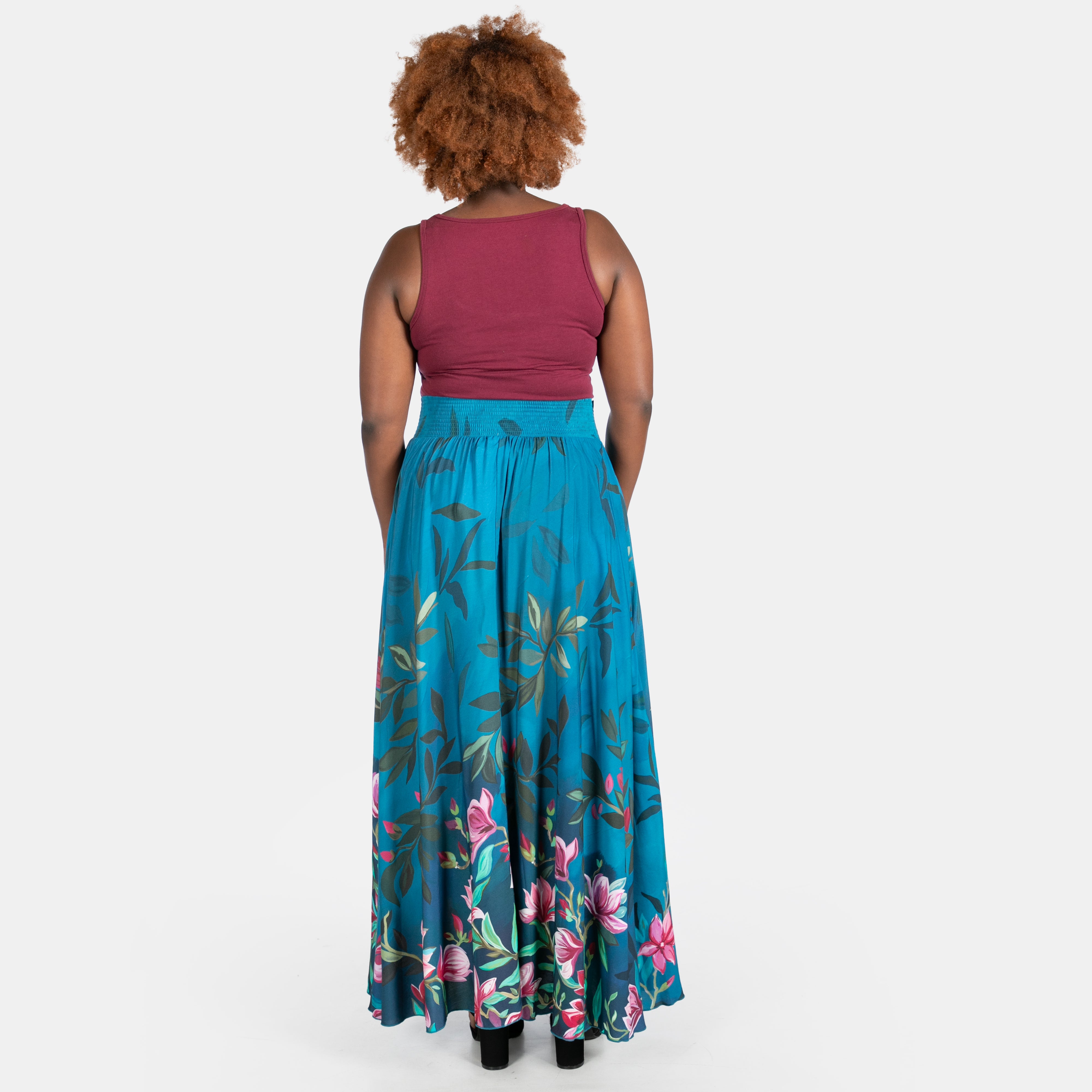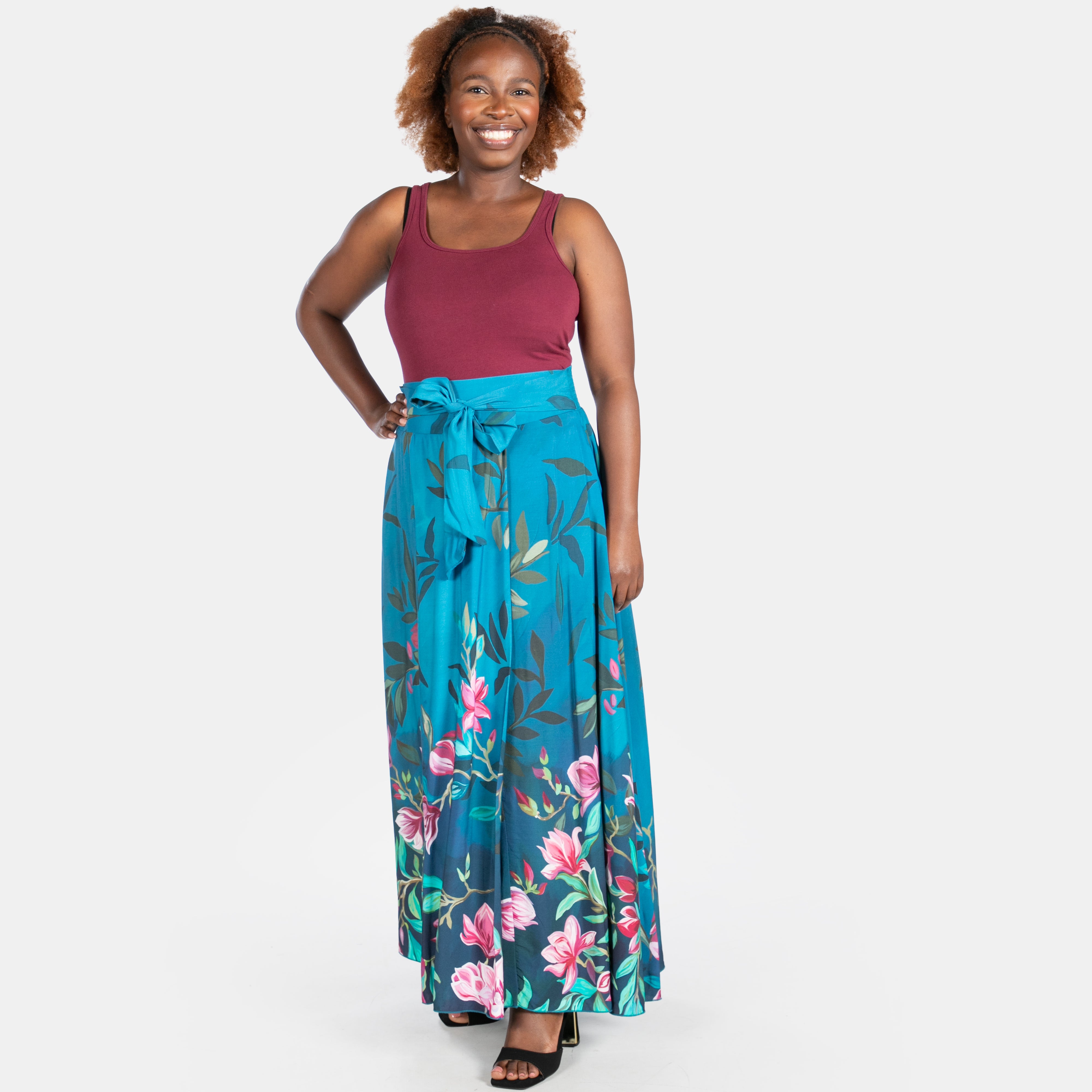 This flowing long skirt adds an elegant statement garment to any fashionista's wardrobe.