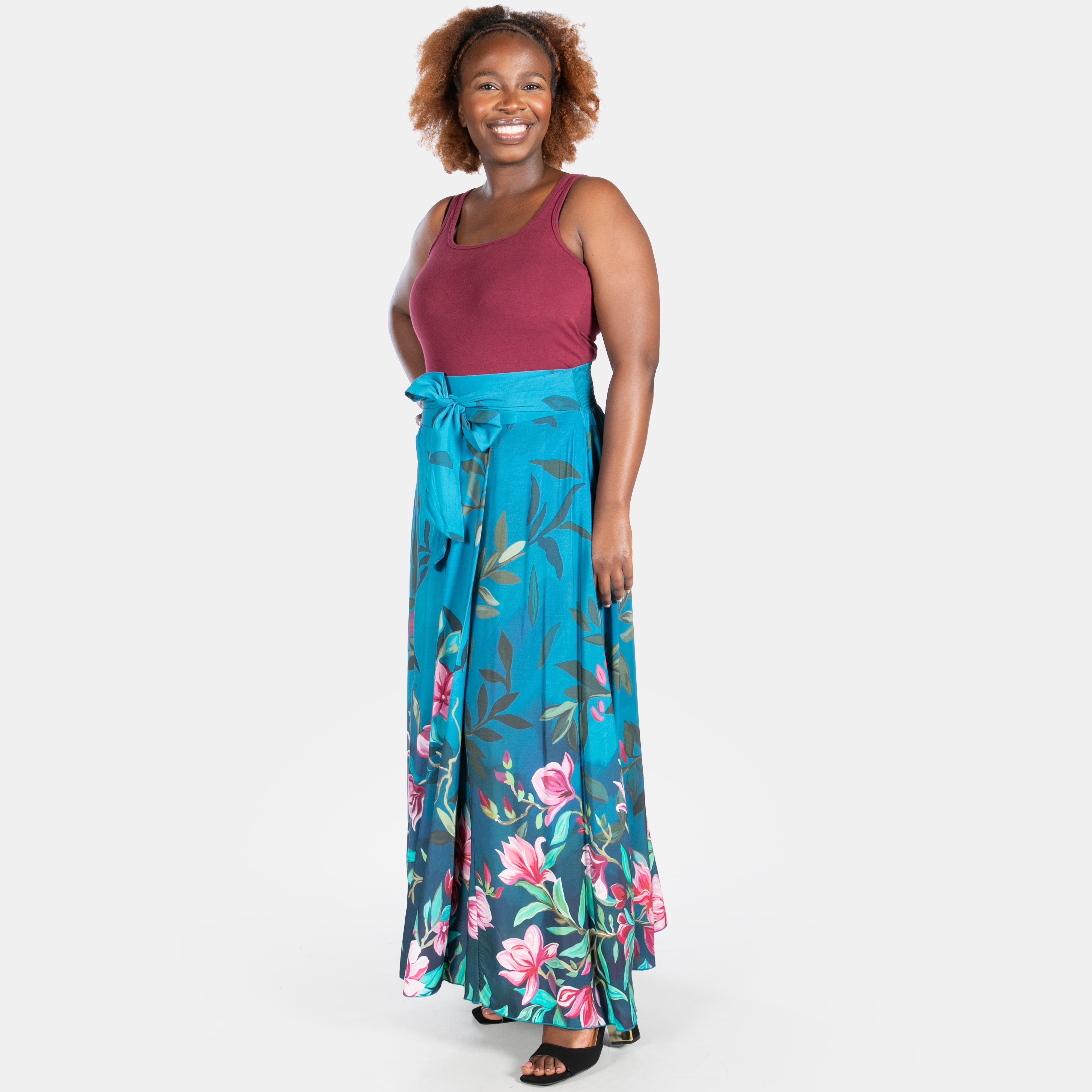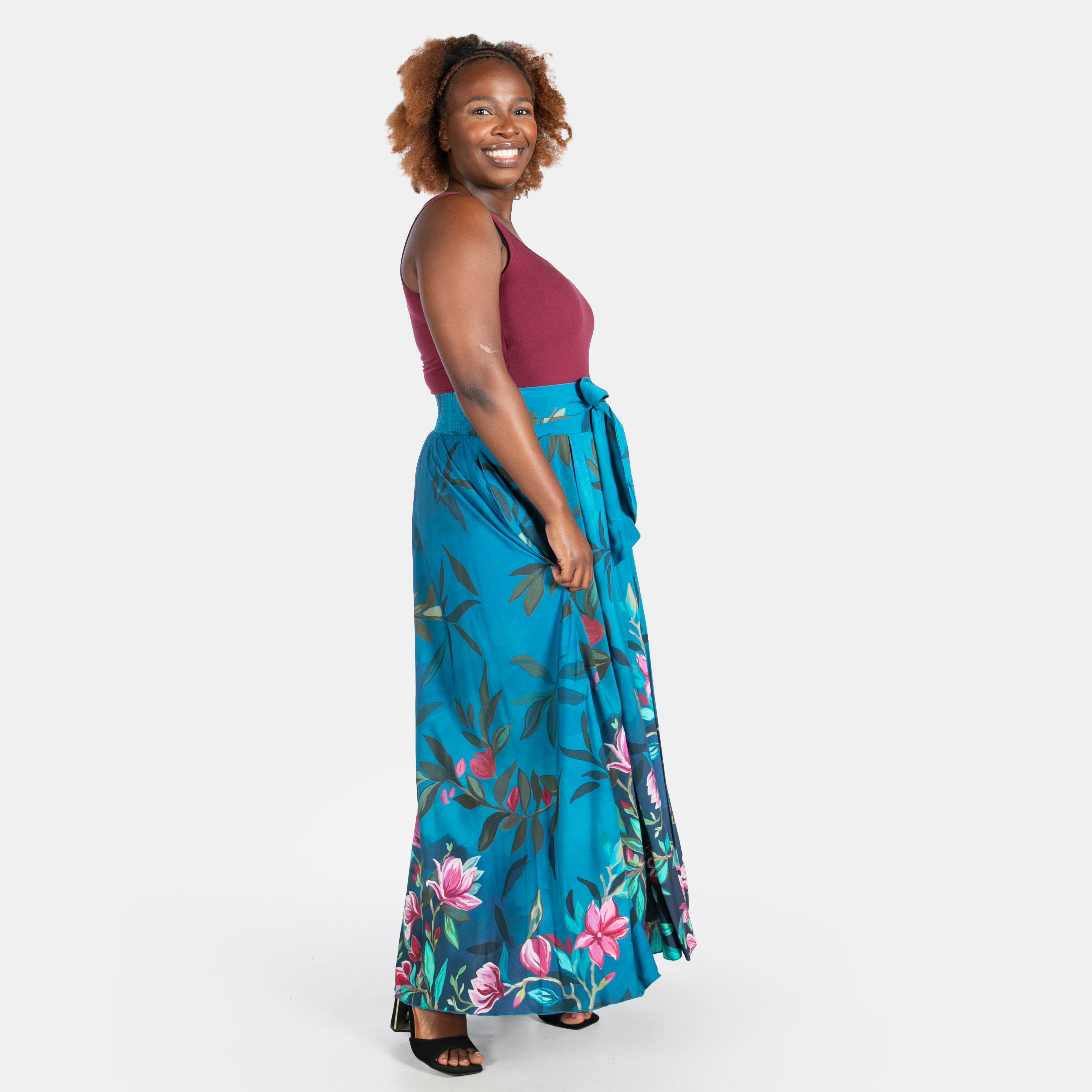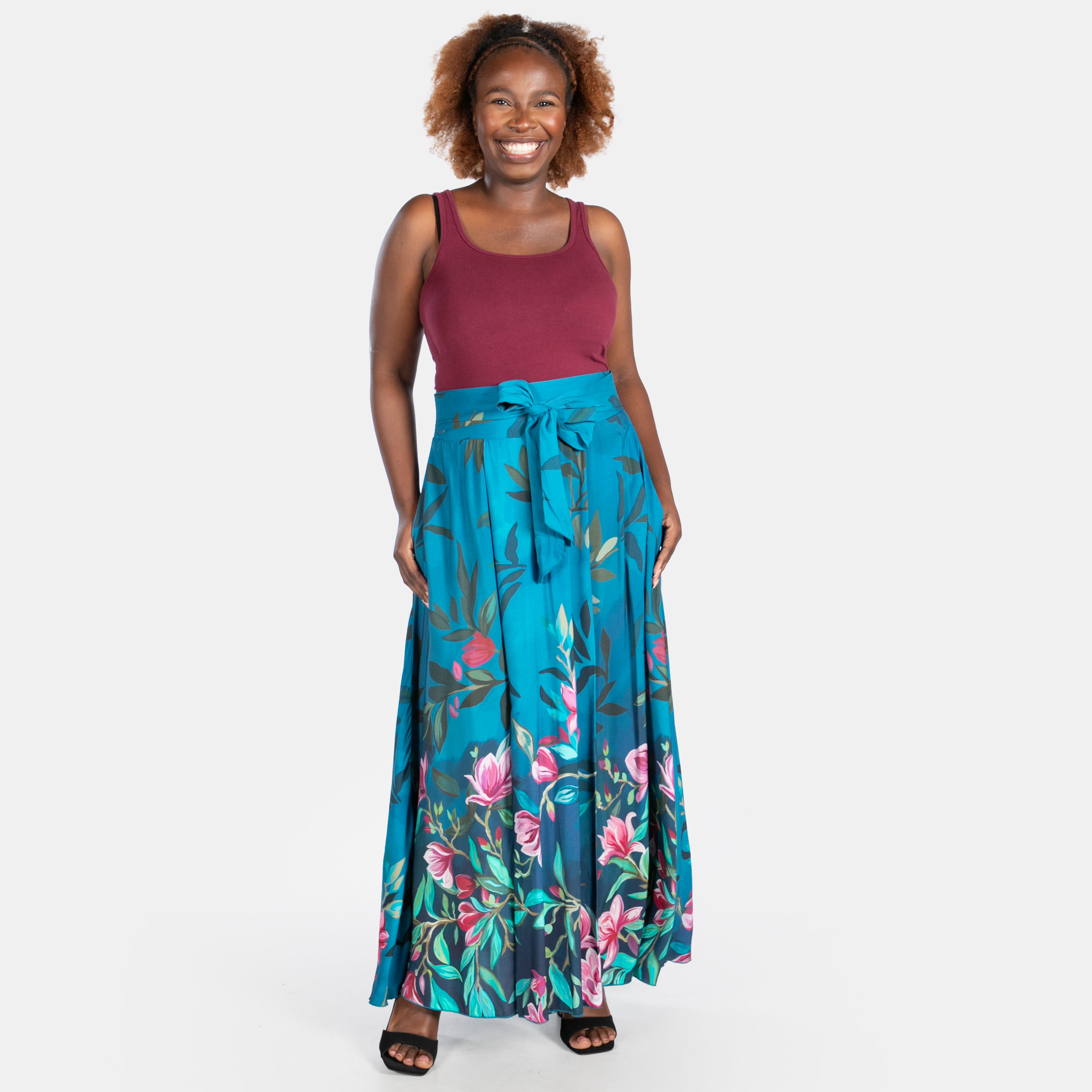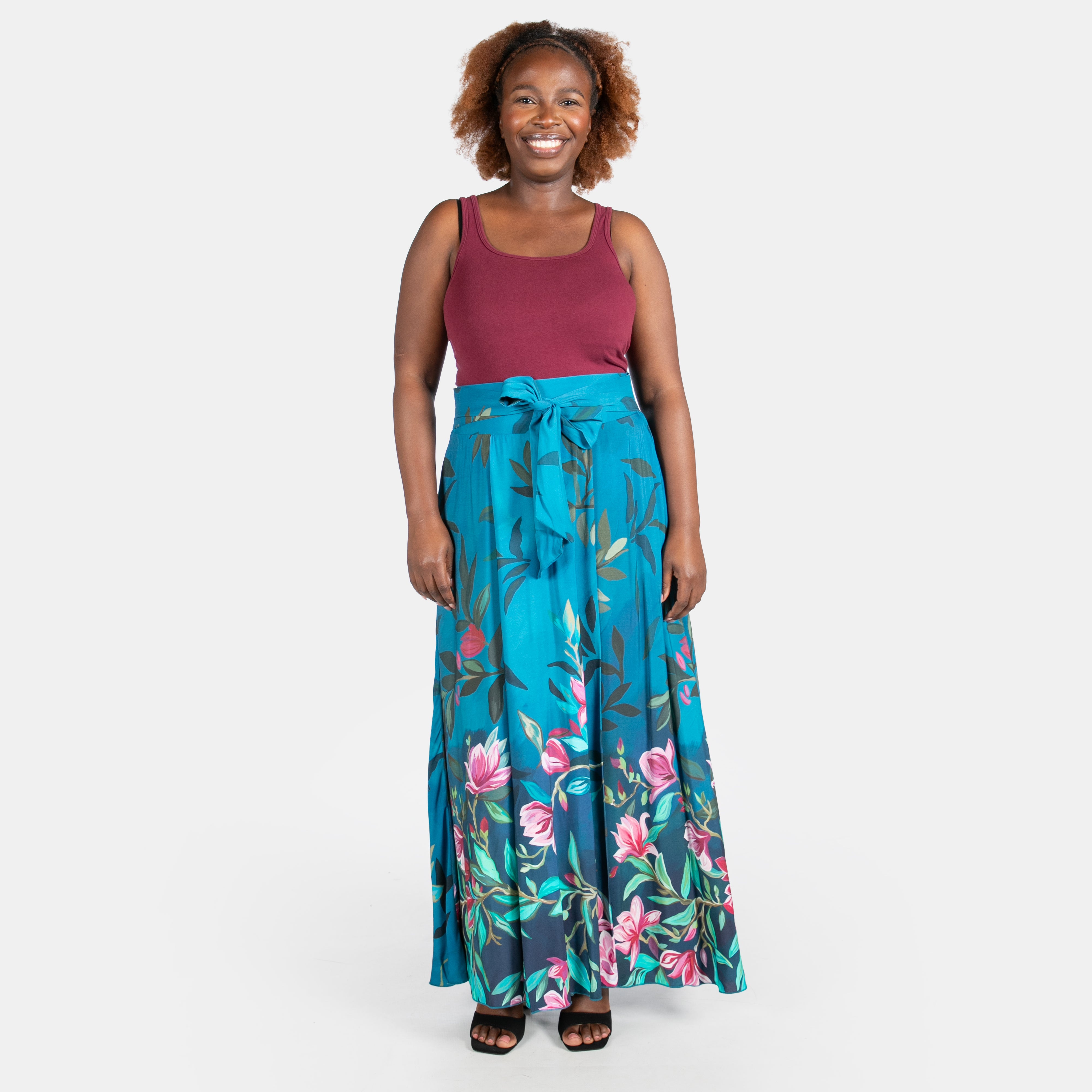 This flowing long skirt adds an elegant statement garment to any fashionista's wardrobe.