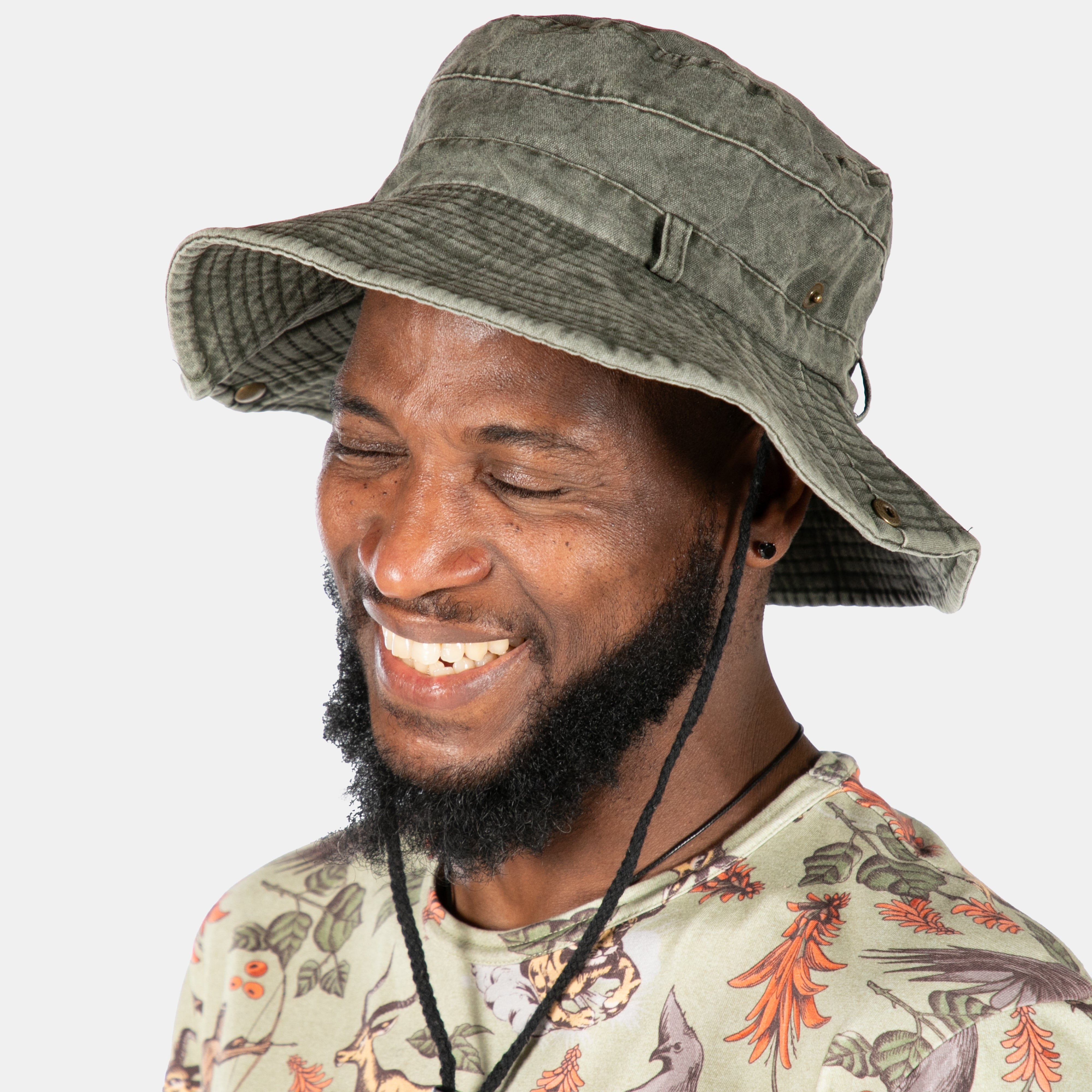Crafted in breathable denim, the Ananias hat also features an adjustable chin strap and belt loops at the base of the crown so that you can personalise and accessorise your hat with a scarf or belt.