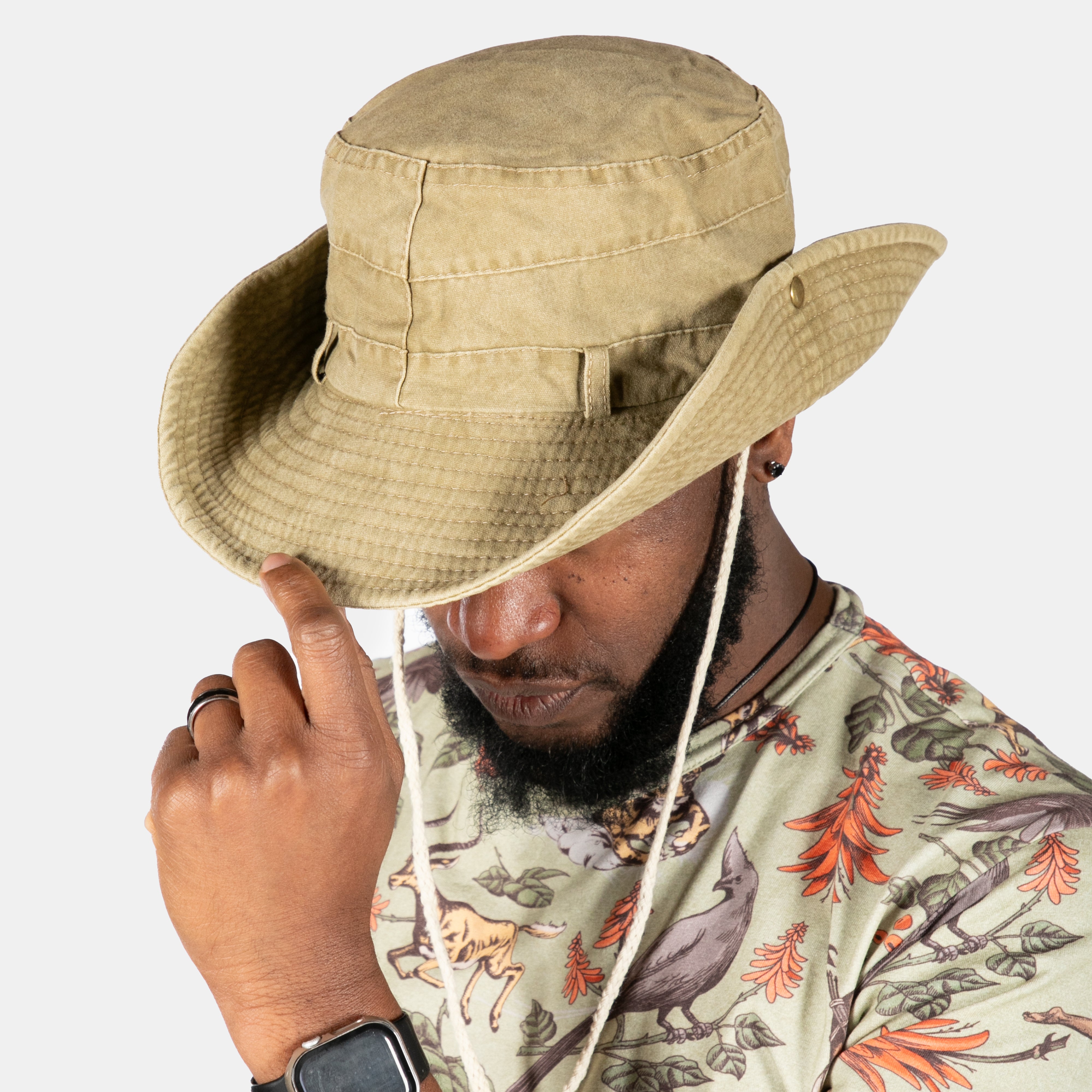 Crafted in breathable denim, the Ananias hat also features an adjustable chin strap and belt loops at the base of the crown so that you can personalise and accessorise your hat with a scarf or belt.