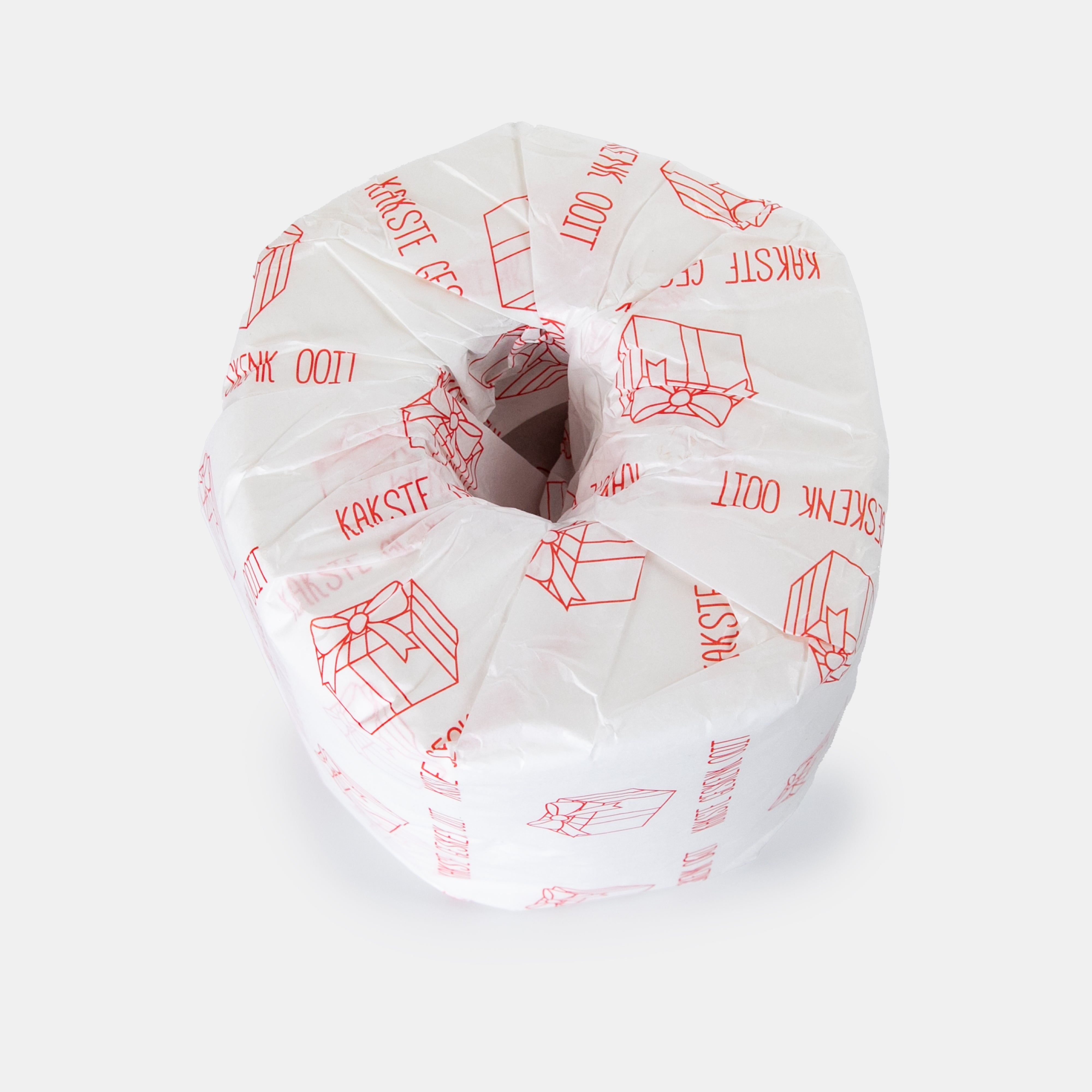 2 ply white toilet paper wrapped in printed tissue making for a hilarious Christmas morning!