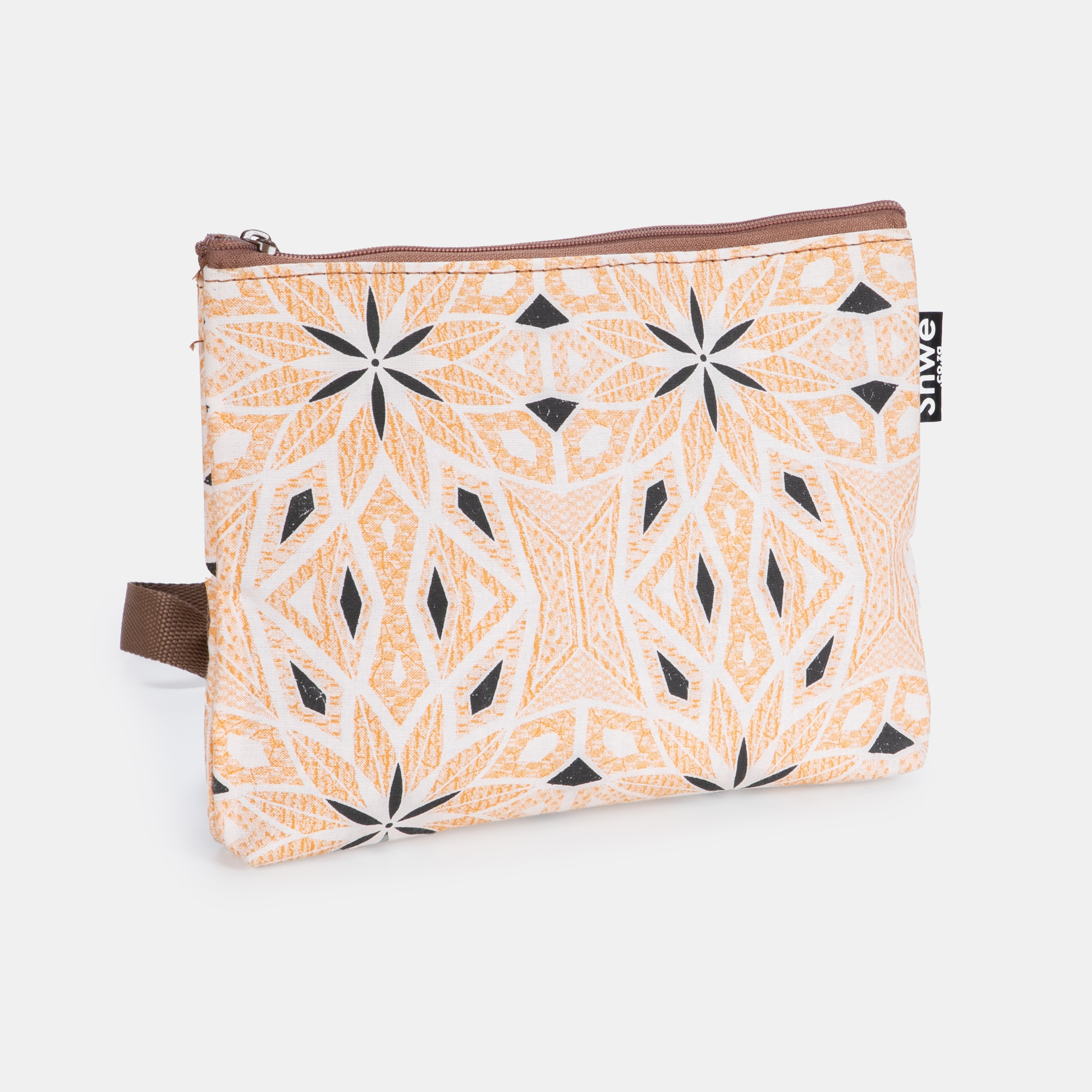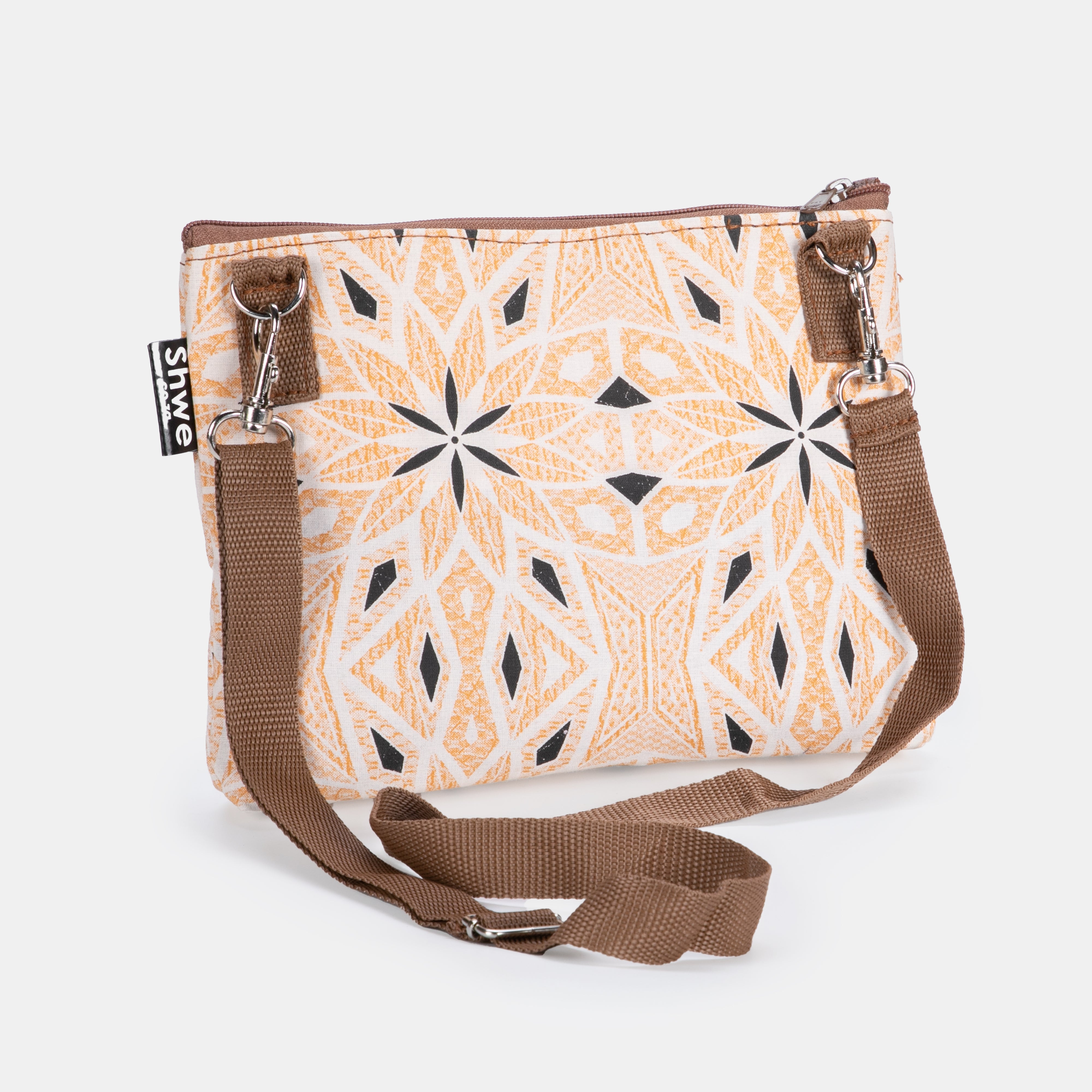 This proudly South African bag is crafted from 100% Cotton and features a detachable strap The inner lining is made from recycled or recovered waste materials which means each one in unique. The entire top of the bag closes with a zip. PLEASE BE ADVISED THAT DUE TO THE UNIQUE HAND MANUFACTURE OF EACH BAG, THE FABRIC DESIGN MAY DIFFER SLIGHTLY TO THE ONES IN OUR IMAGES.