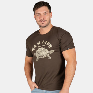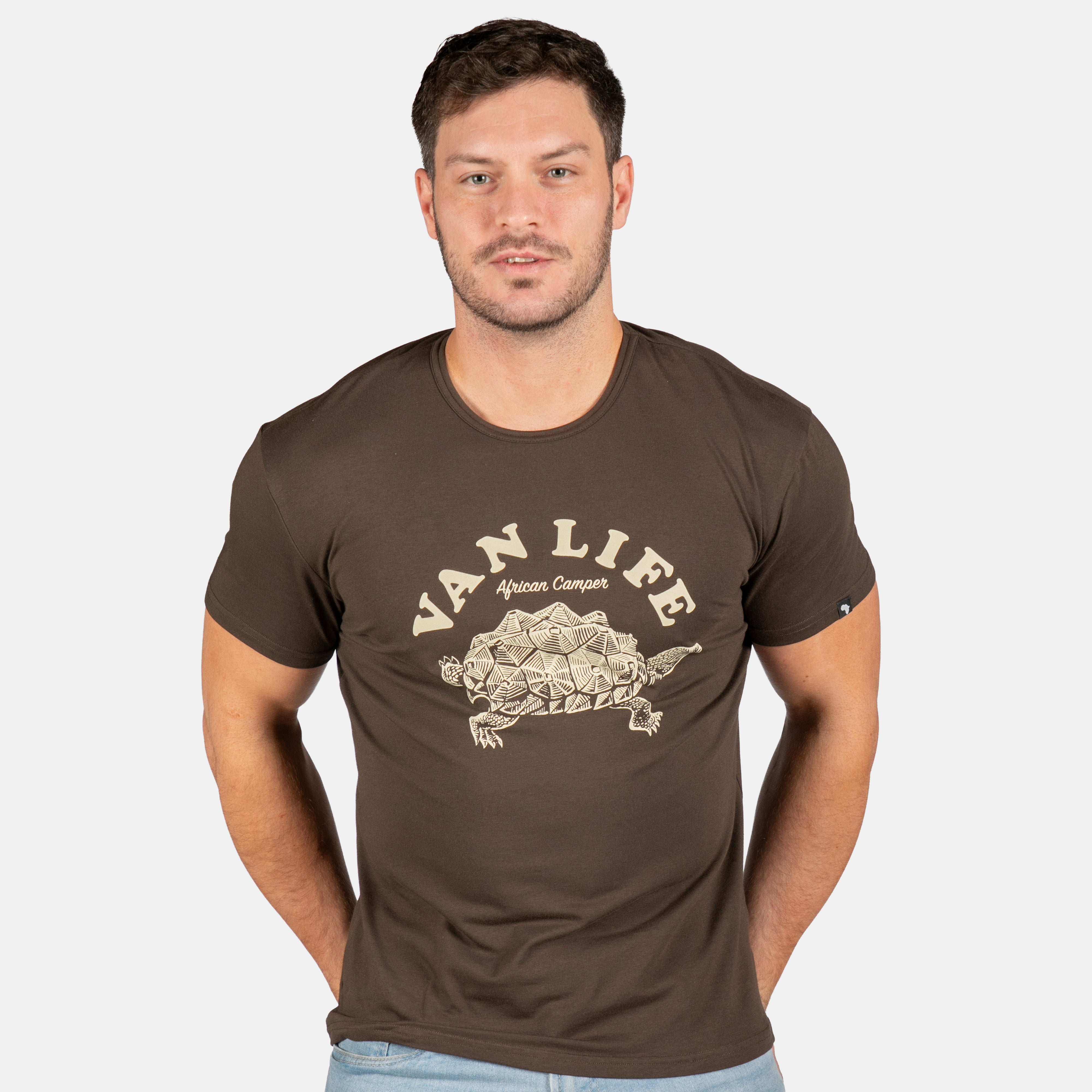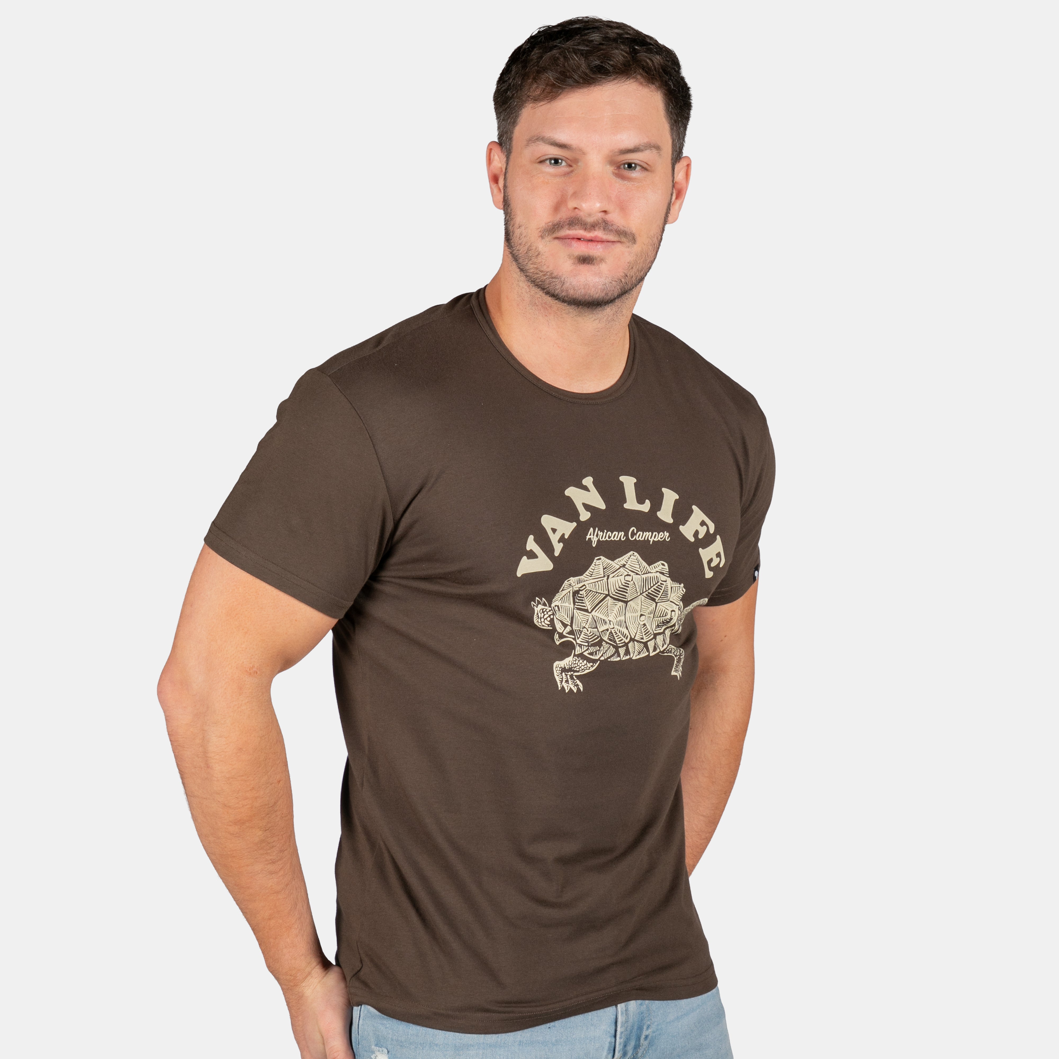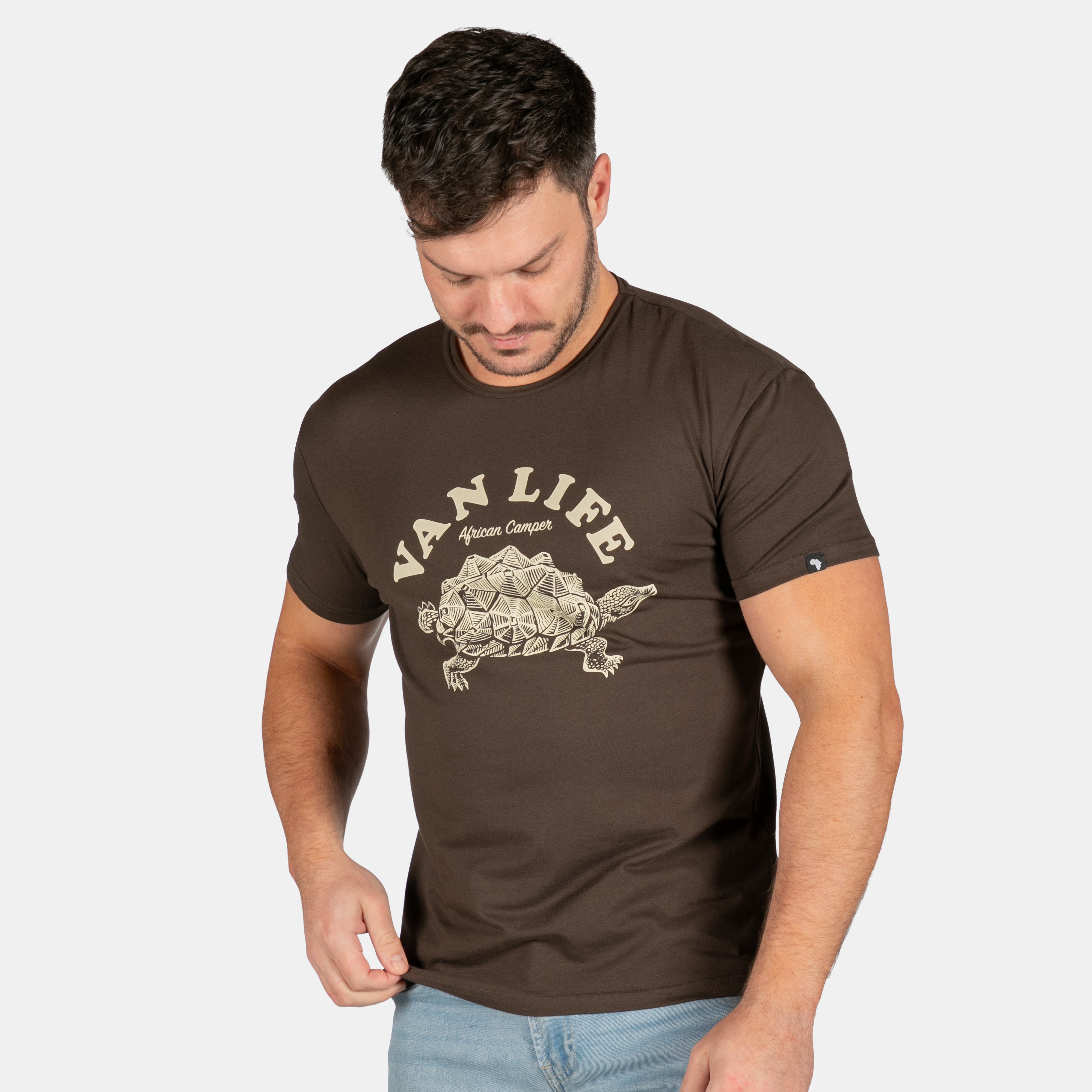 Embrace the nomadic spirit with this playful tee featuring a quirky tortoise design.