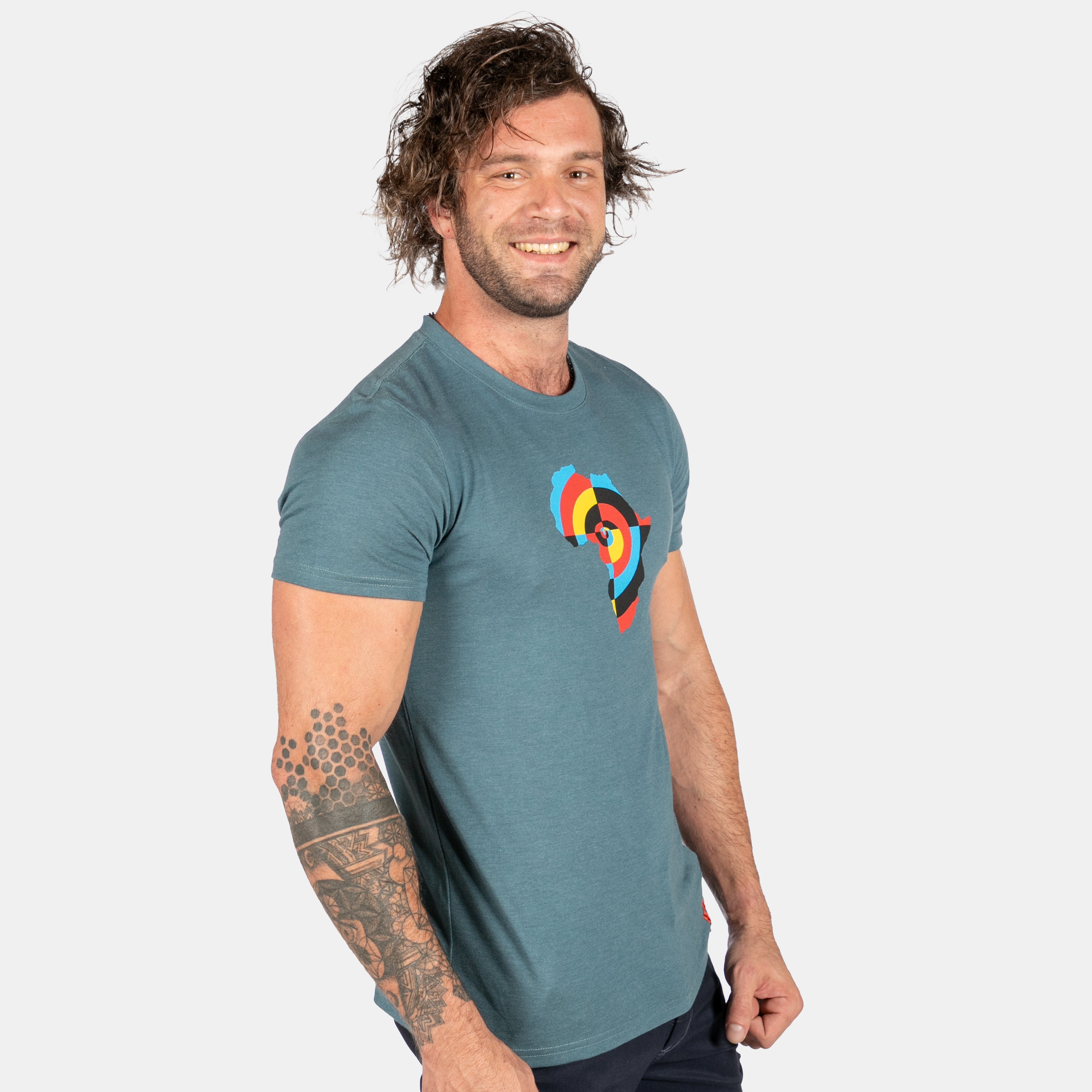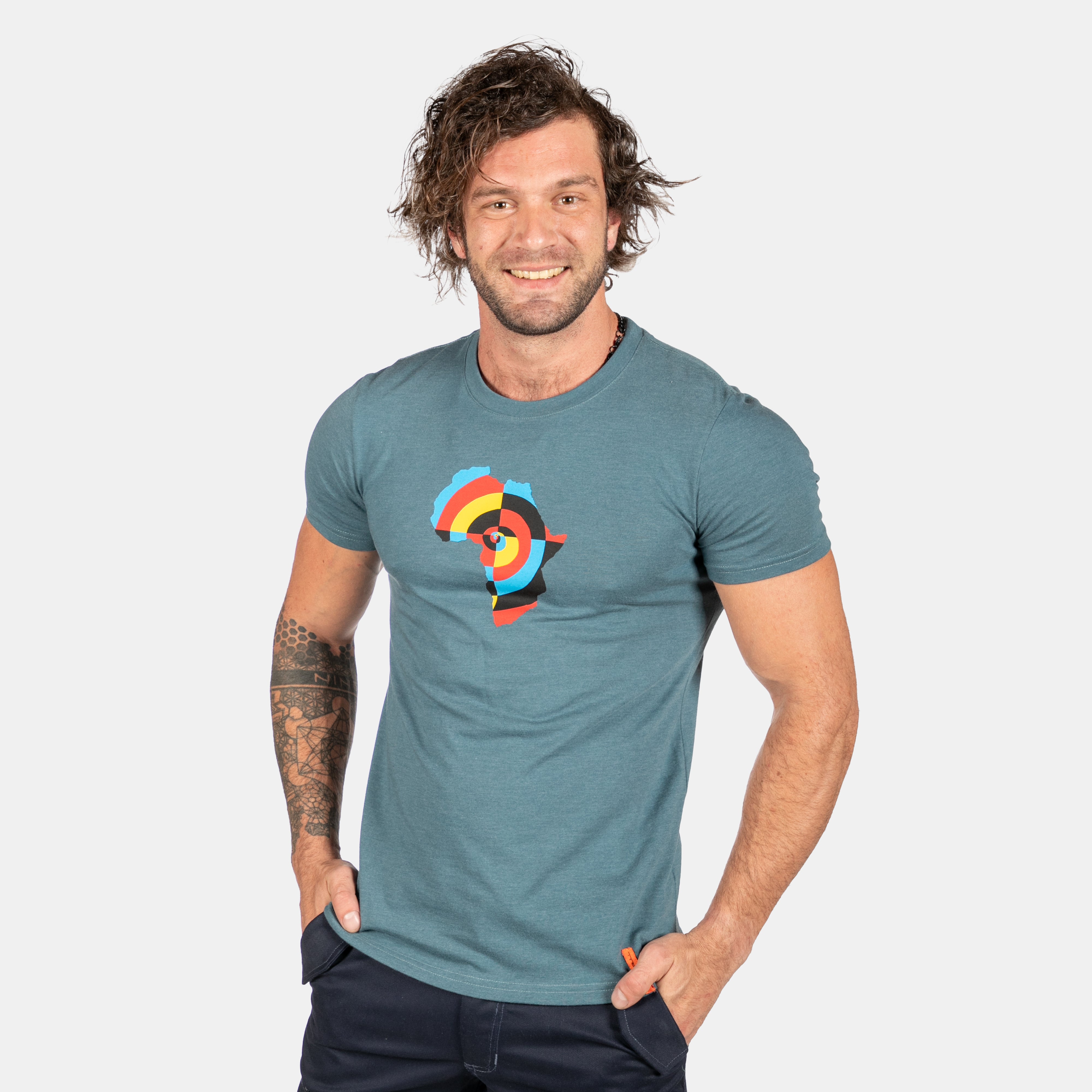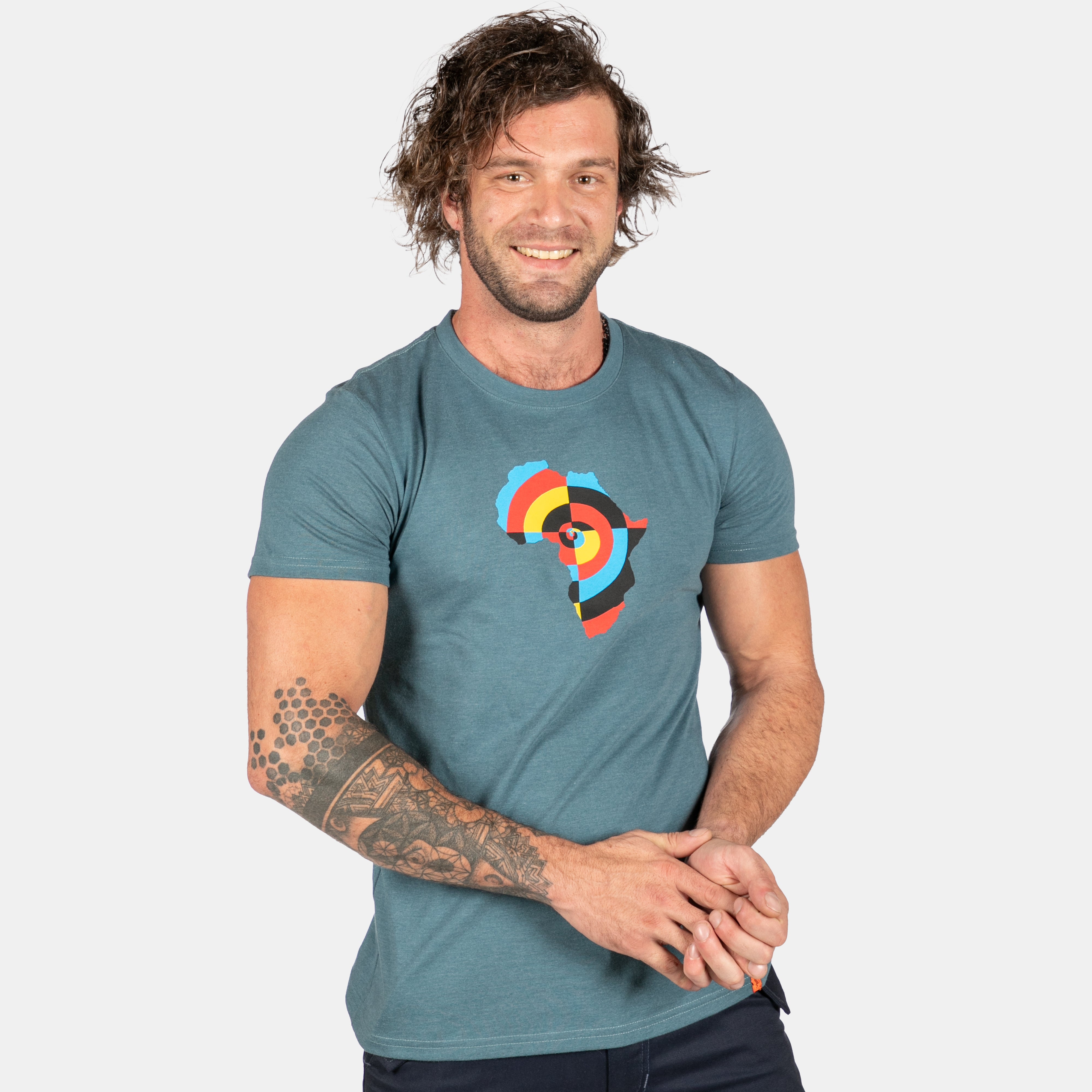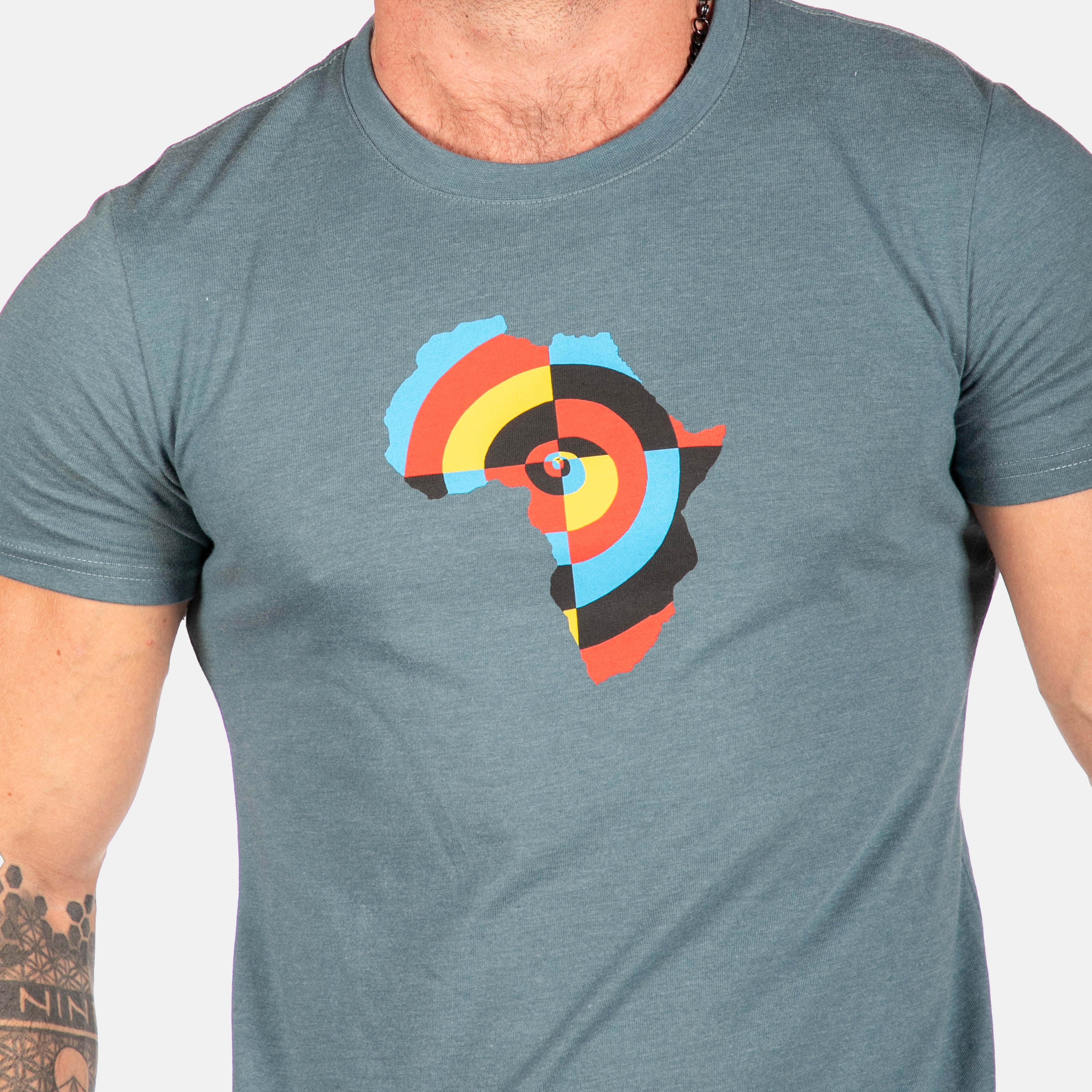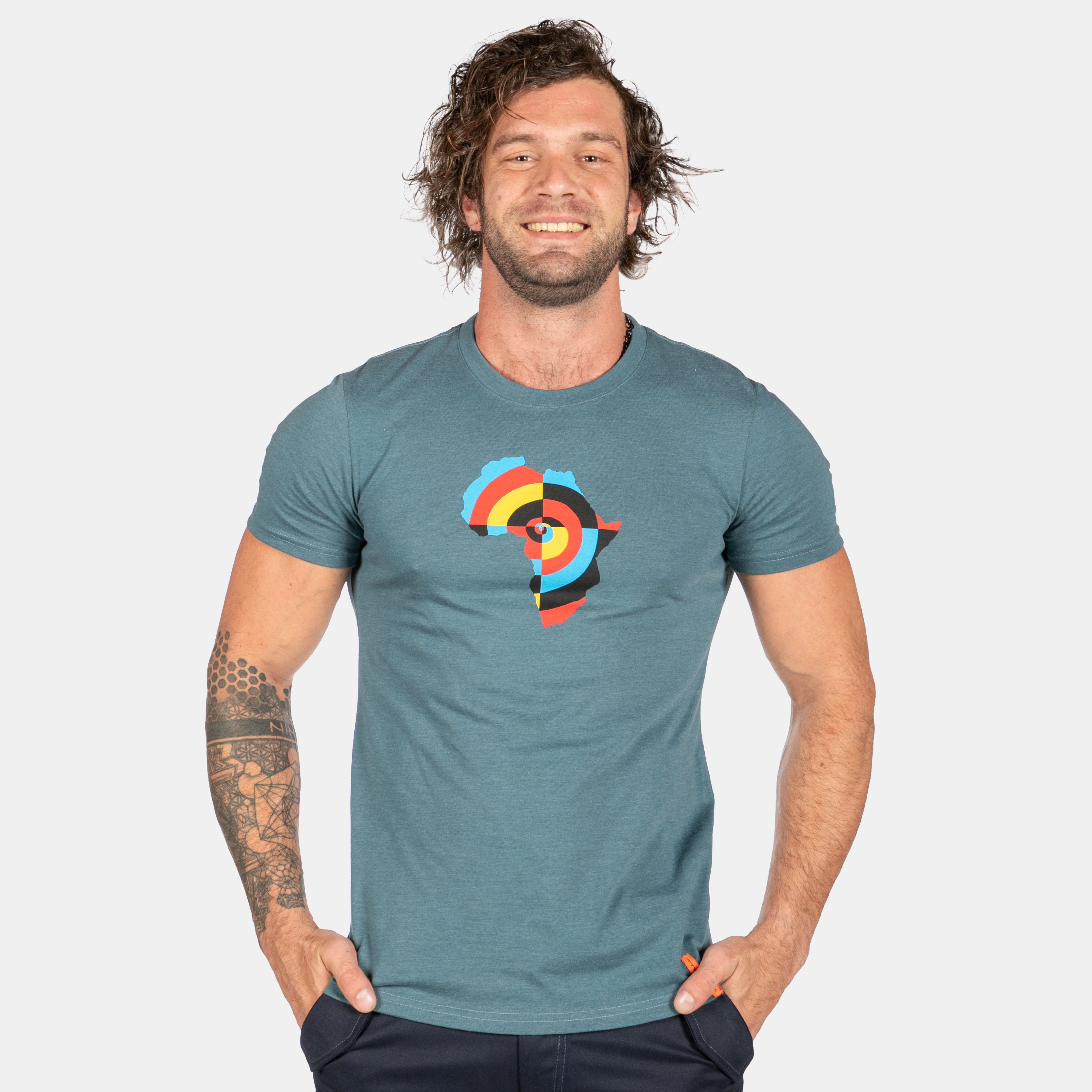 Full colour target swirl nestled in the Africa continent shape. A new tee for men who love this great continent.