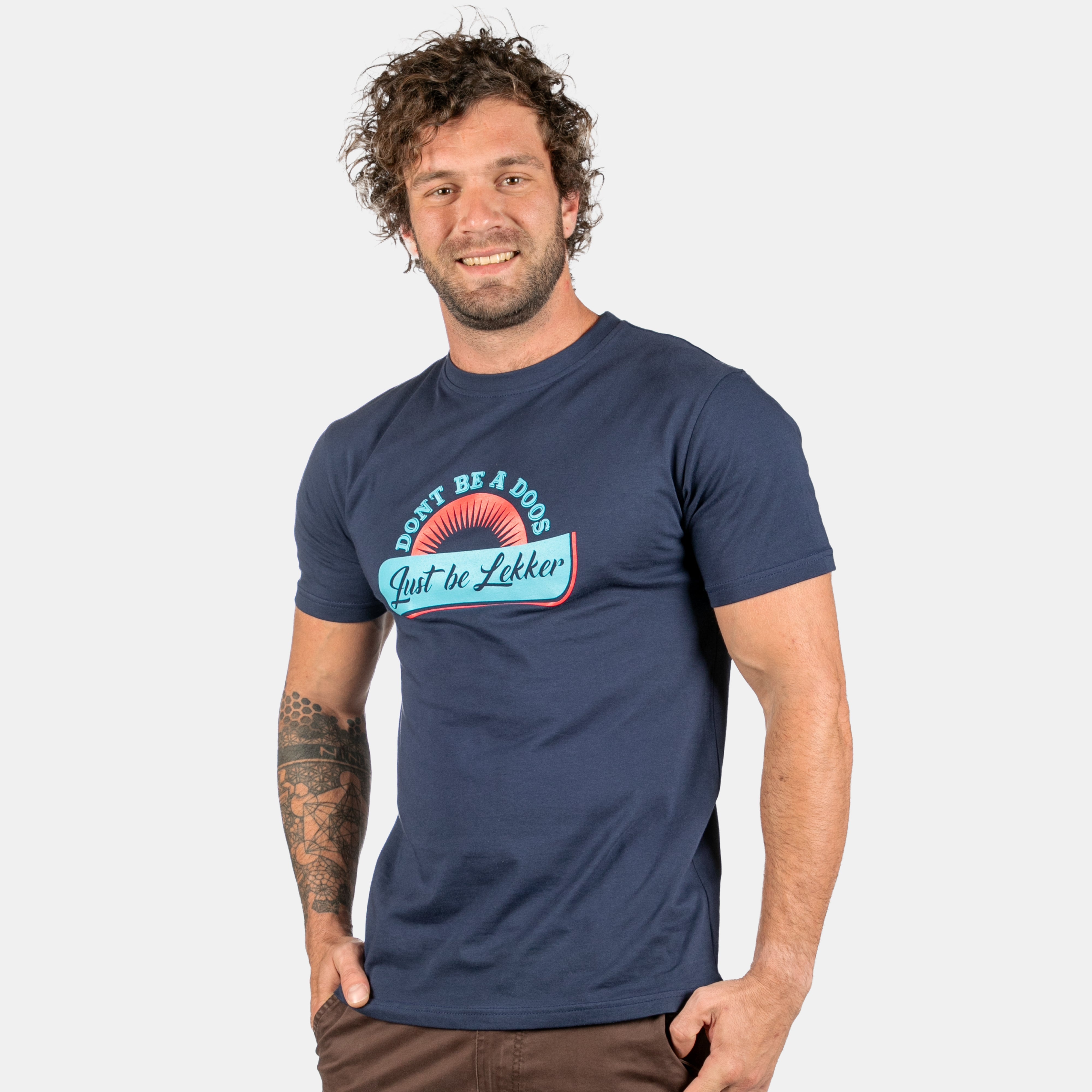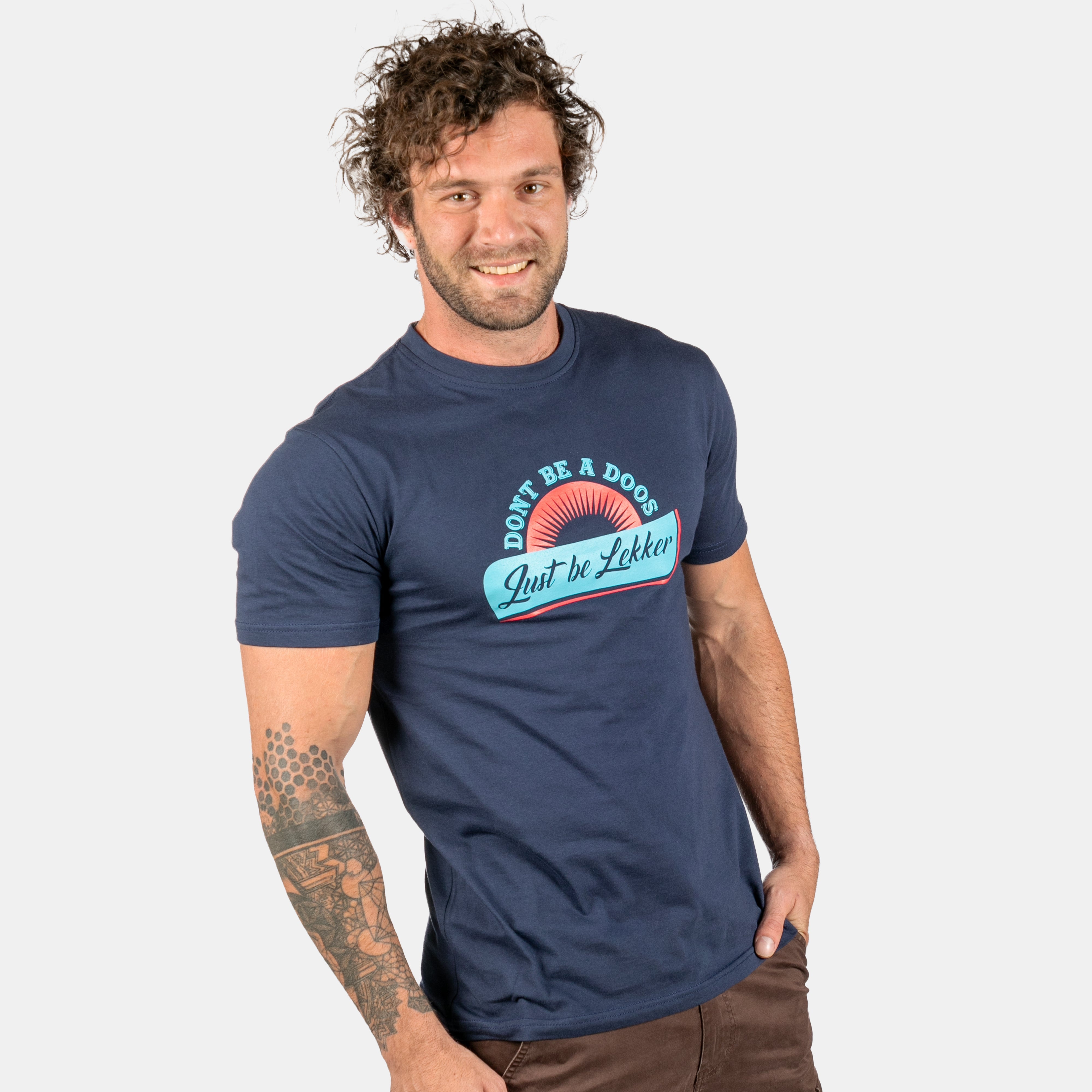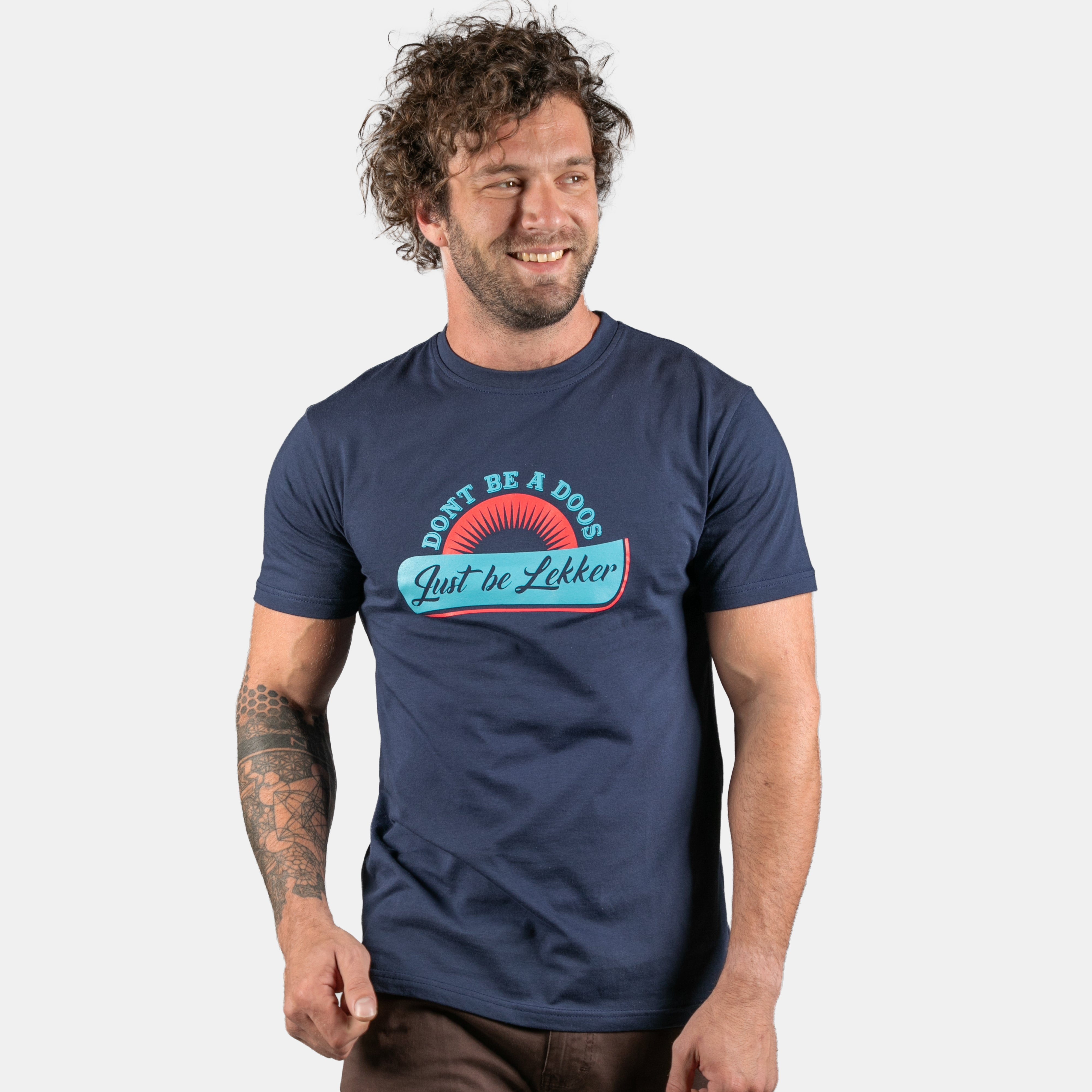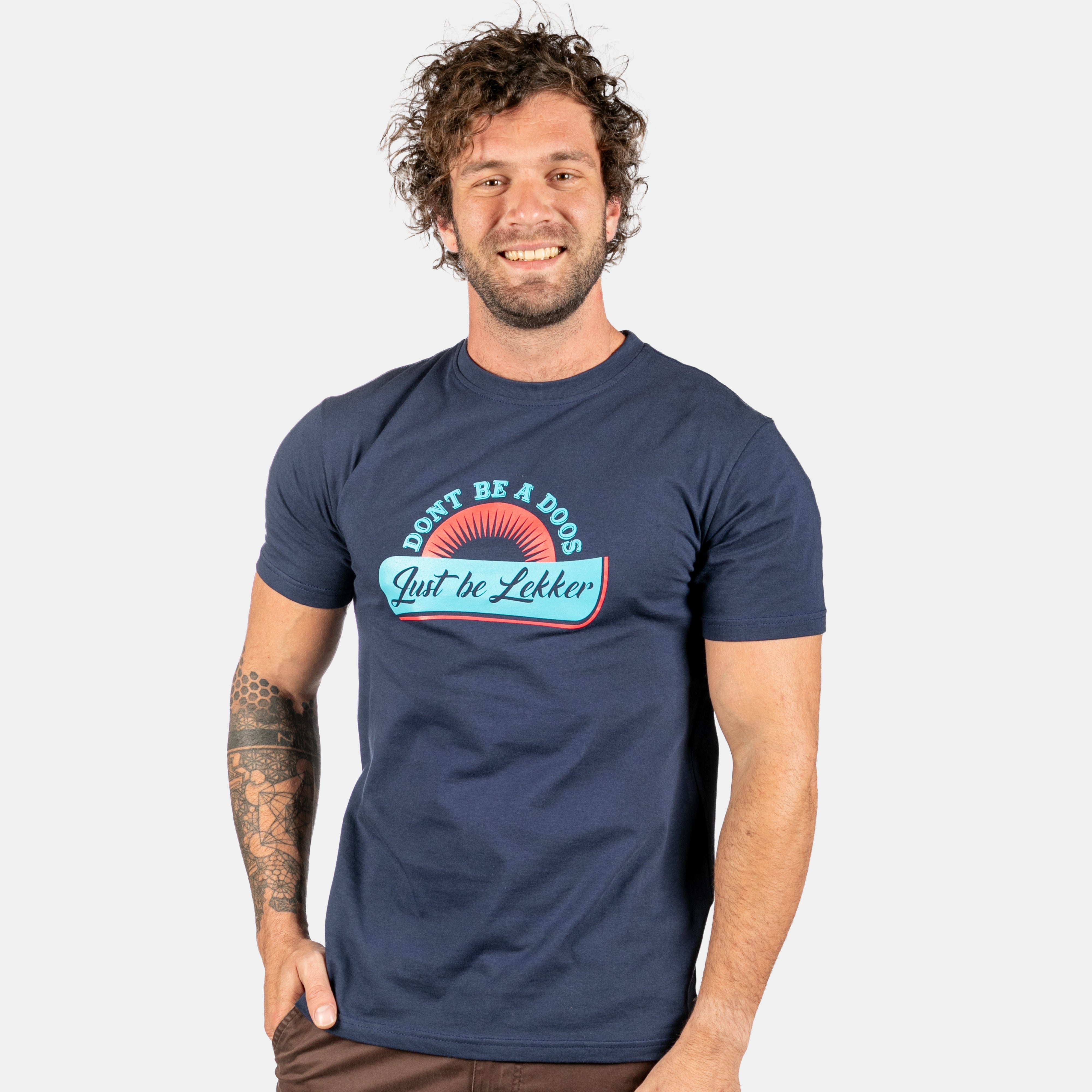 Just be lekker ! A men's t-shirt with a South Africanism to keep them smiling.