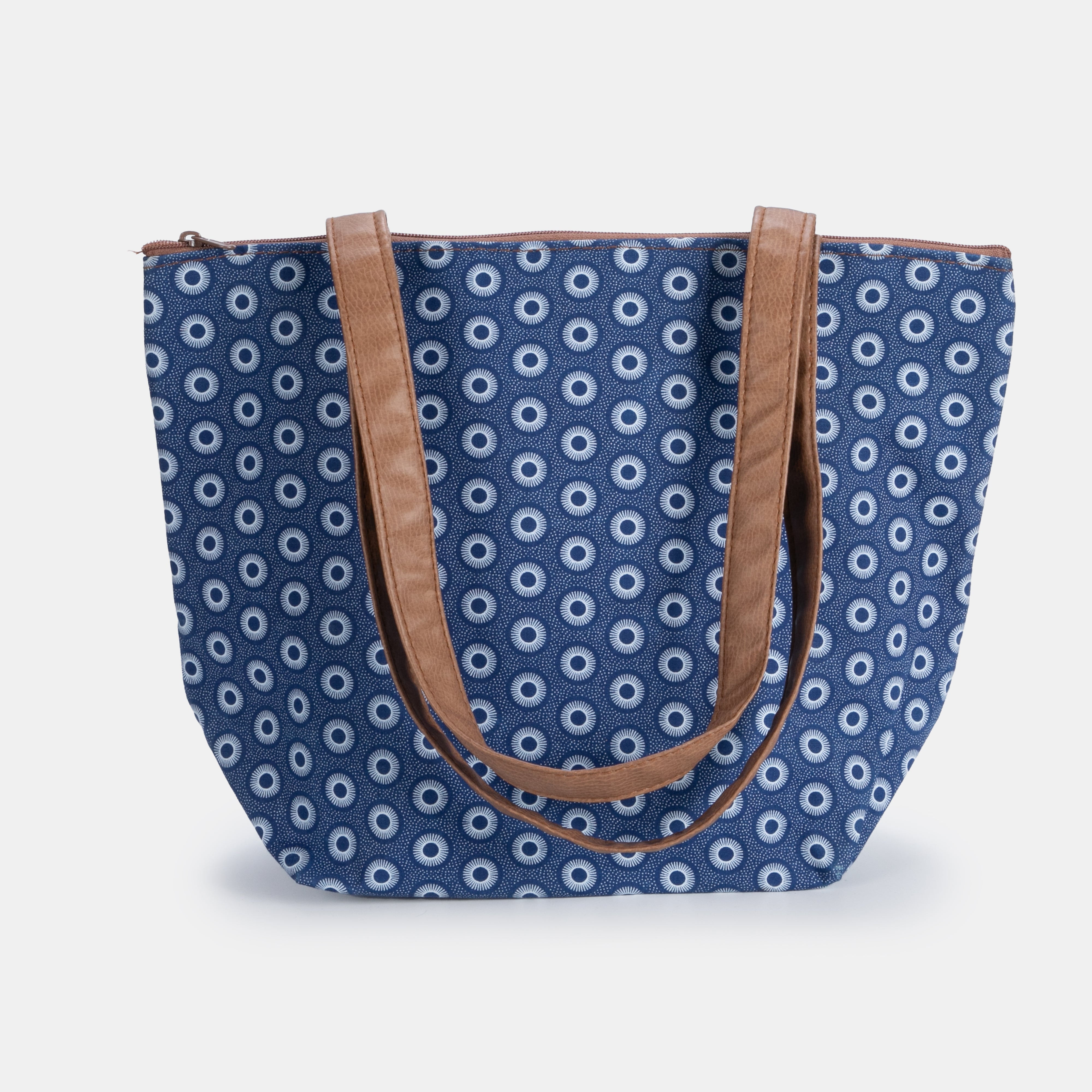 This proudly South African bag is crafted from 100% Cotton and features imitation leather straps. The inner lining is made from recycled or recovered waste materials which means each one in unique. The inside boasts three separate compartments. A zipper compartment in the middle, with two open compartments on either side. The entire top of the bag closes with a zip. PLEASE BE ADVISED THAT DUE TO THE UNIQUE HAND MANUFACTURE OF EACH BAG, THE FABRIC DESIGN MAY DIFFER SLIGHTLY TO THE ONES IN OUR IMAGES.