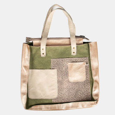 The Trisha tote bag boasts 3 patch pockets on the front, two shoulder straps, a zipped closure on the top and you'll discover a pouch on the inside for things like phones, keys and cosmetics. The touches of animal print on the zipper and the front pocket give this tote the edge and style every girl deserves. Measures approx. 39 x 37 x 10cm