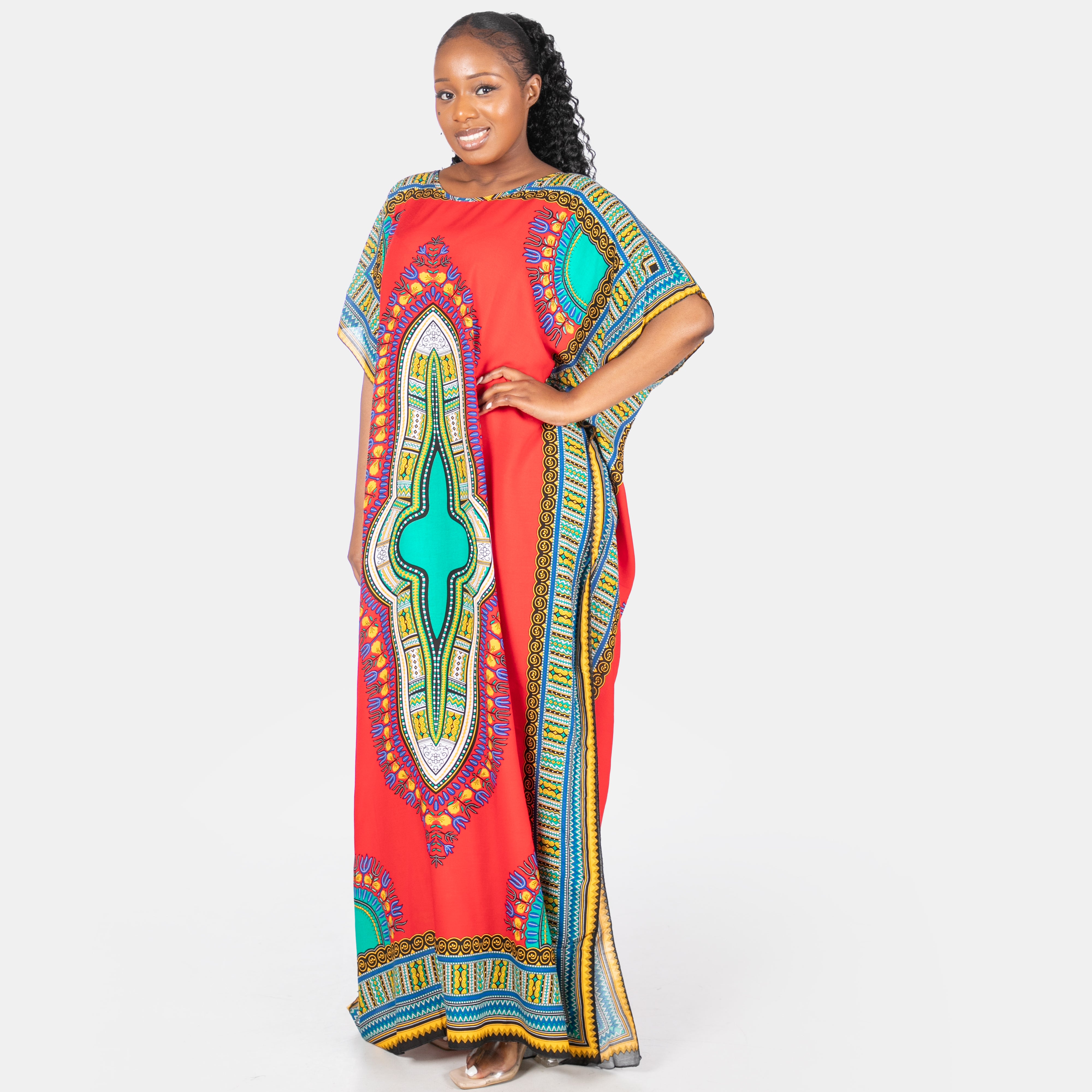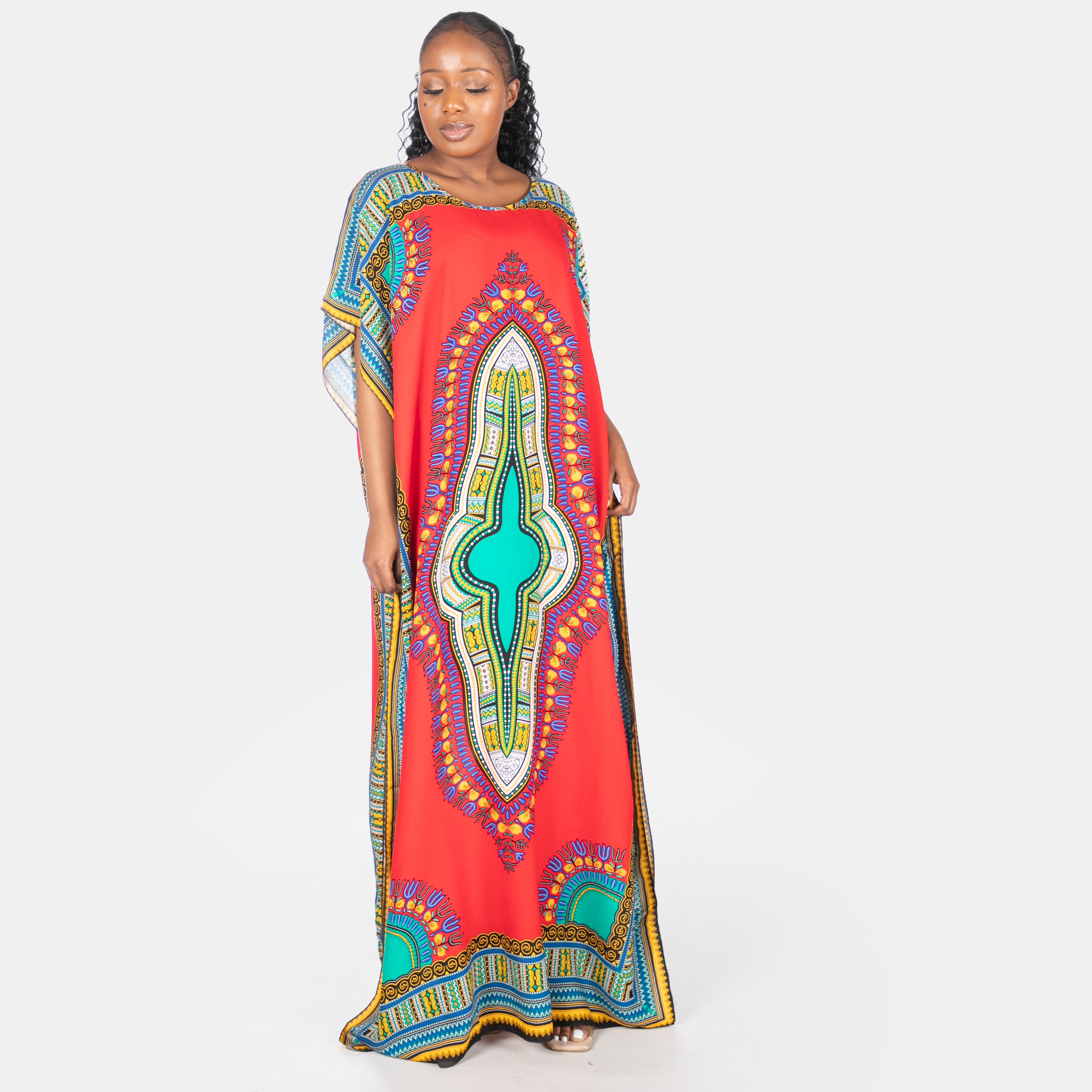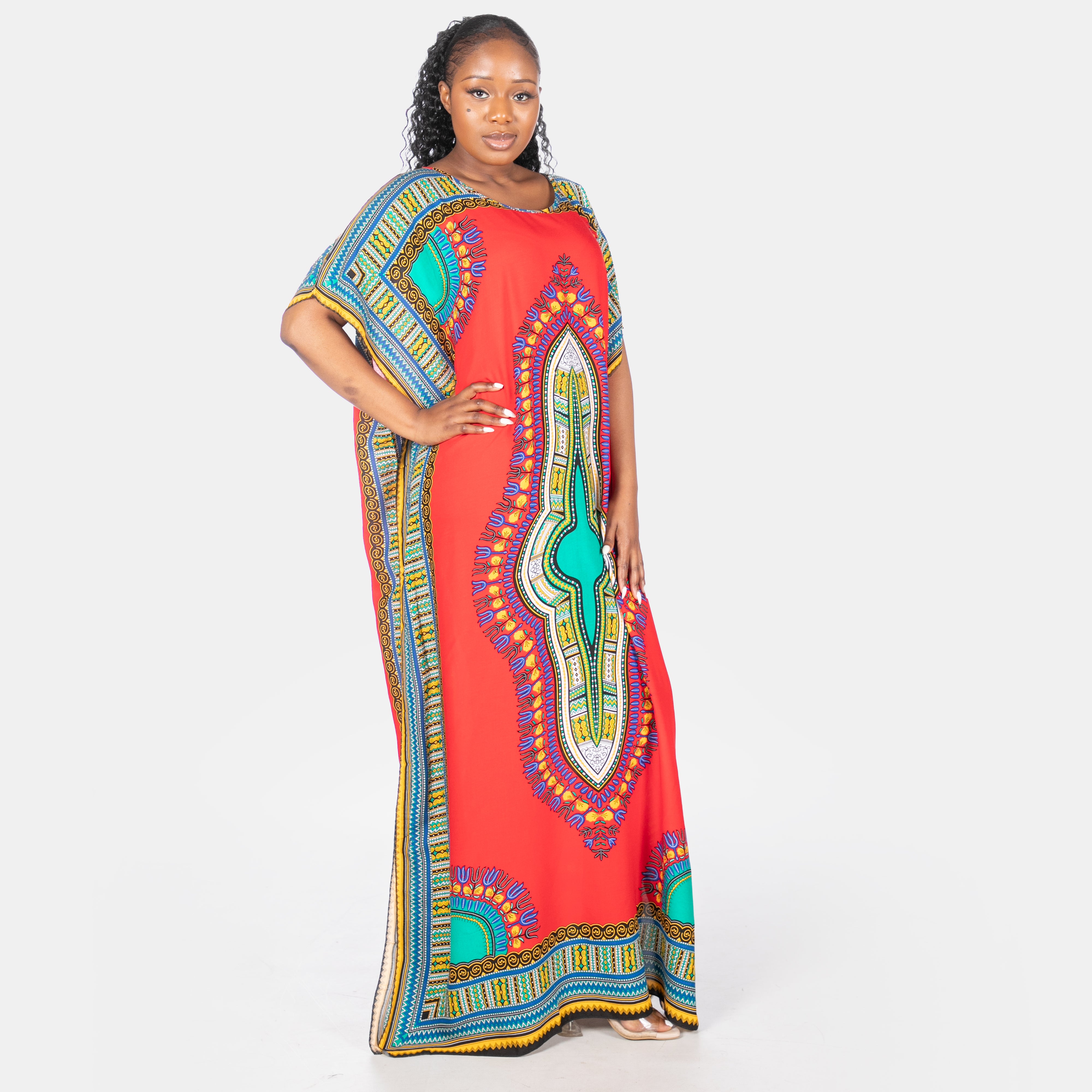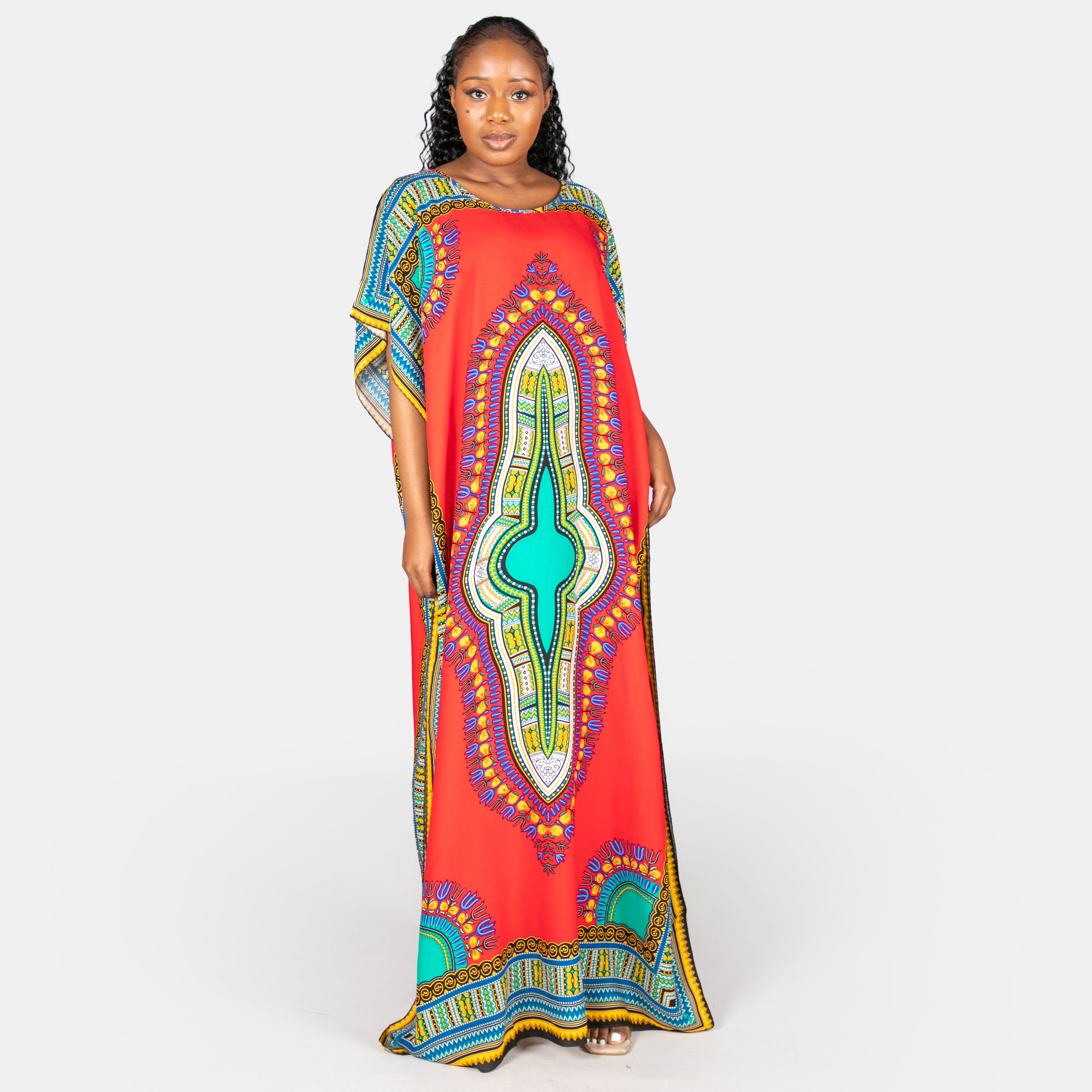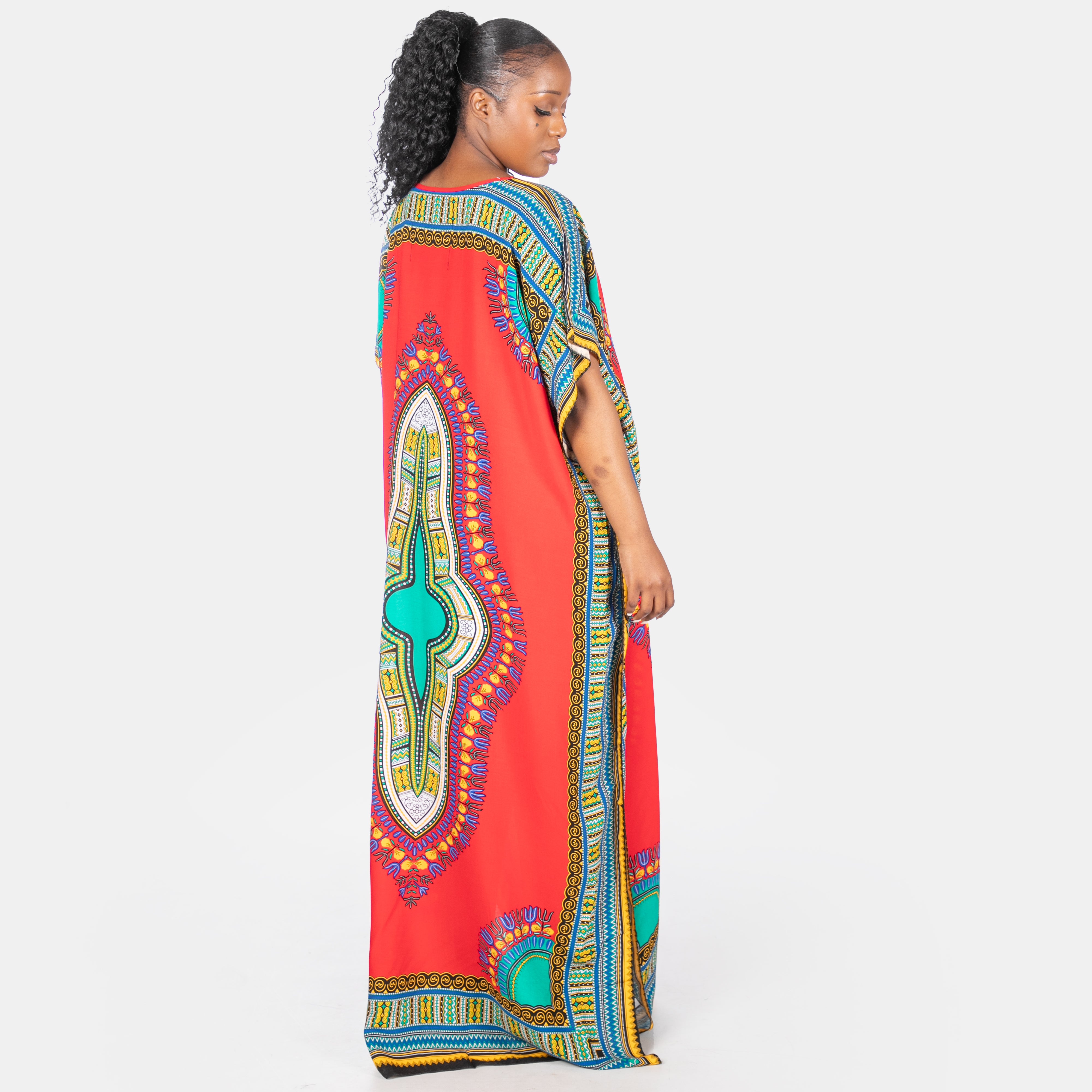 With it's origins in West Africa, the Dashiki Kaftan explodes with colour and the distinctive ornate pattern details!