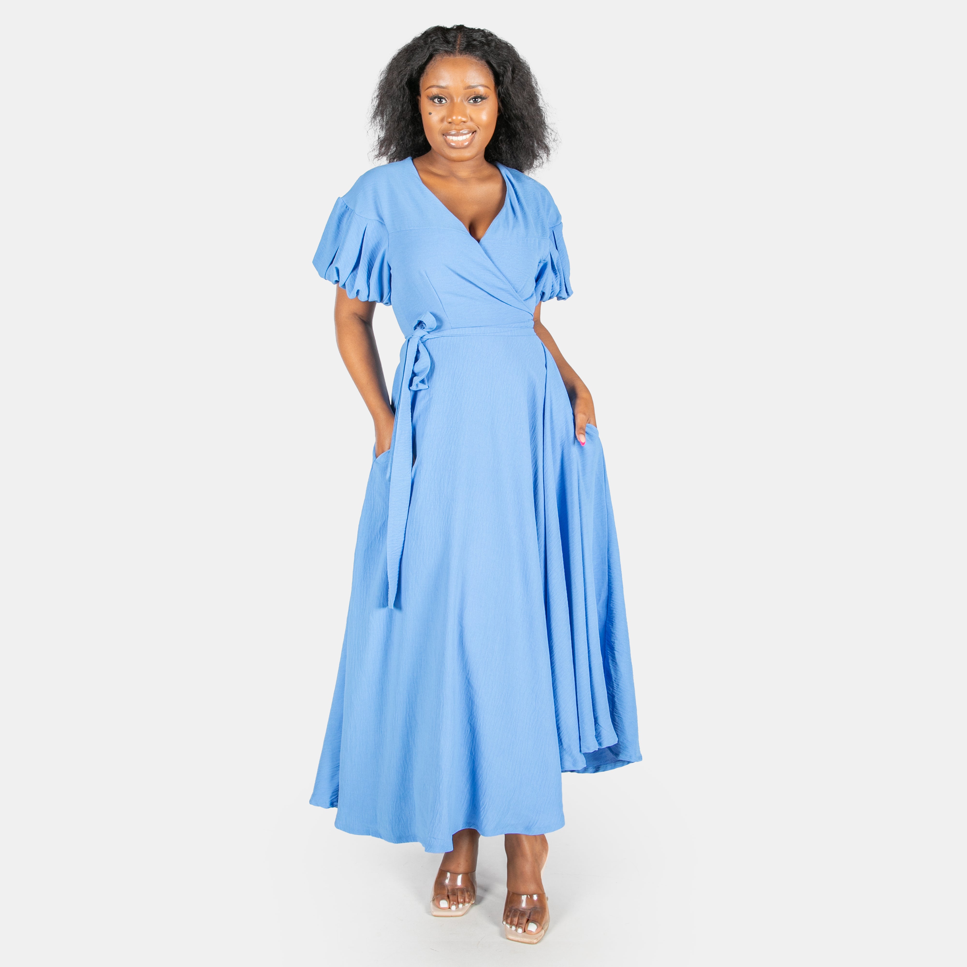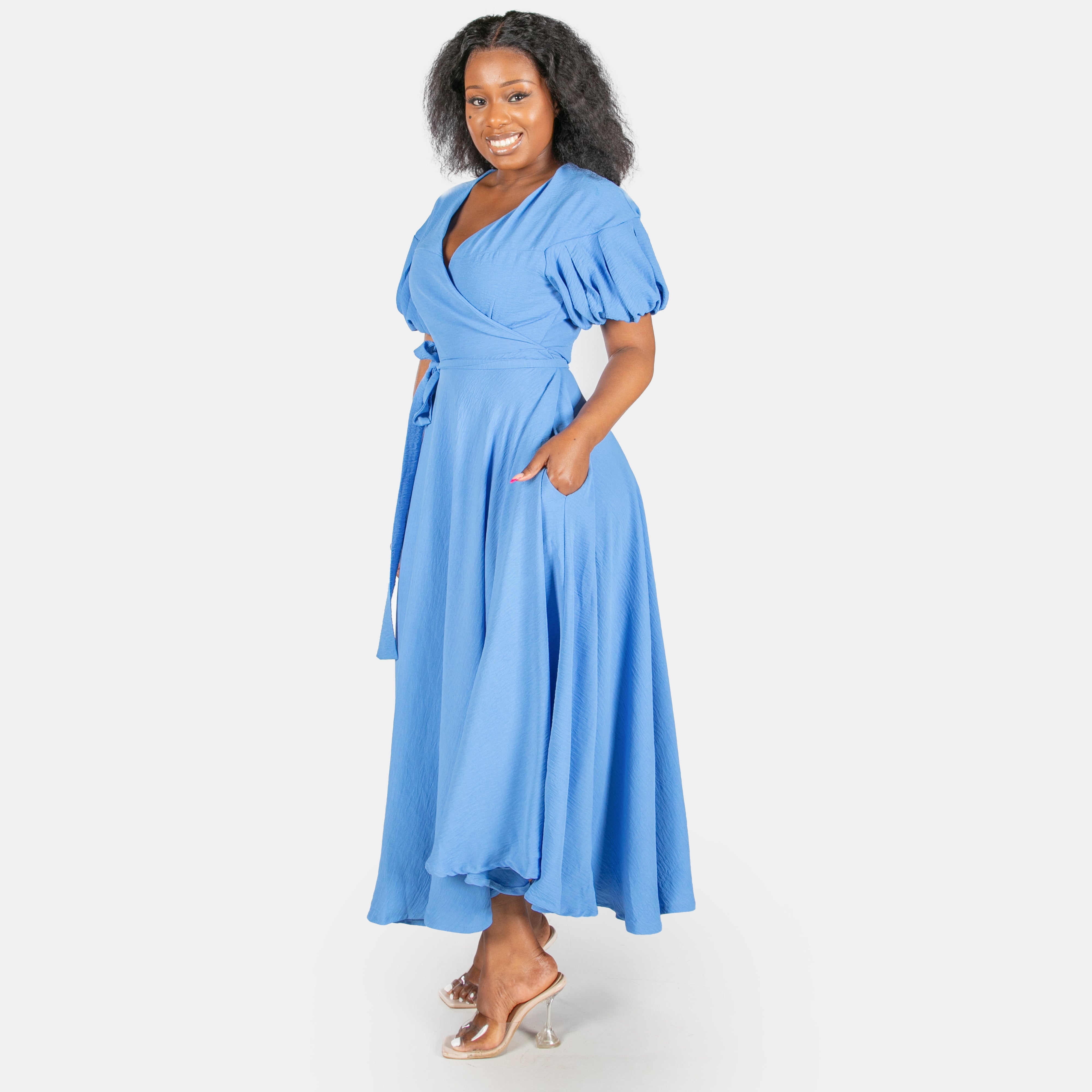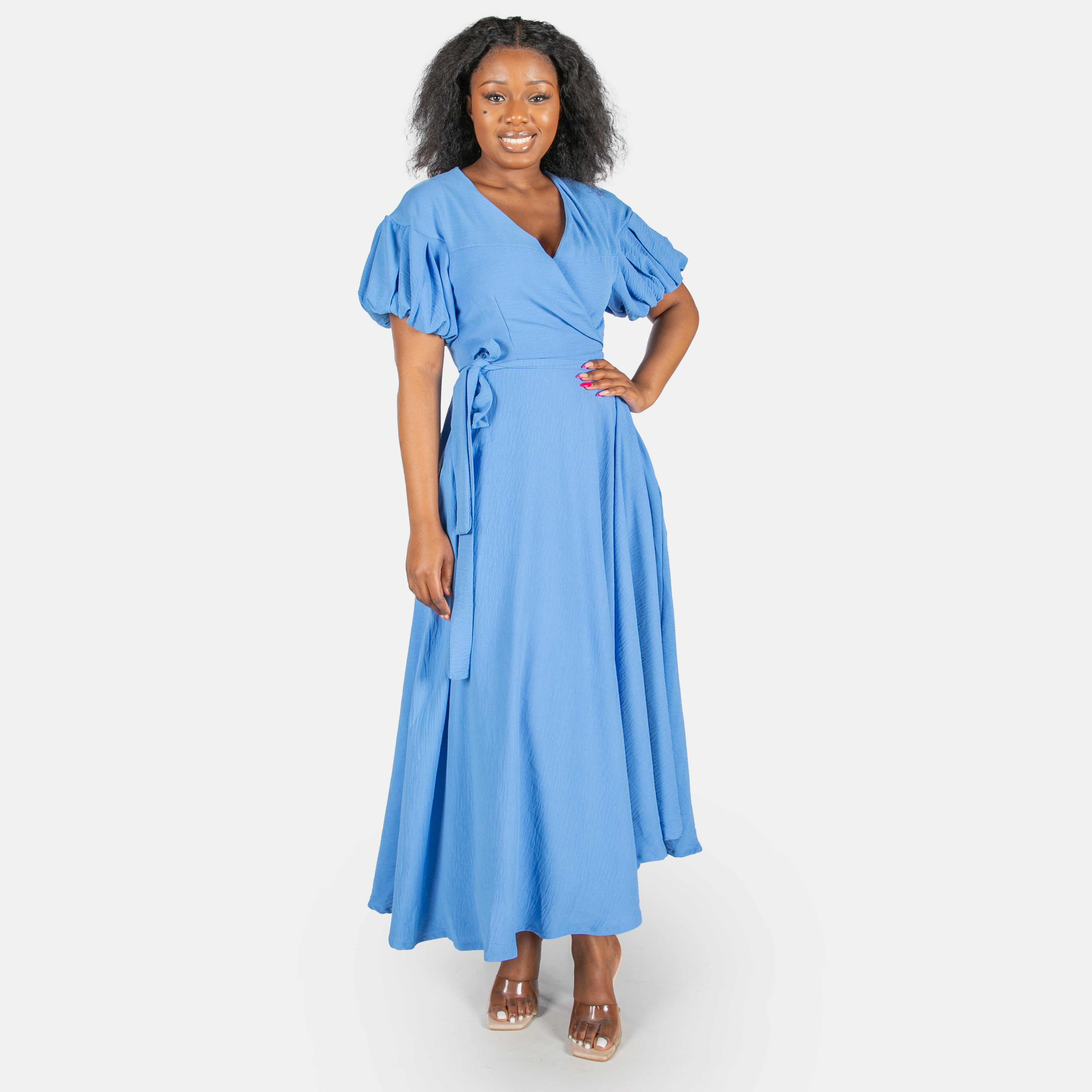 Ladies' Free Flowing Odette Dress with Puff Sleeves - Sky