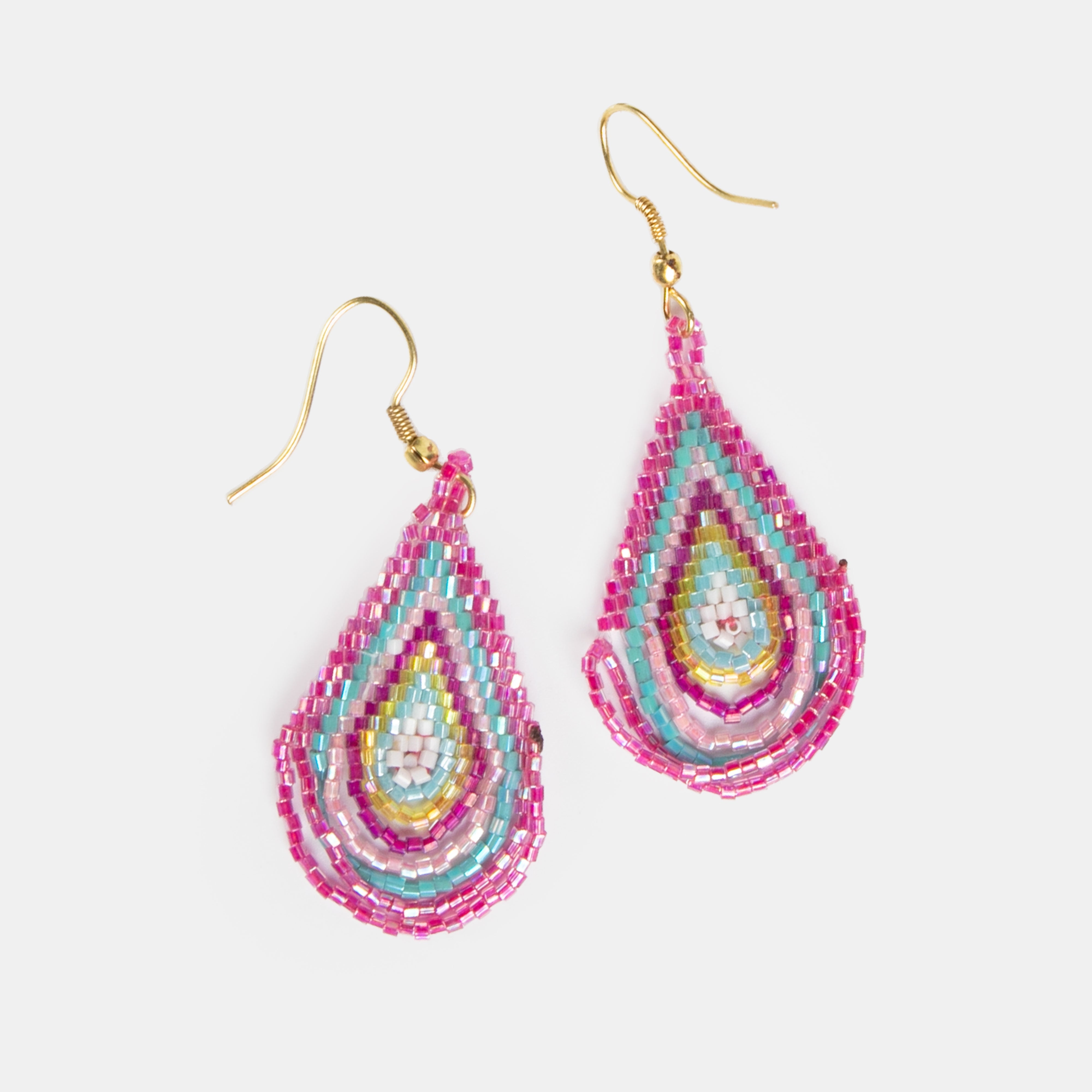 A teardrop shaped earring delicately beaded by hand in the perfect seasonal colours. A stylish statement accessory for every outfit!