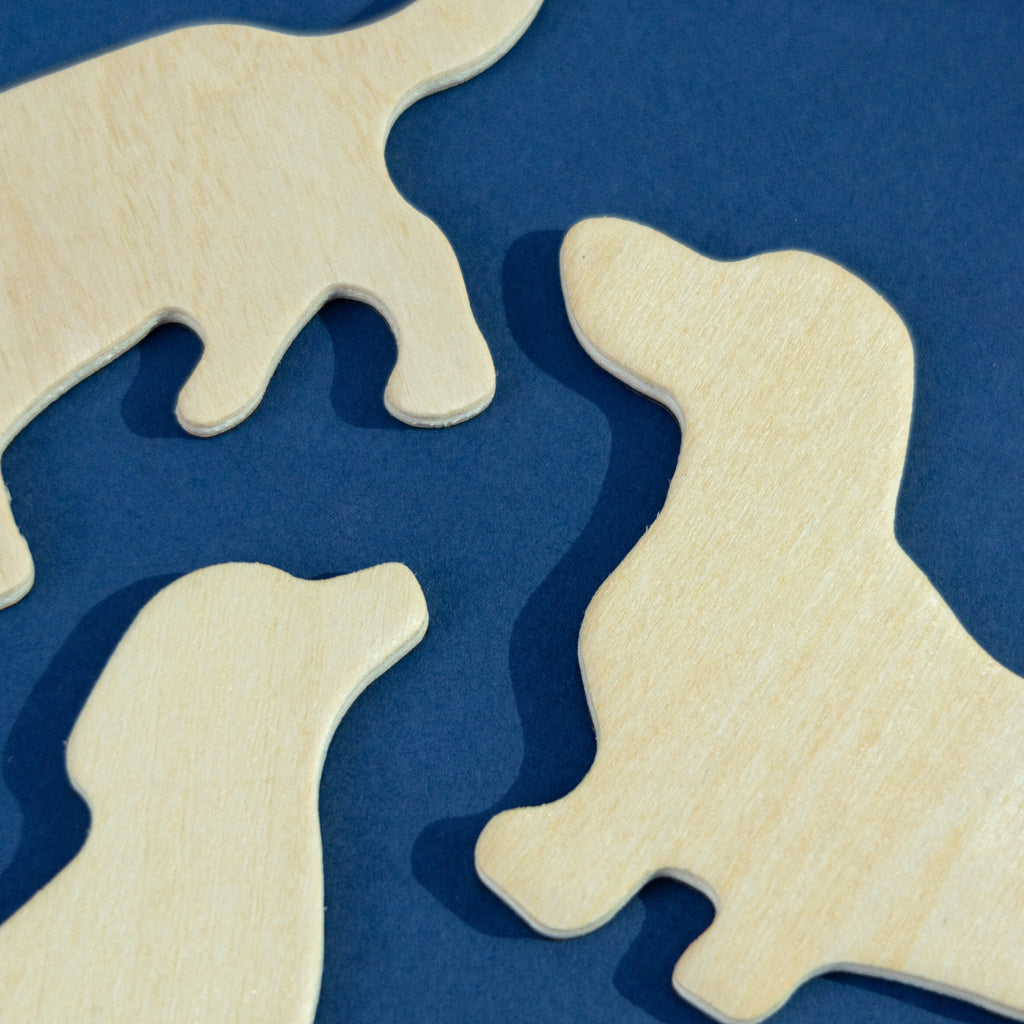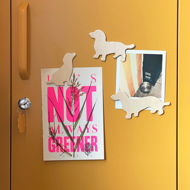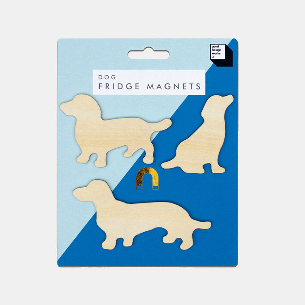 A pack of 3 wooden dog silhouettes with soft rubber magnet sheet backing to liven up your fridge. Made by Suck UK. Measures 110 x 51 x 3mm | Weight 6g x 3