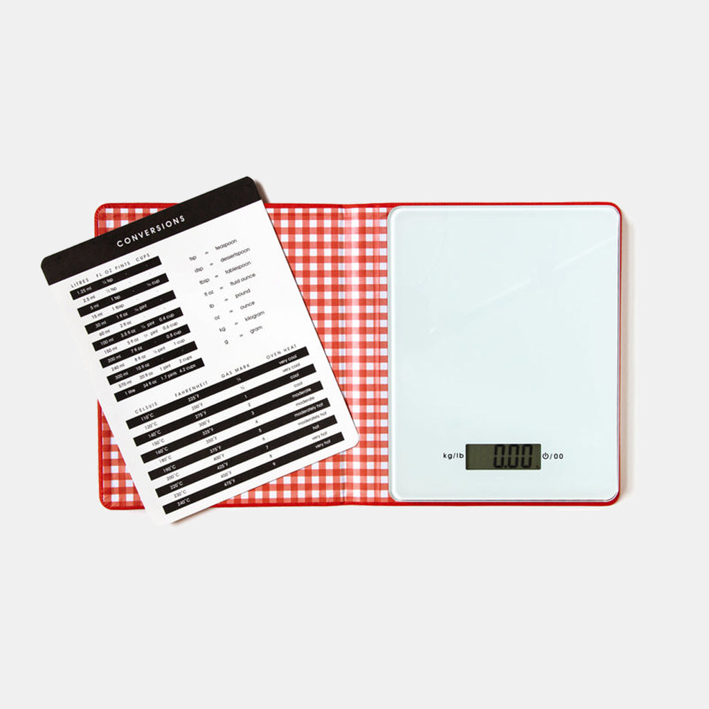 Digital kitchen scales concealed in a book. Tare function to ignore the weight of containers. Kg / lb – One touch switch between metric or imperial. Weighs up to 5 kg (11 lb). Easy clean glass surface and wipe clean hardback cover. Designed to be stored on the shelf with your recipe books, this set of kitchen scales encased in a hardback book cover will always be on hand when you need them. Designed and made by Suck UK. Measures 155 x 189 x 24mm | Weighs 0.5Kg