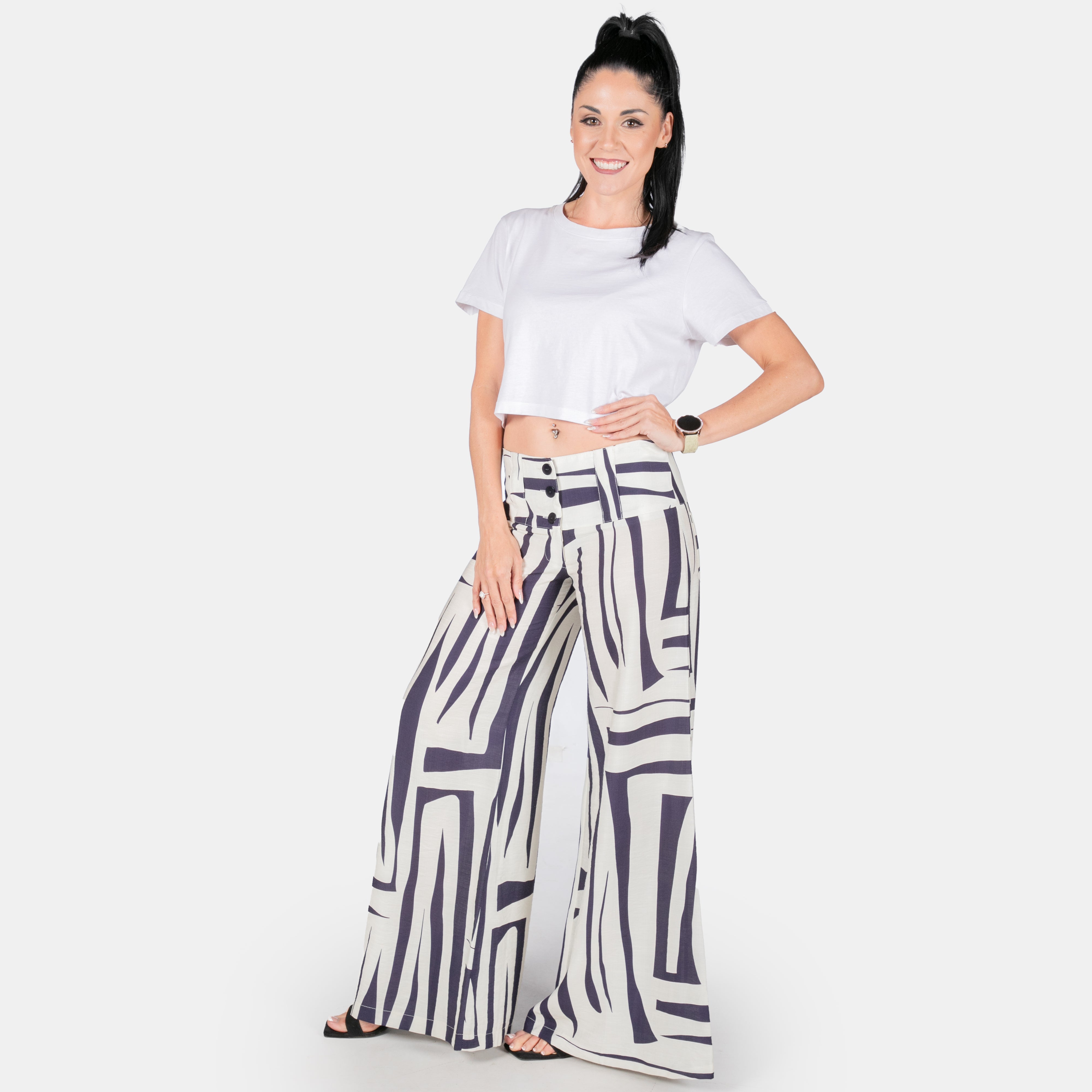 Our popular Ava pants are back and lovelier than ever in the funkiest retro print!