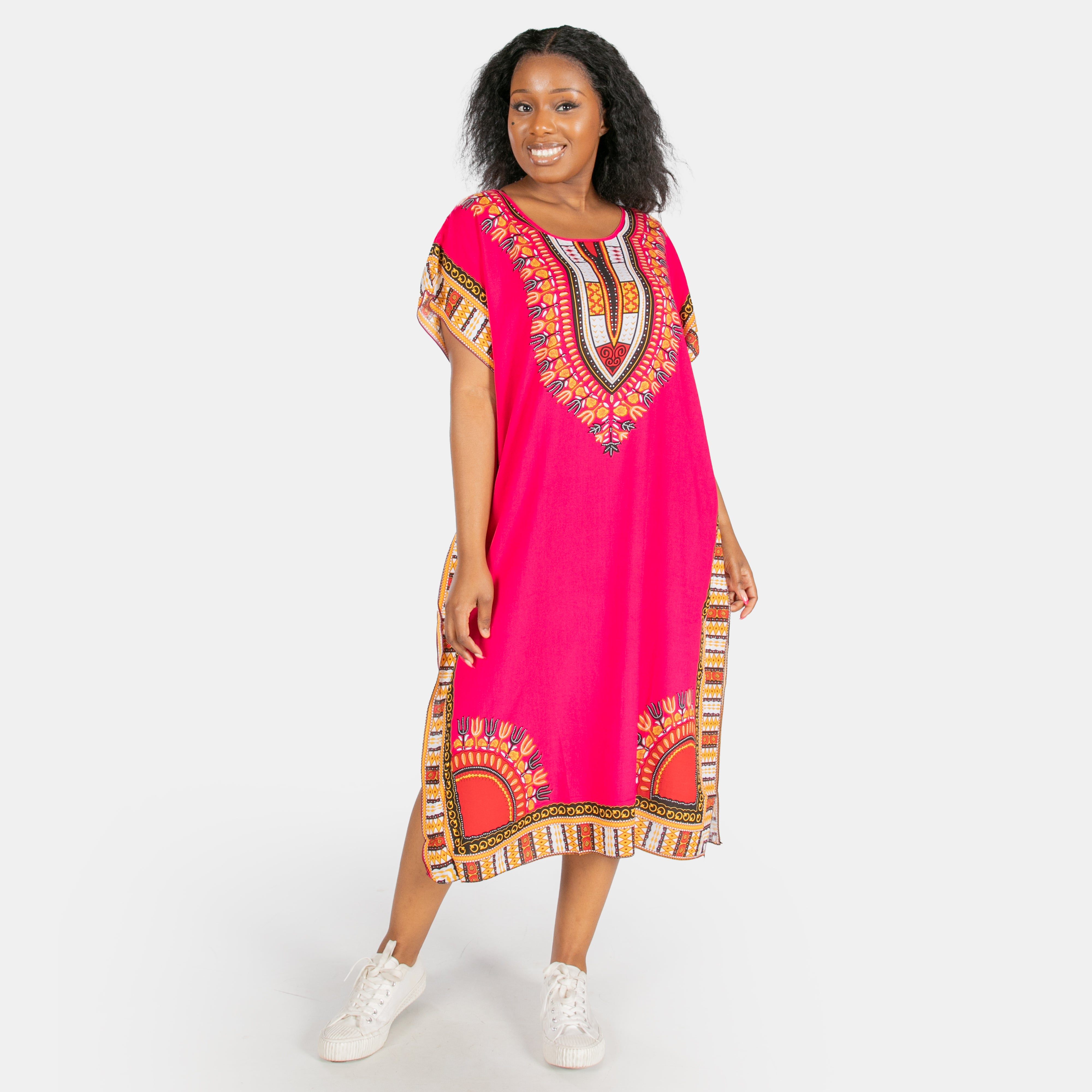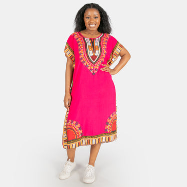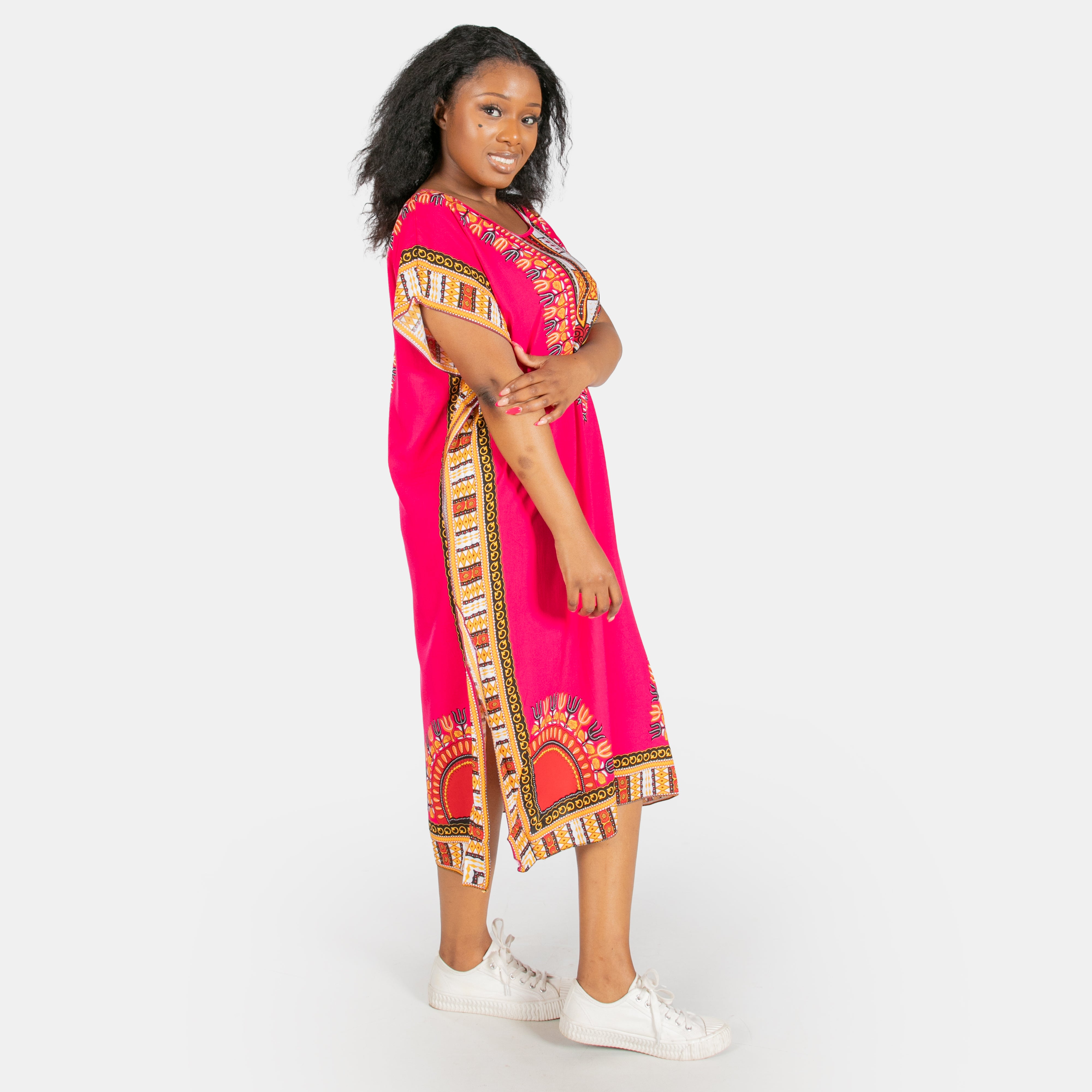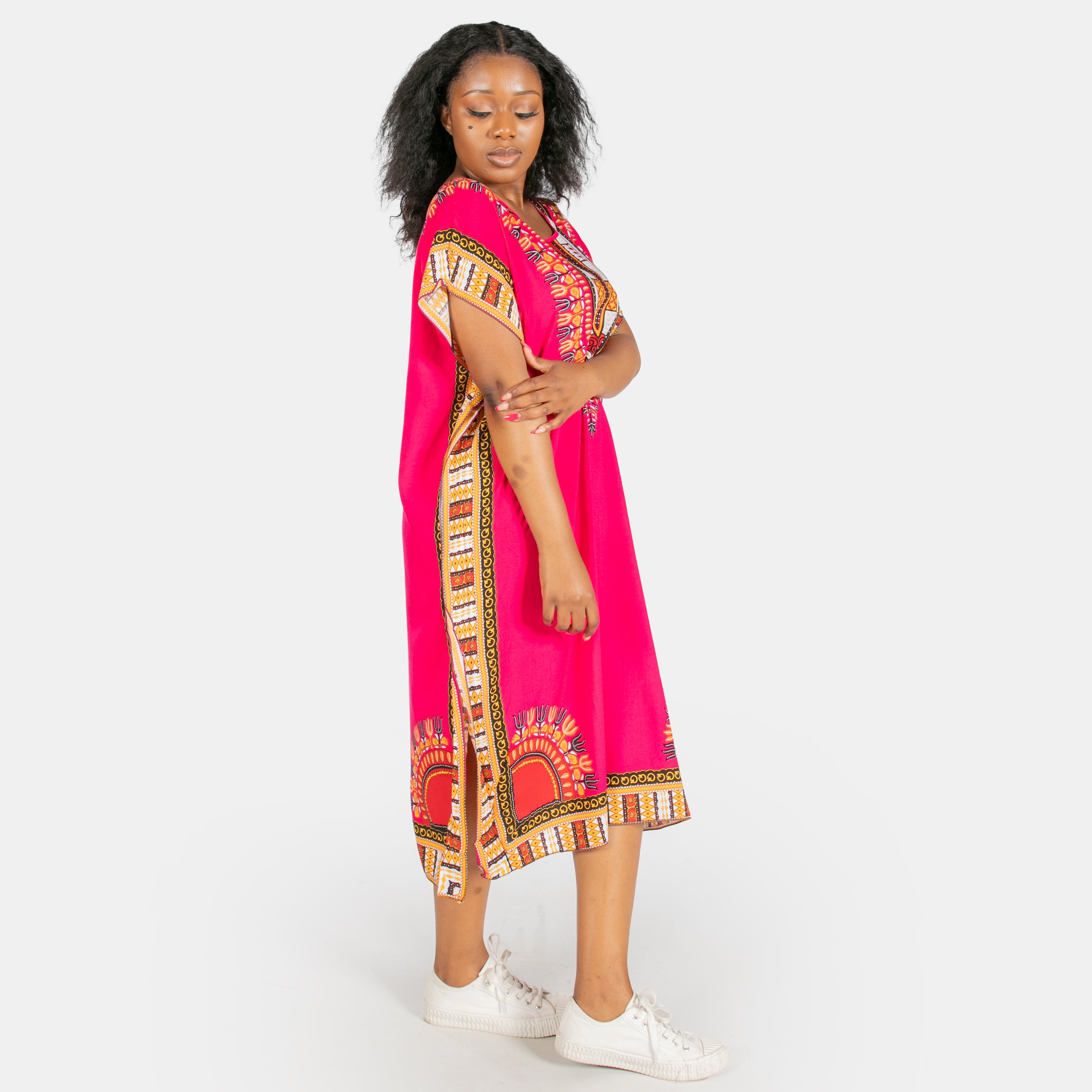 This Pink ladies' slim fit kaftan combines elegance with comfort, designed to flatter most body types with its one-size-fits-most silhouette.
