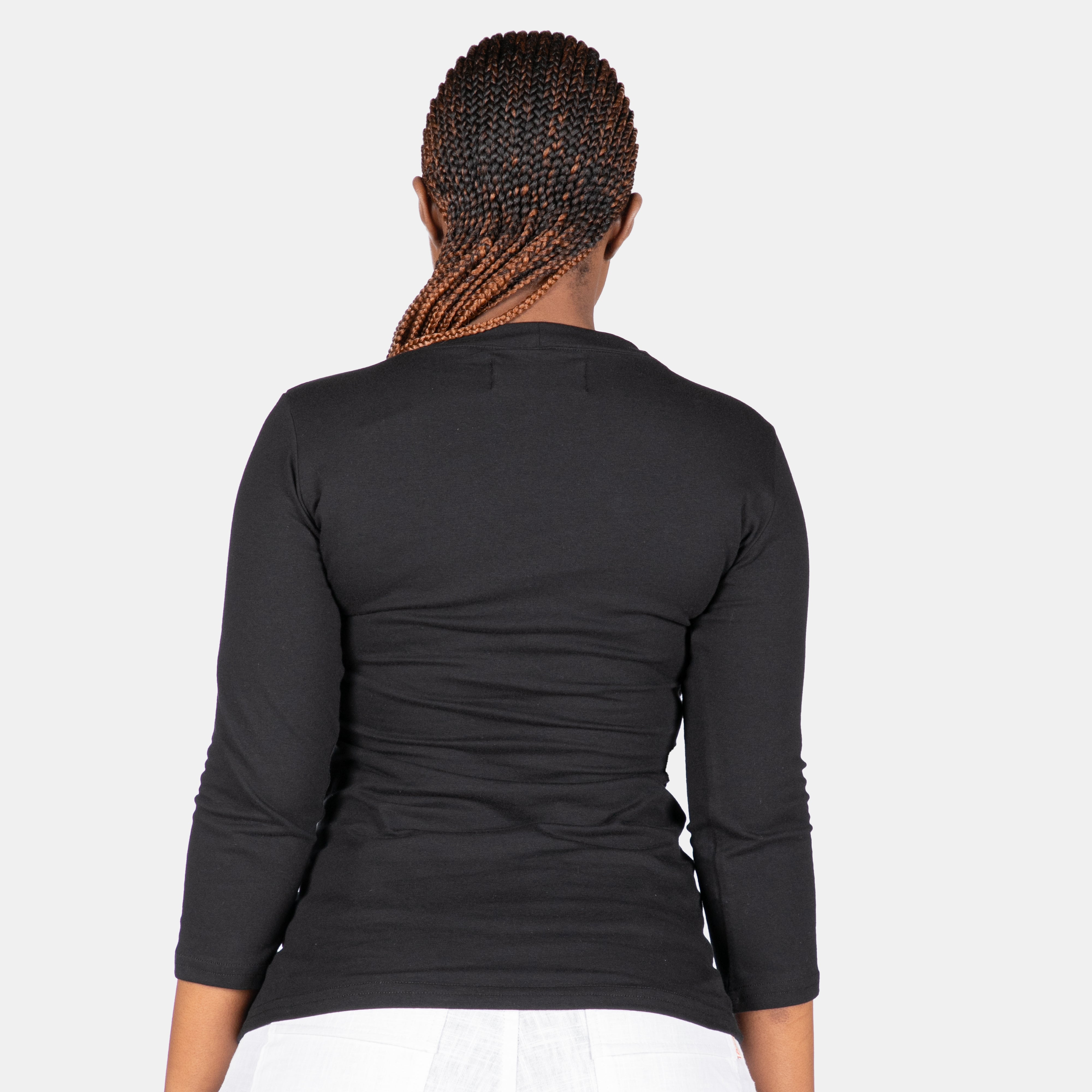Women's Cross Over 3/4 Length V-Neck Top - Black