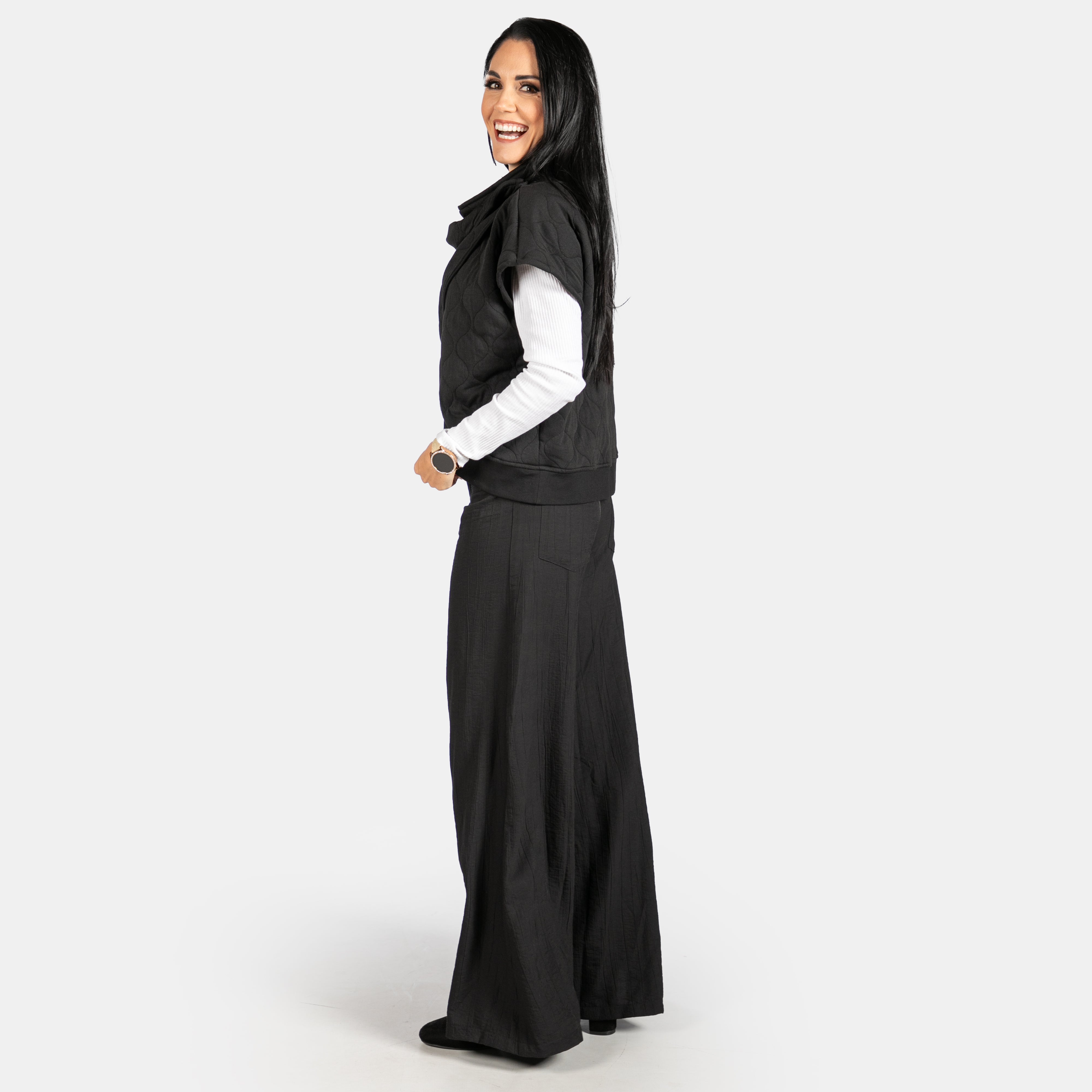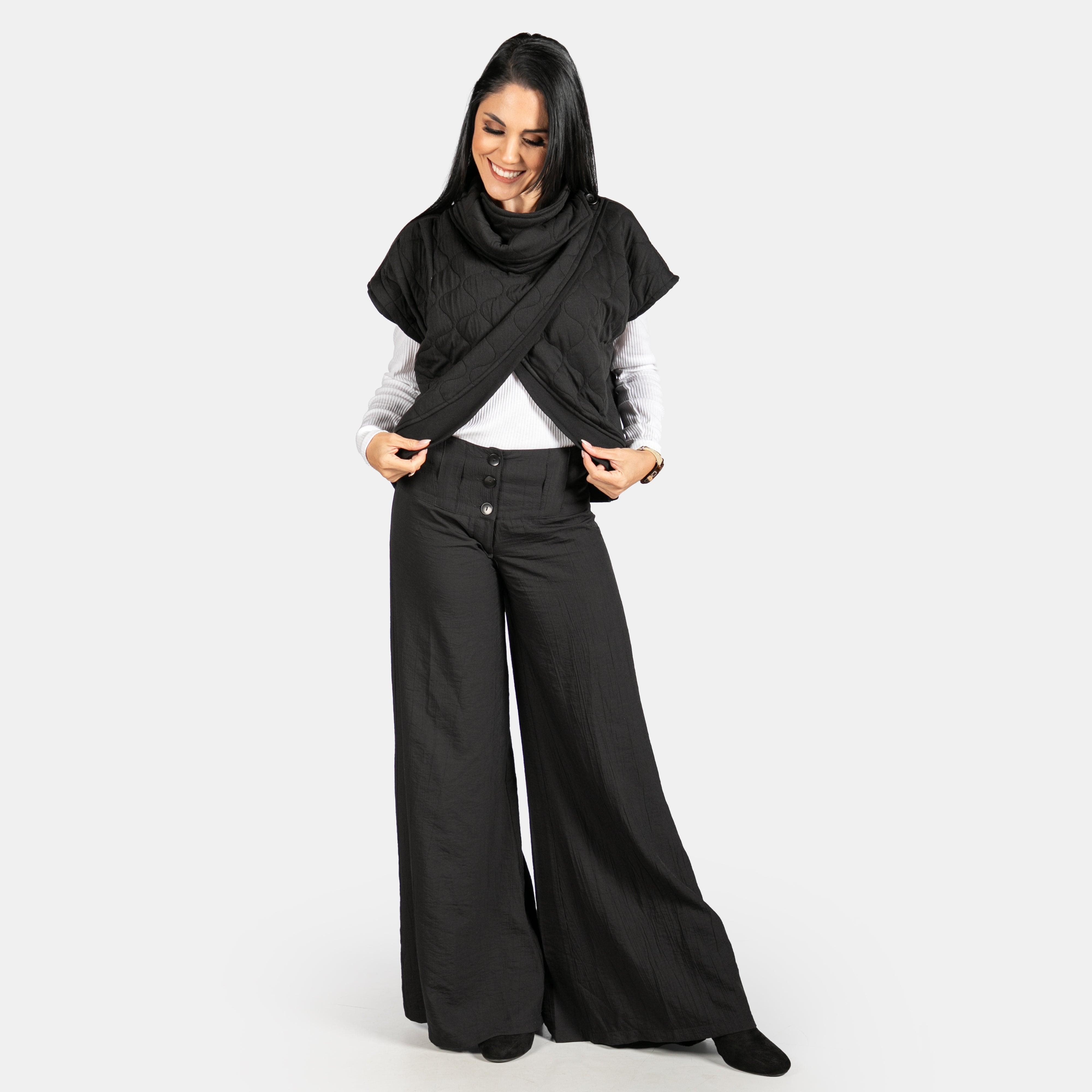 Super wide pants in statement black. A timeless combination for sure!