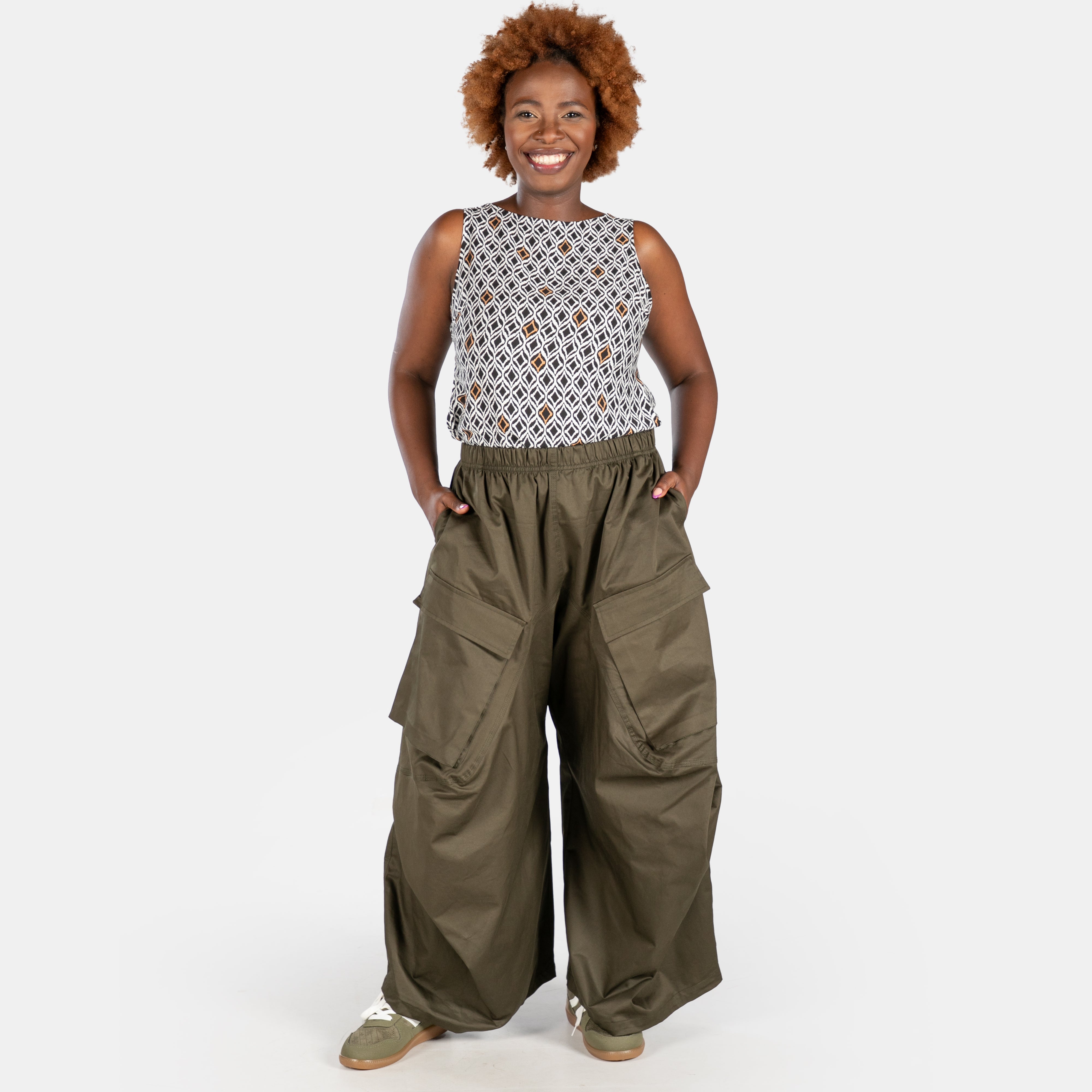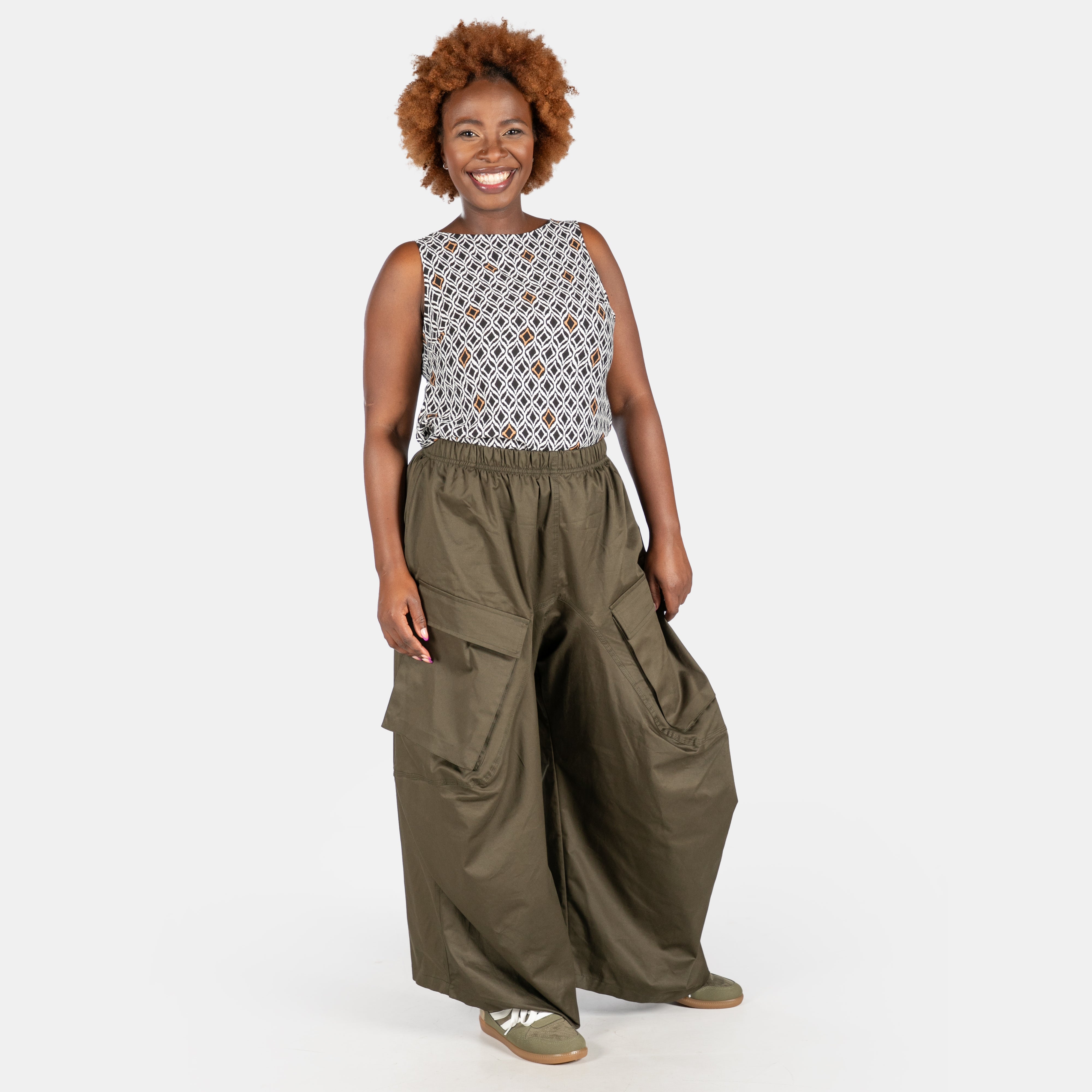 Super wide, super cool, cargo pants for ladies.