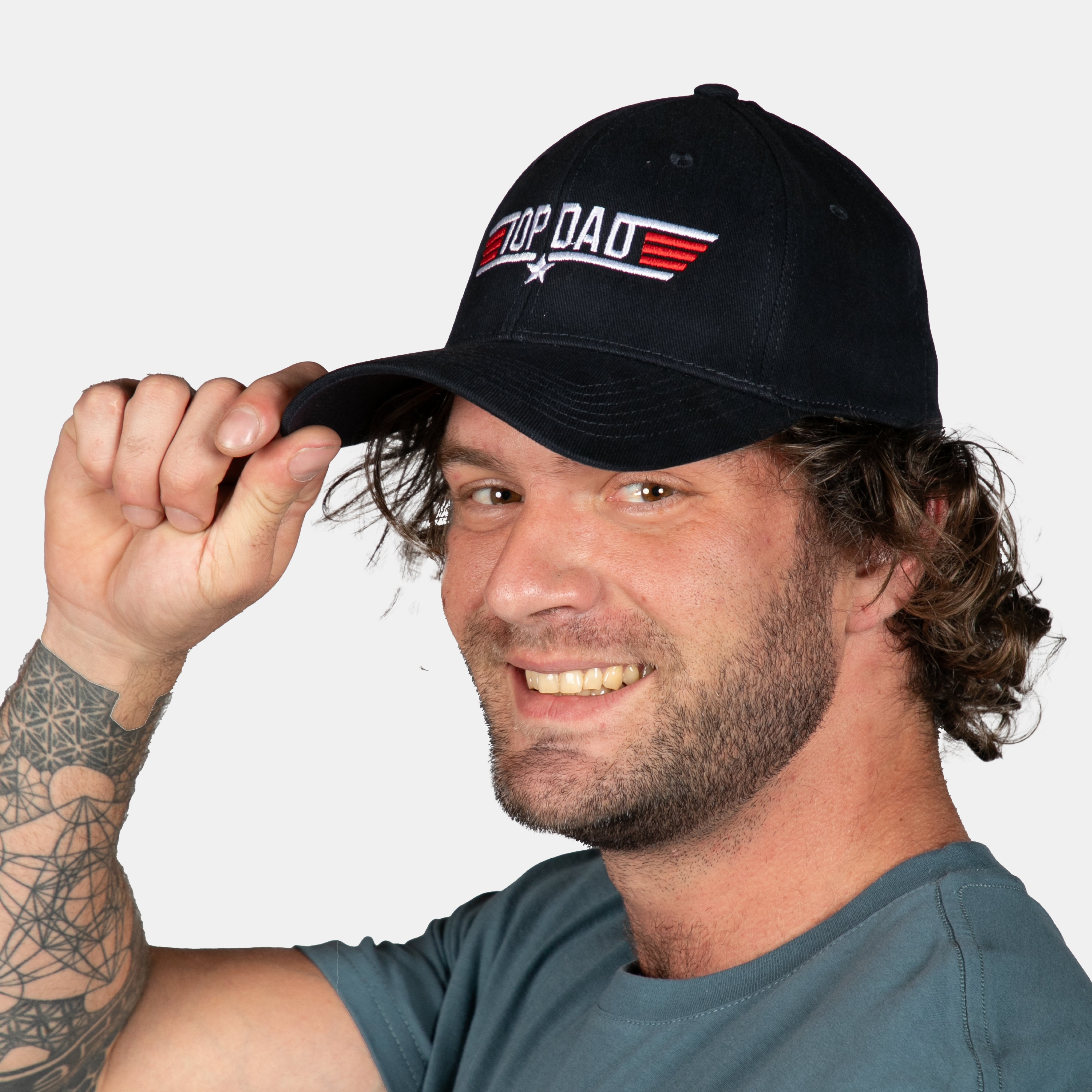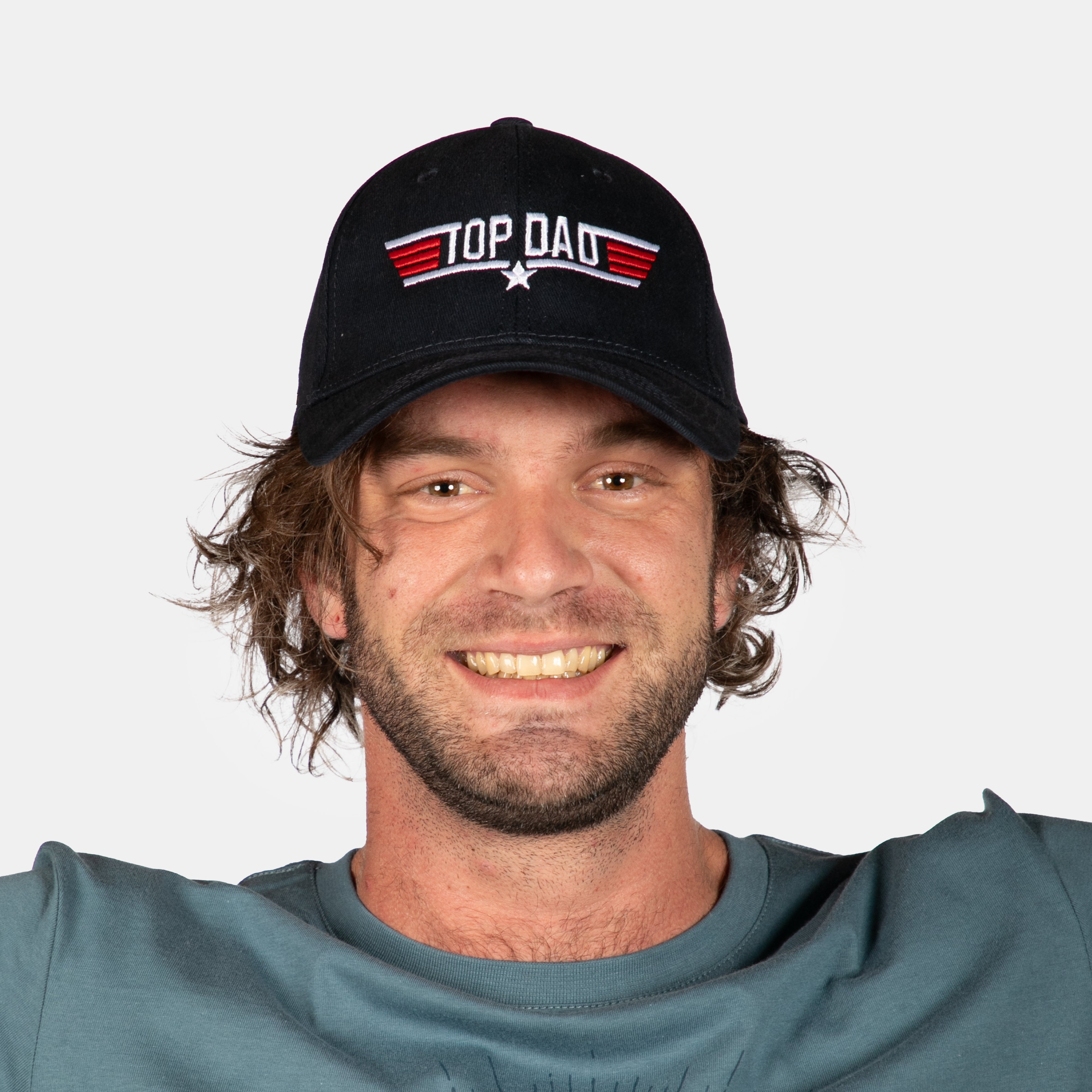 This boasts the embroidered Top Dad insignia.