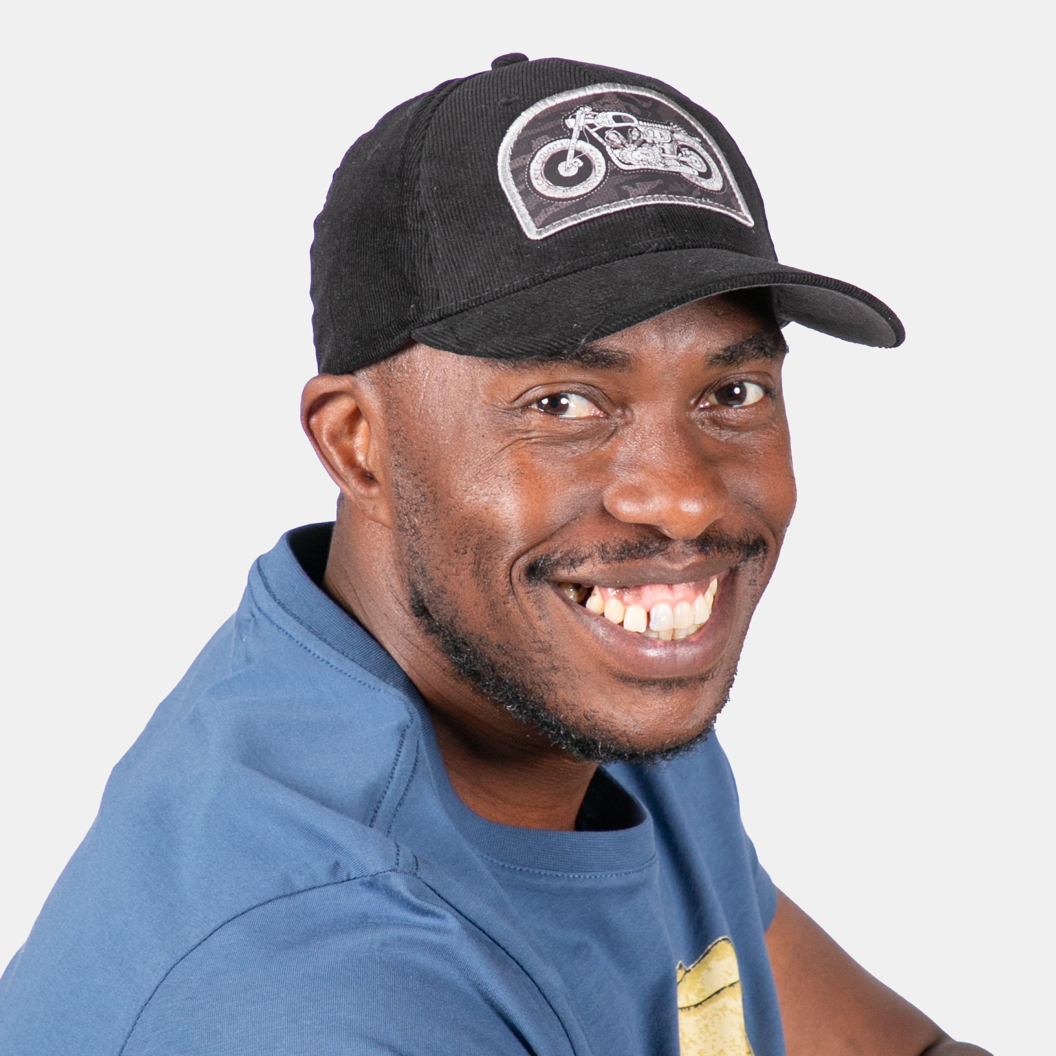 This corduroy cap boasts an embroidered patch motif of a Vintage Bike on it's front.