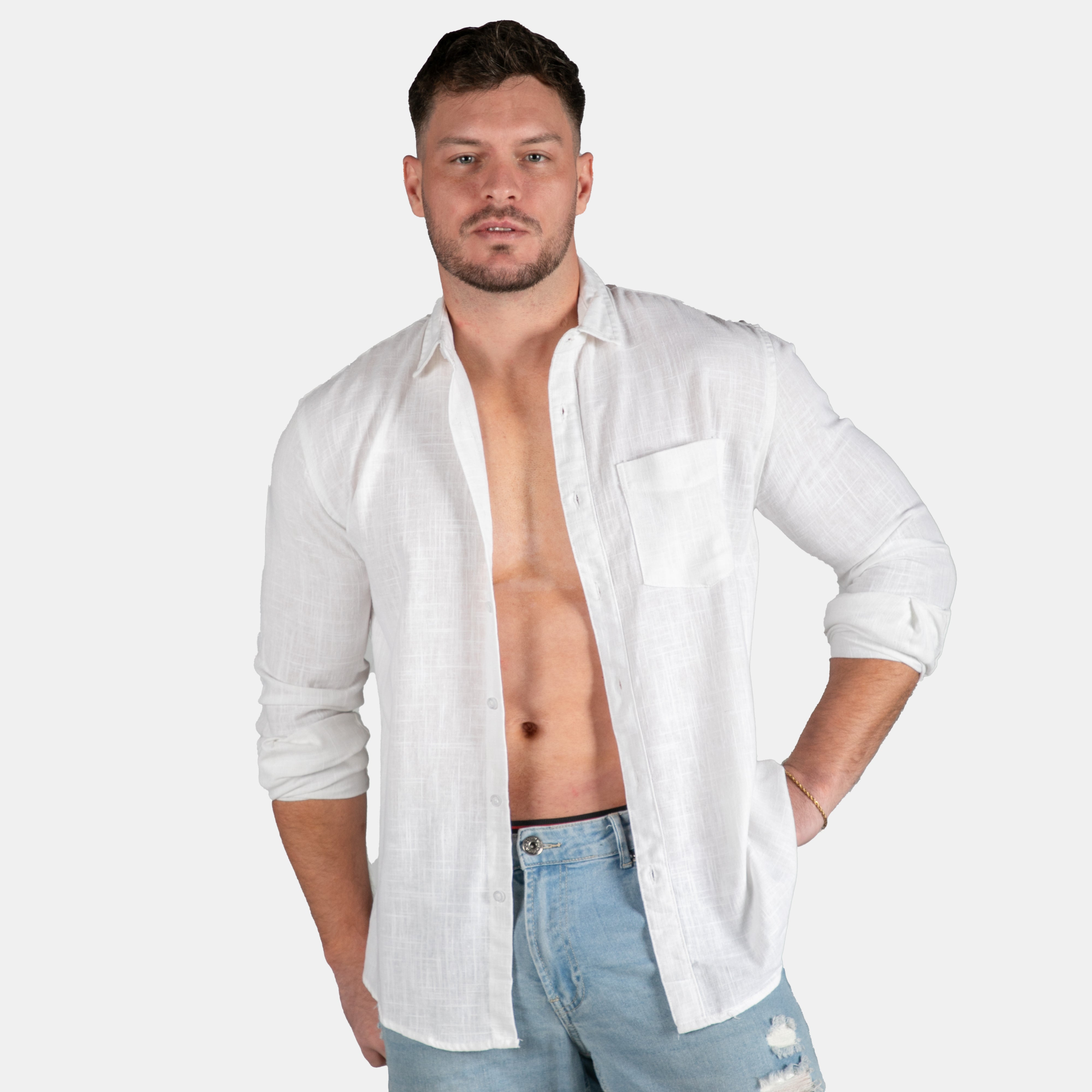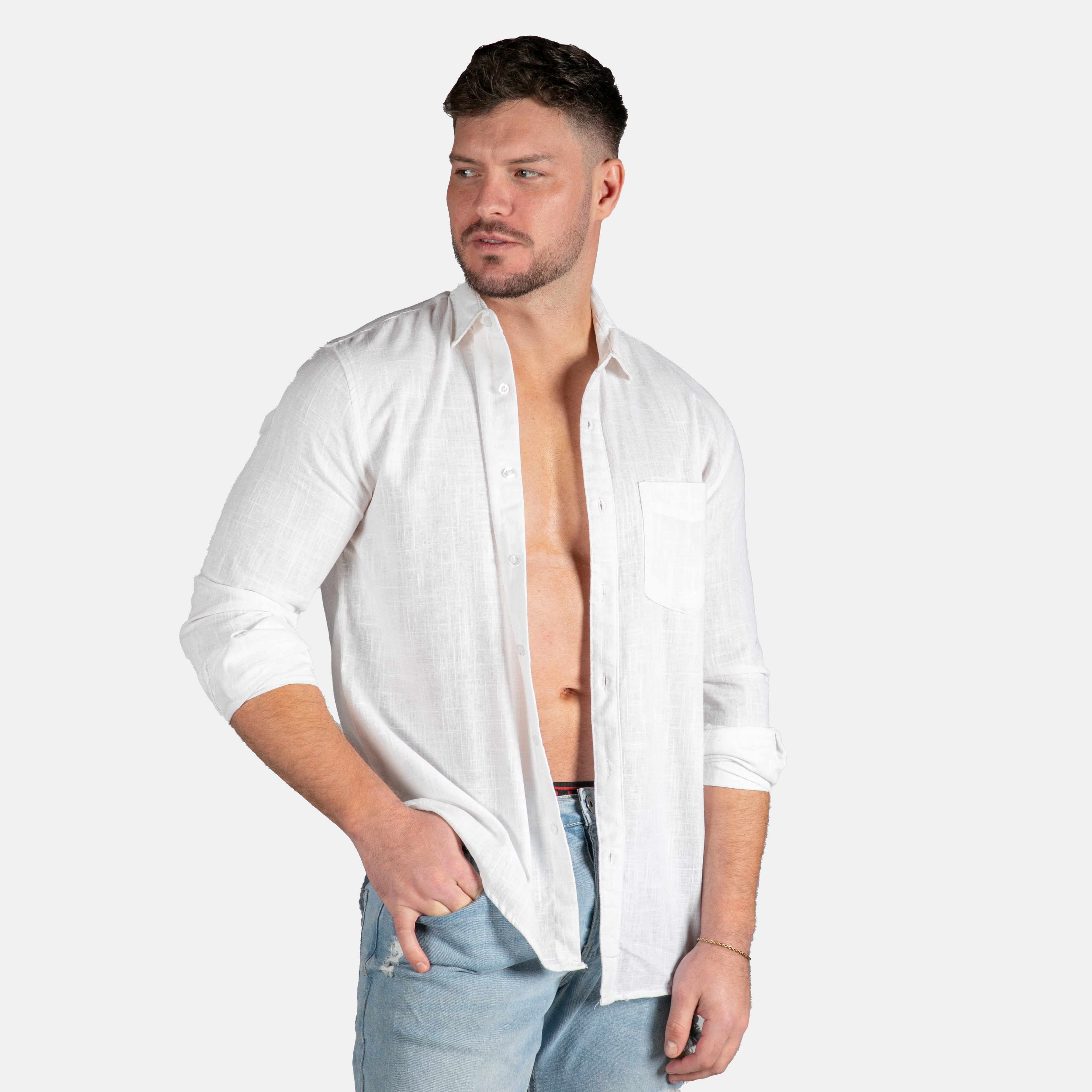 The Rome shirt features a classic spread collar and front chest pocket, button down front with placket and cuffed long sleeves.