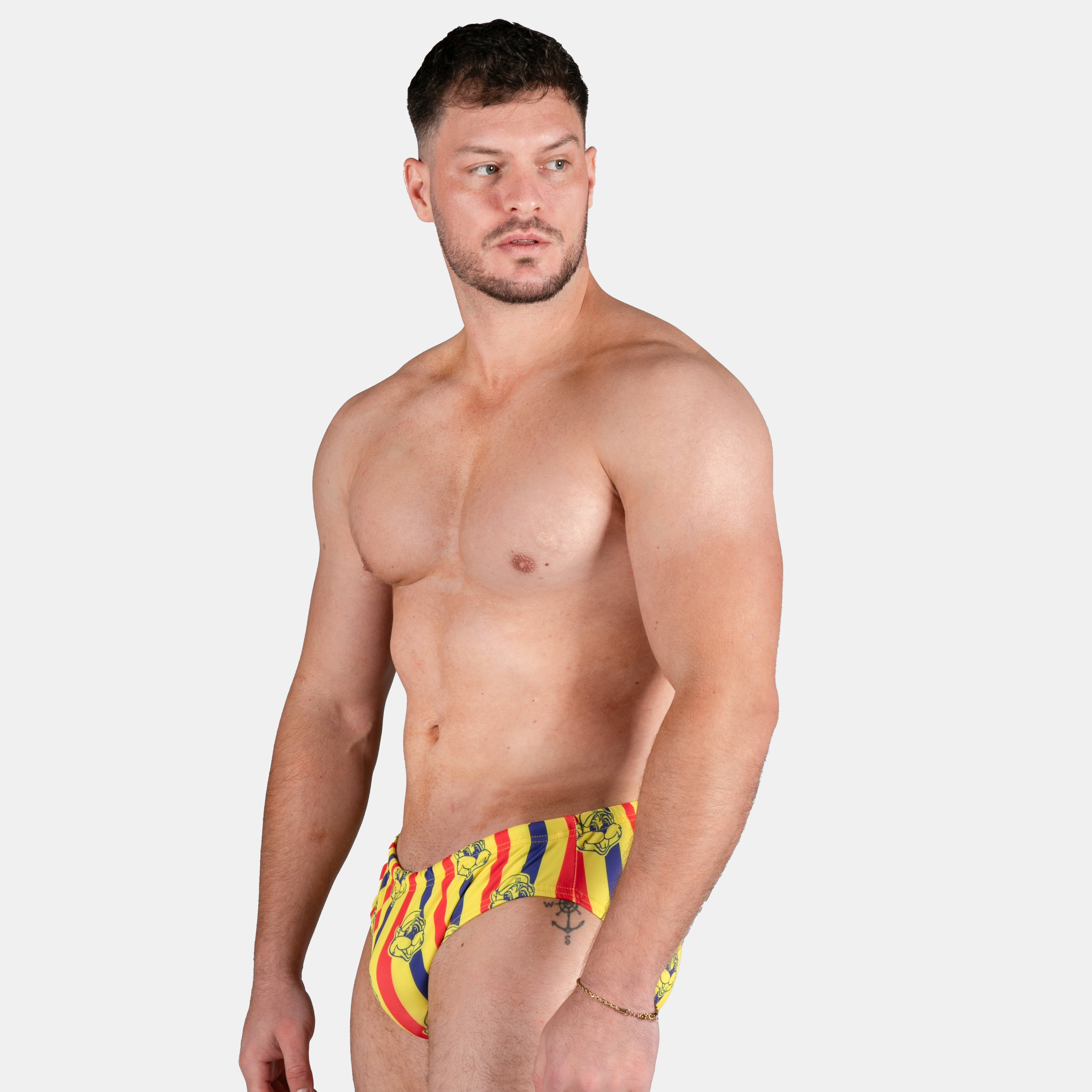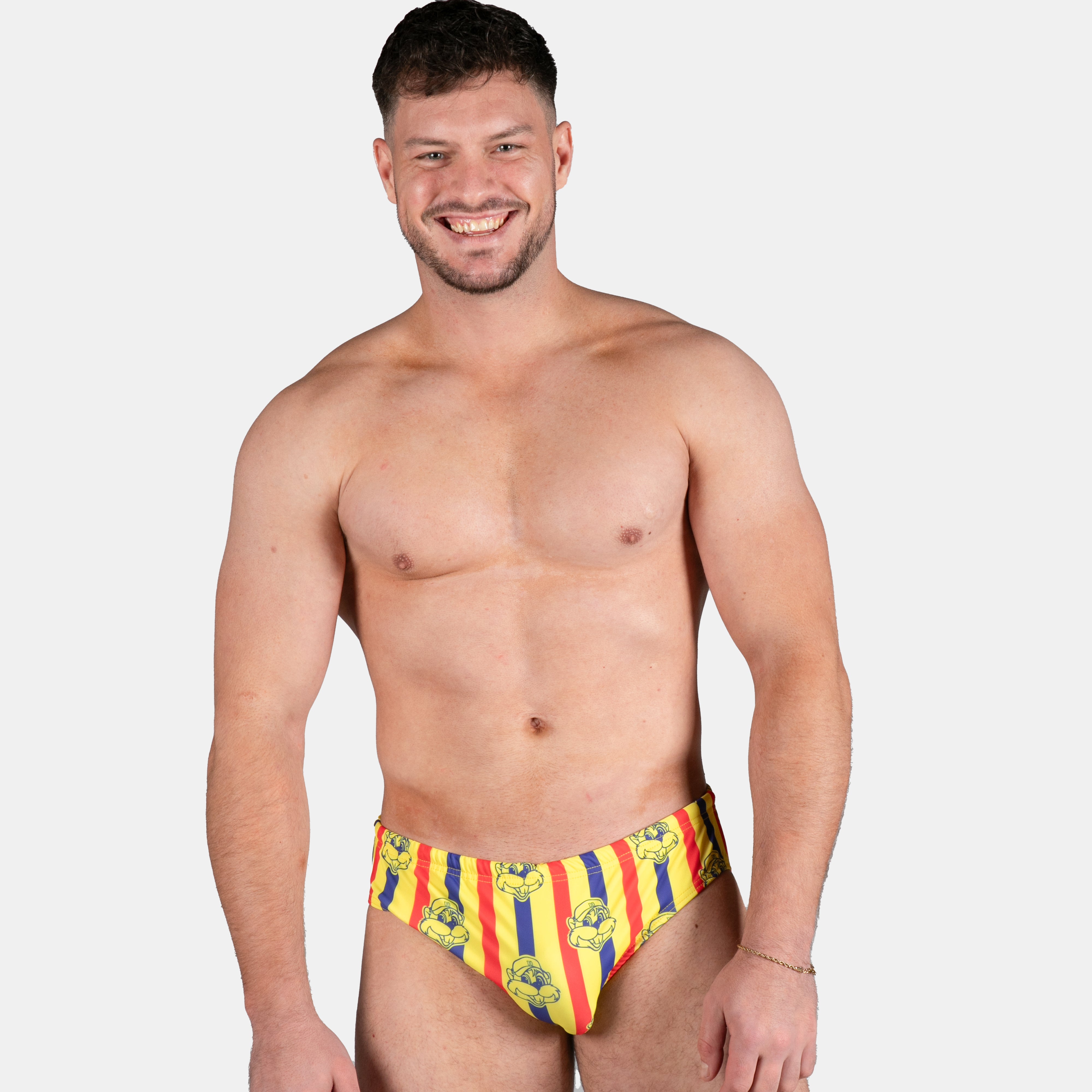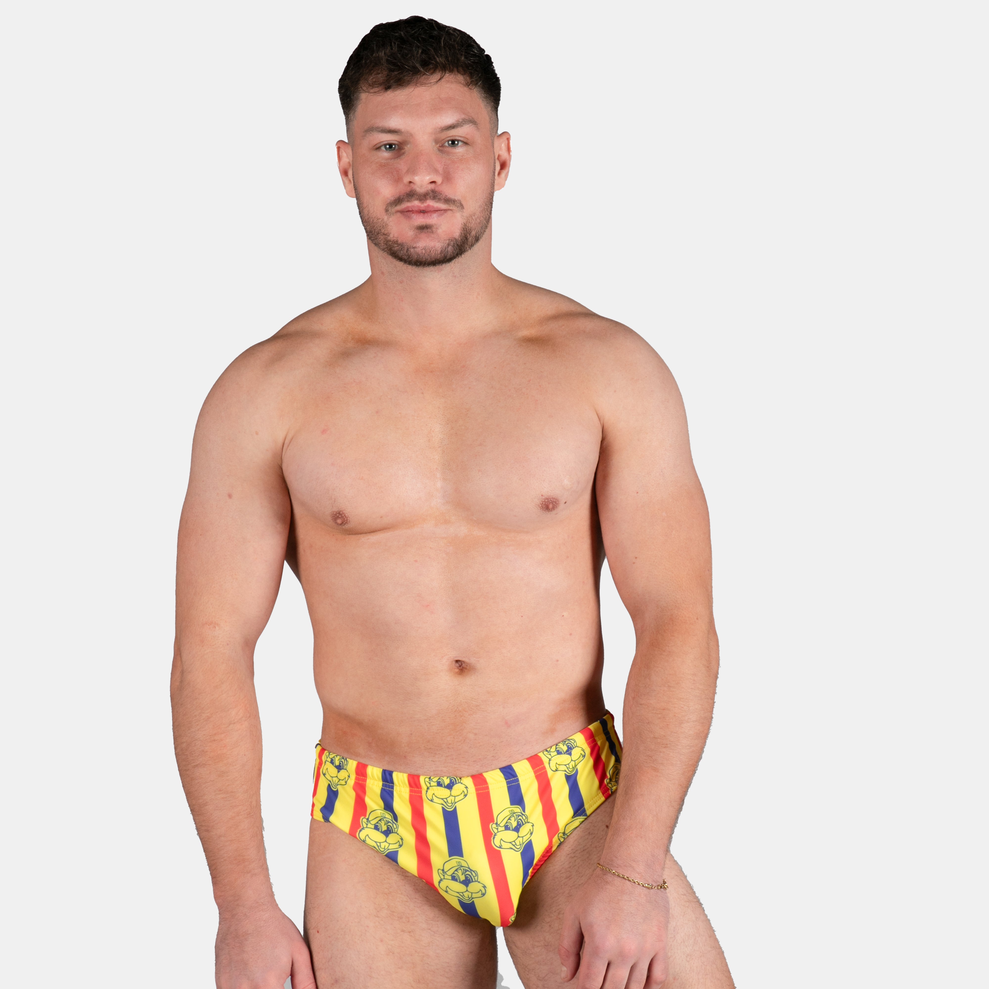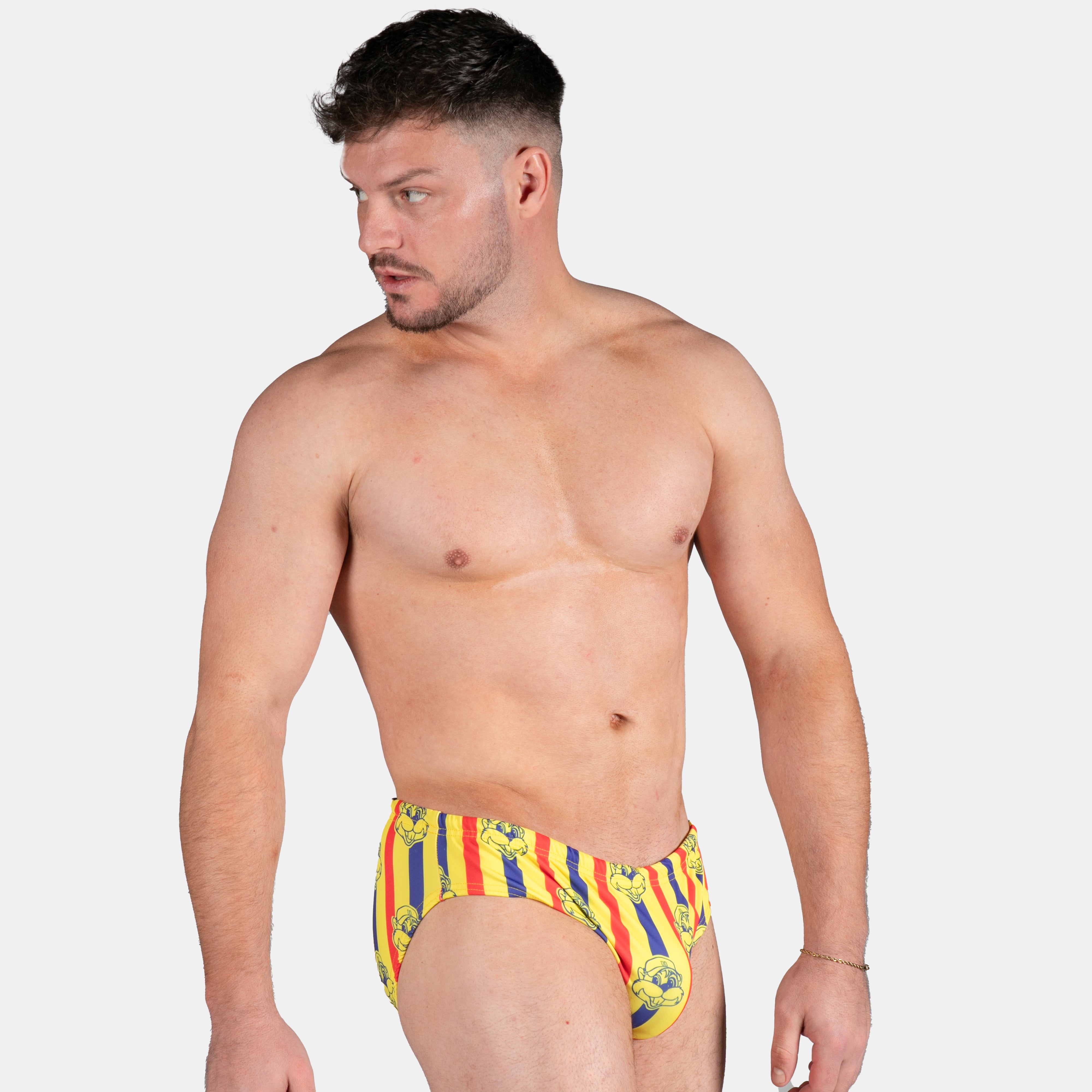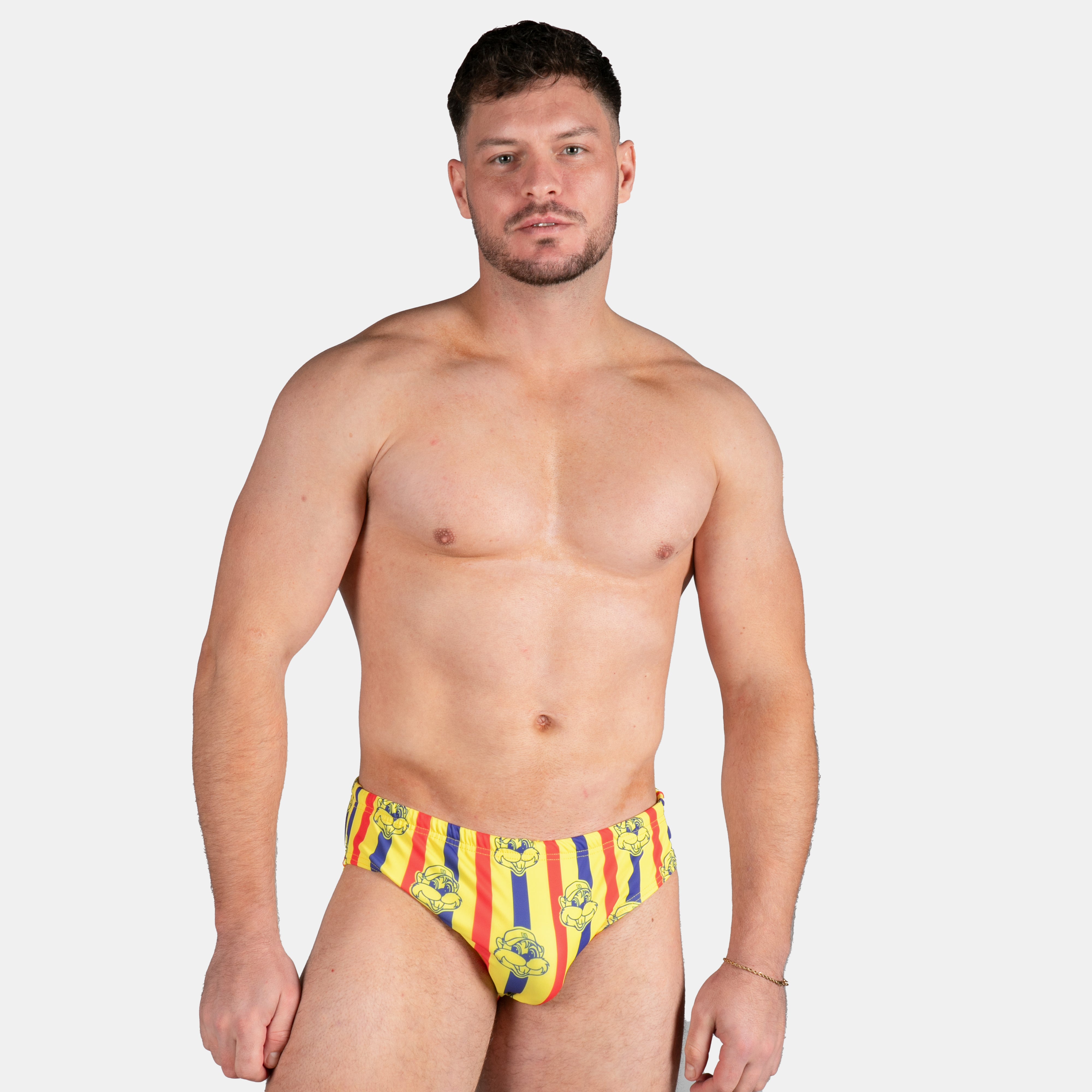 That familiar bubble gum brand with the iconic stripe chipmunk design is now on swim briefs for men.
