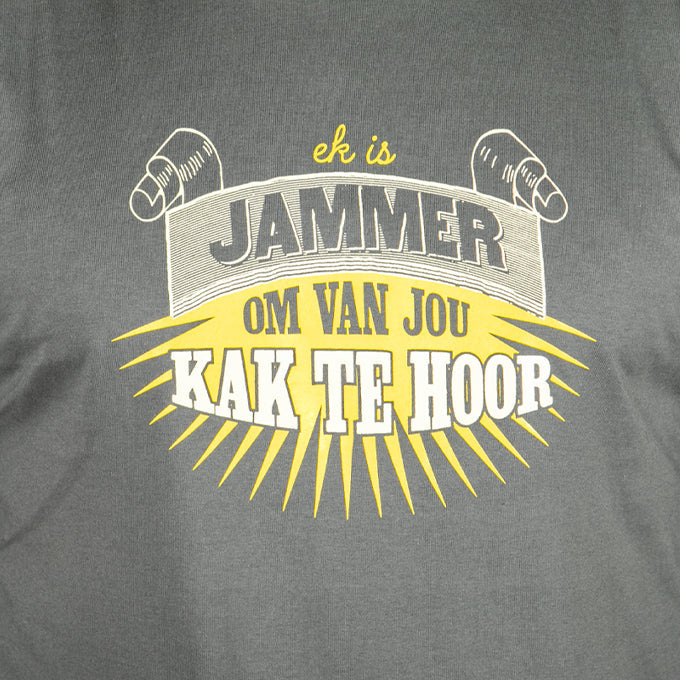 The favourite Jammer t-shirt is back !! Sorry to hear of your troubles - but in Afrikaans it's way more expressive.
