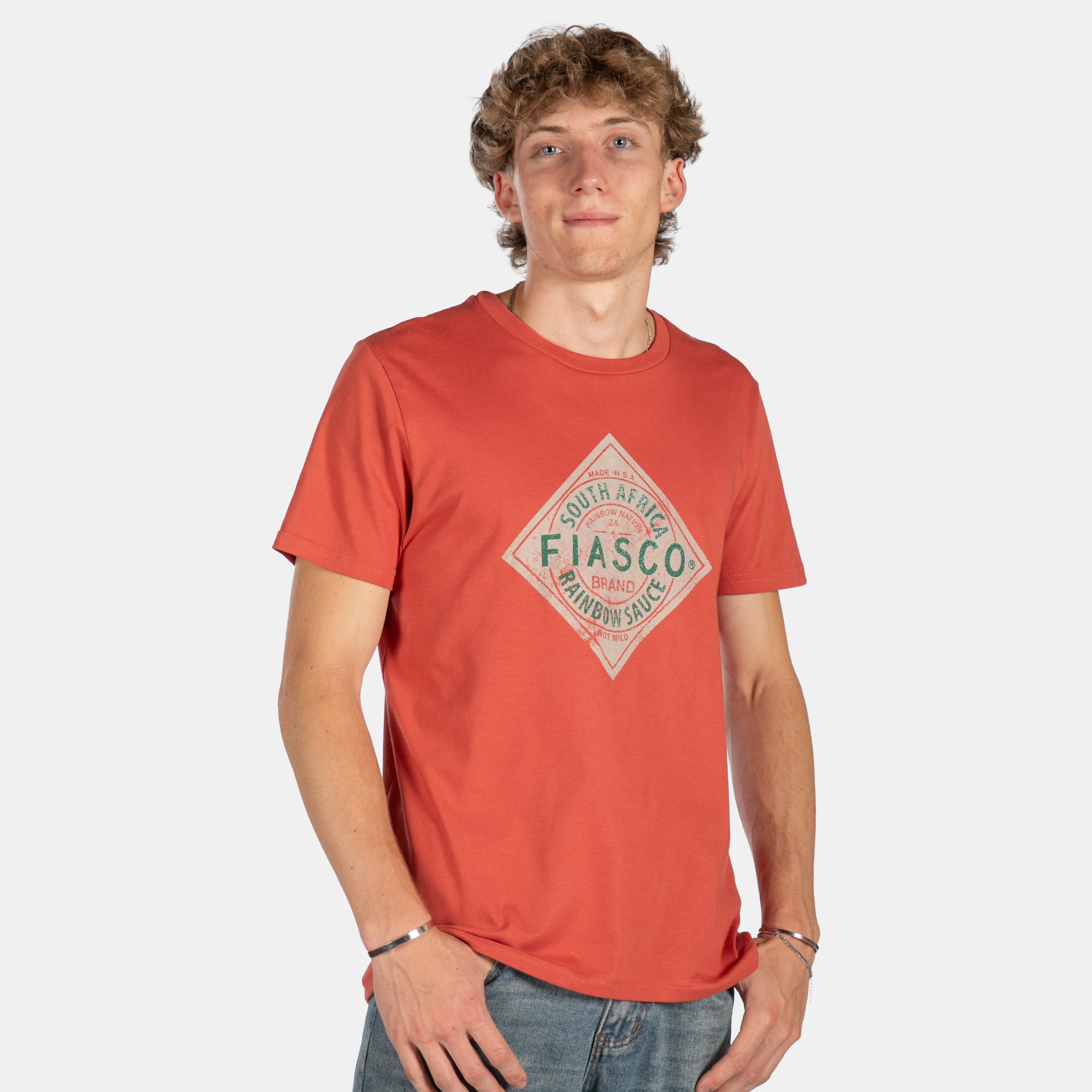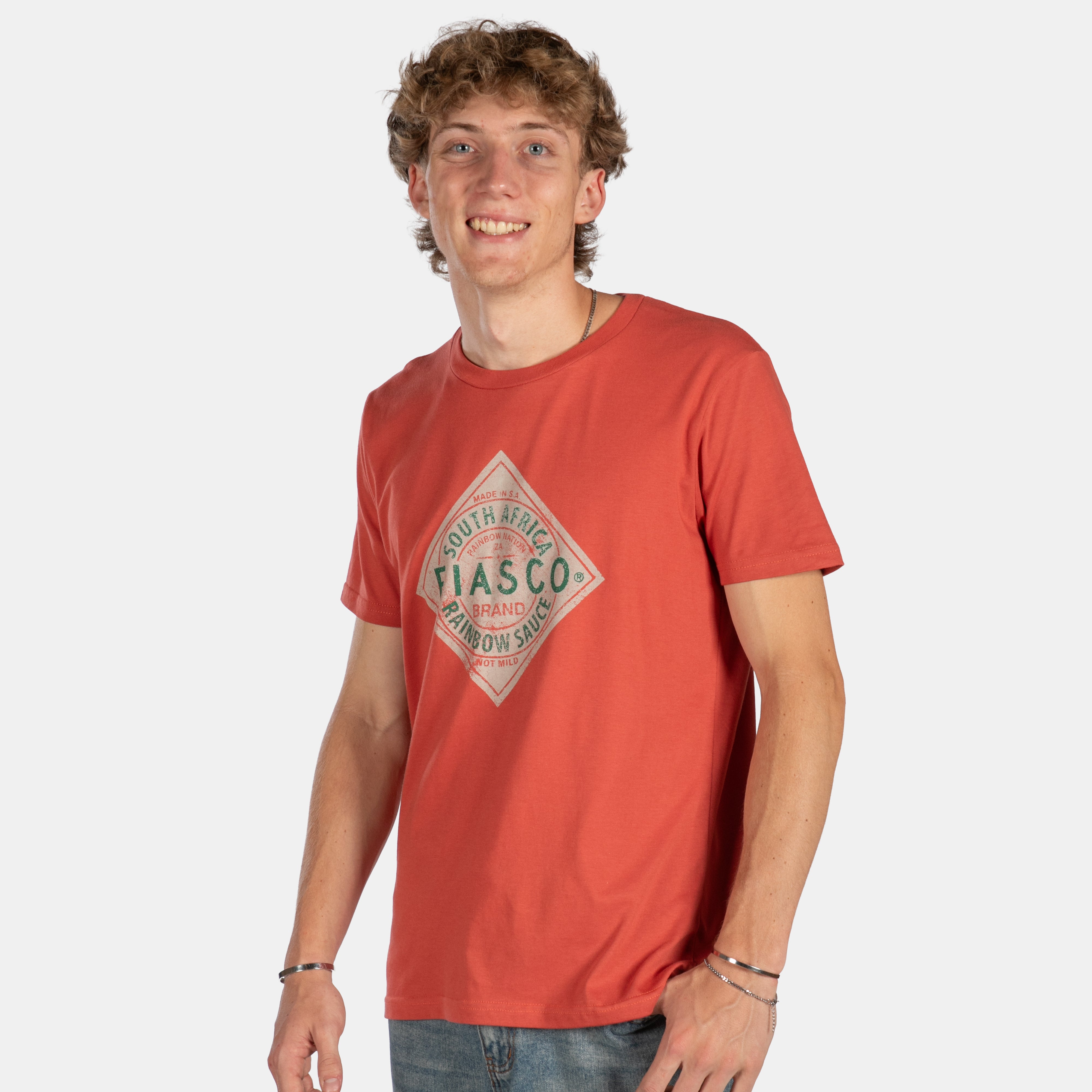 This cheeky men's tee puts a spicy spin on iconic branding with a tongue-in-cheek nod to South Africa.