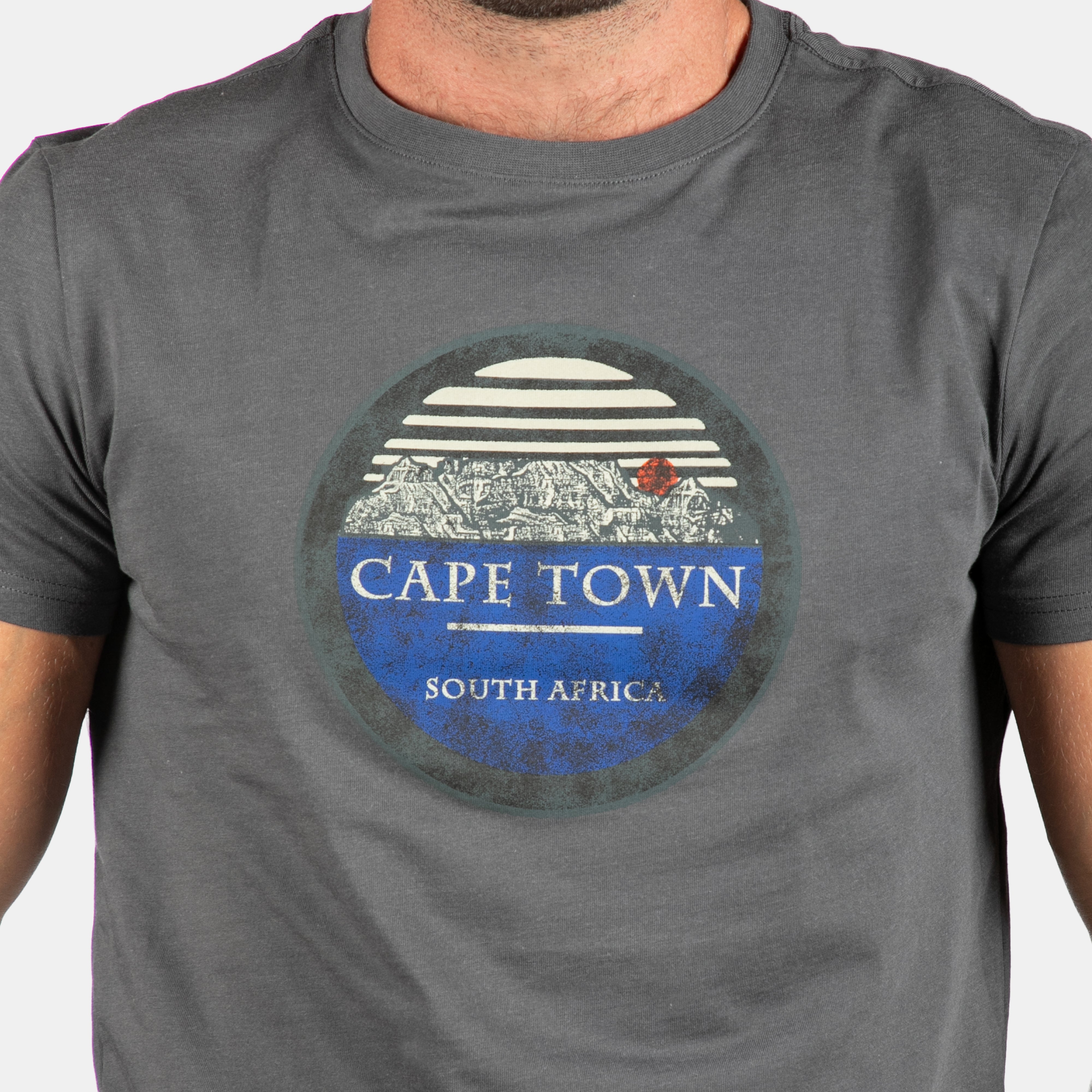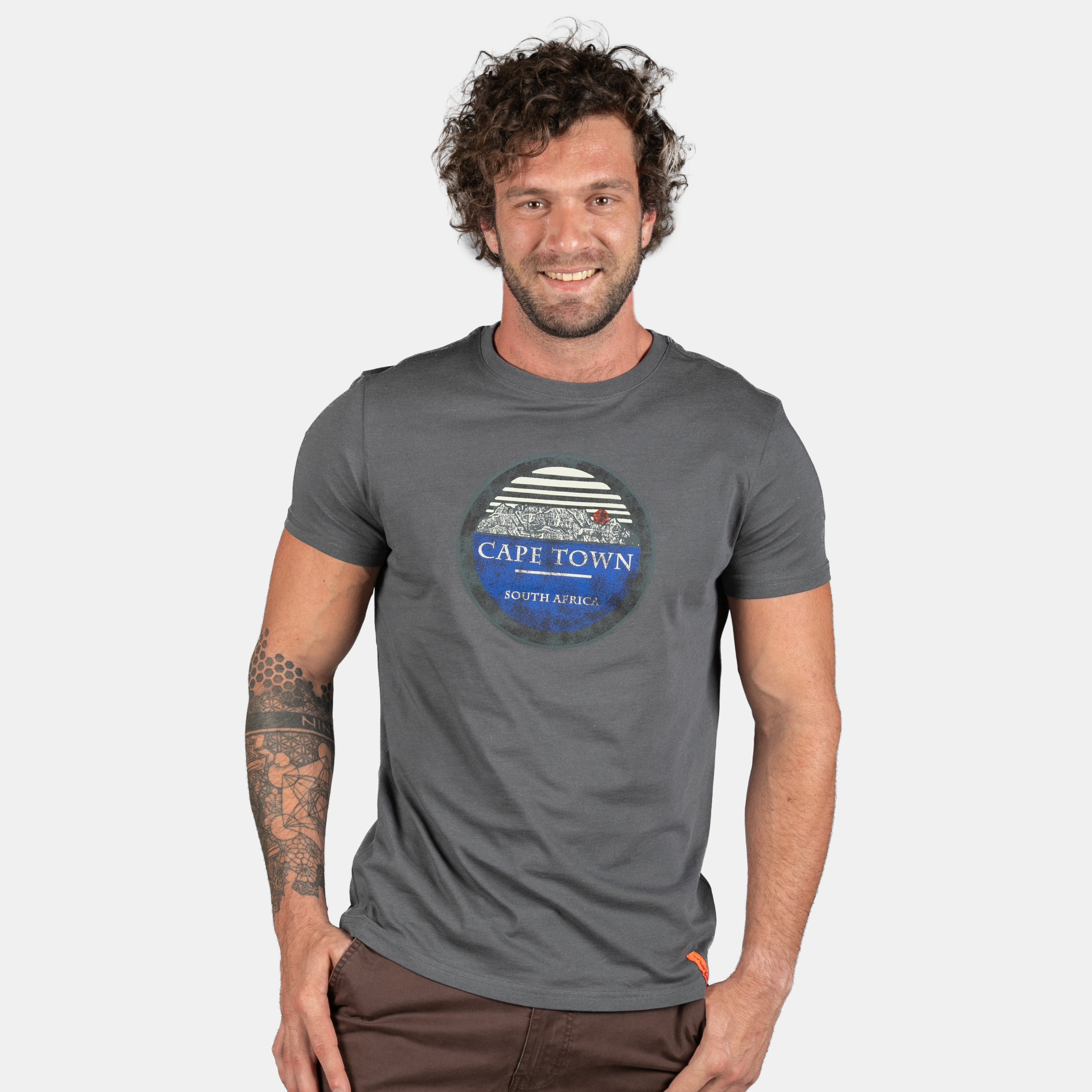Cape Town and her mountain - South Africa's crowning glory! Our new t-shirt for men is for those who visit and love her.
