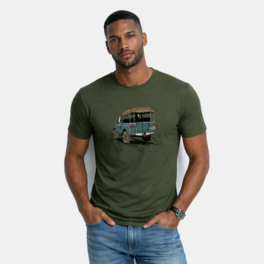 Available exclusively online, this men's tee features a comic style drawing of a Land Rover series 2. A great t-shirt for men with adventure in their hearts.