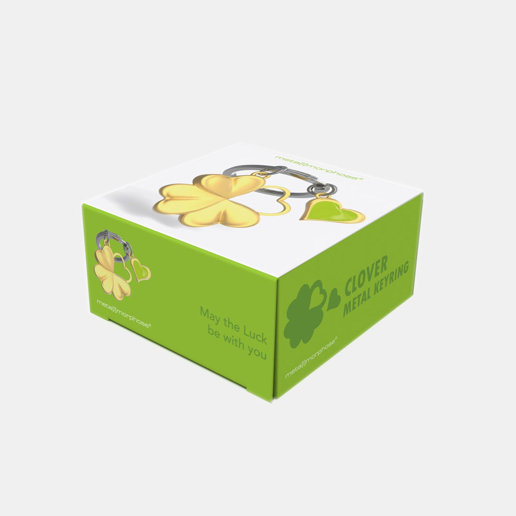 This Clover keyring features a stylised design of a clover and a green and gold heart, made possible by cutting-edge technology.