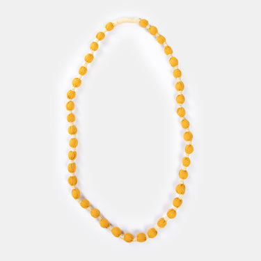 Colourful fabric covered beads create a string of joy around your neck. Available in three colours. Wear them all together for a unique statement this season.
