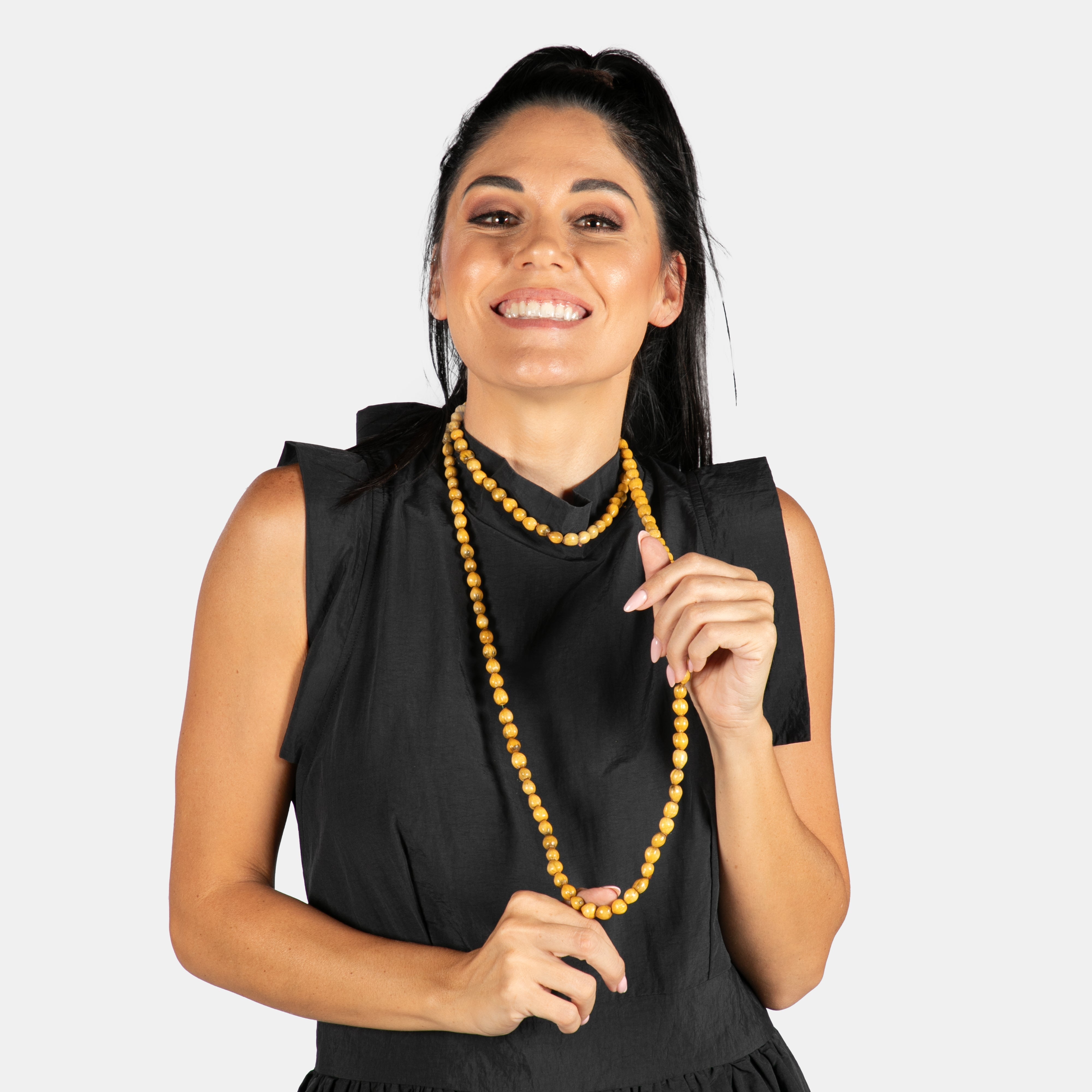Also know as Imfibinga seeds, these beads are dyed in beautiful colours to create an organic necklace worn straight over the neck or twisted to form a choker. Get them in all the colours.