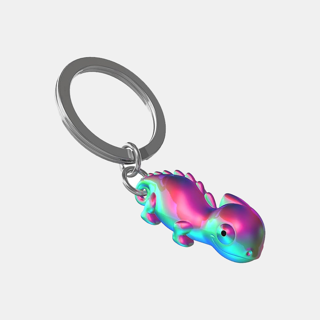Watch his colours change! This 3D chameleon keyring features a detailed design, made possible by cutting-edge technology. Crafted from high-quality metal, this keyring is durable and long lasting.