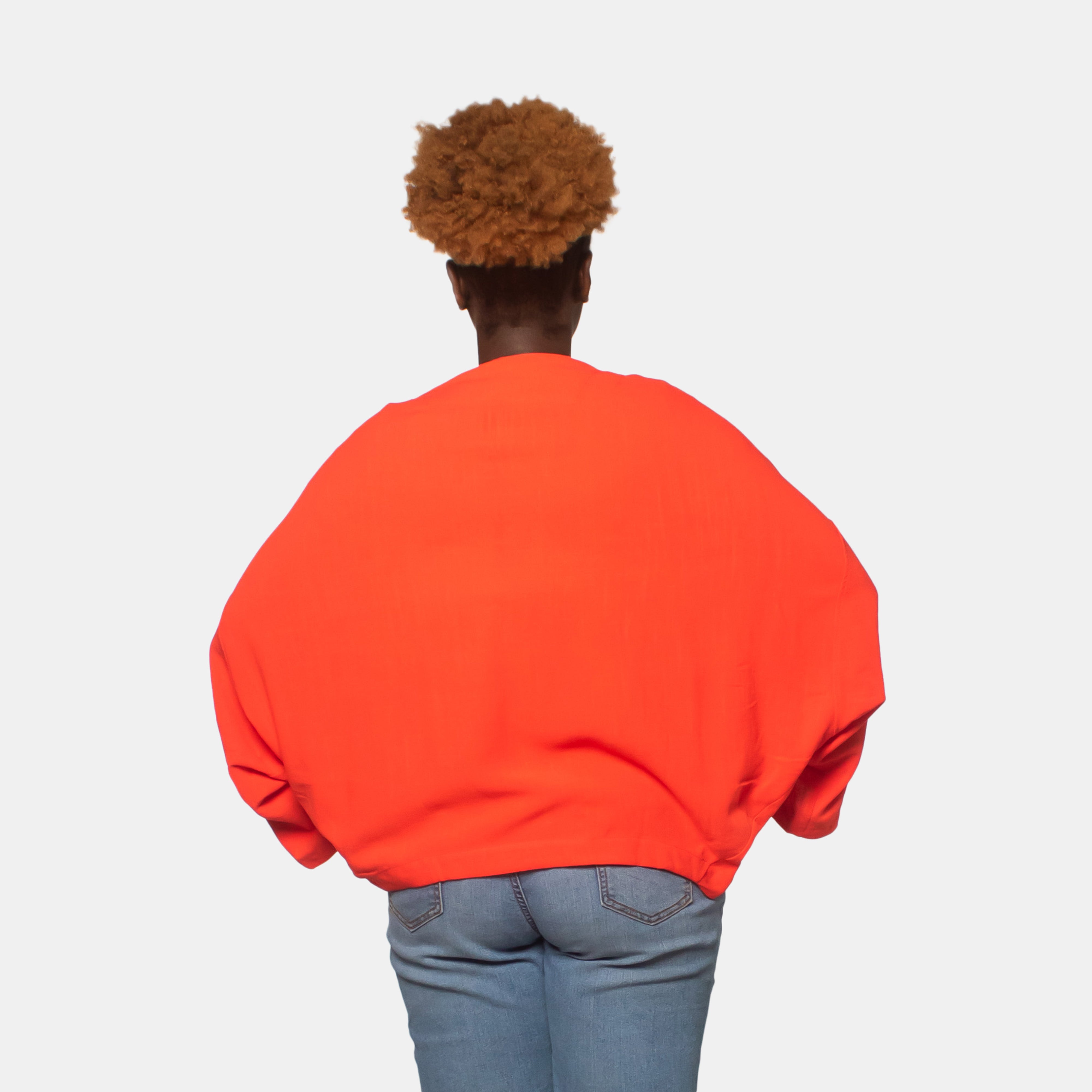 This cute top features a cropped hemline that flatters your figure while long batwing sleeves and a plunging V-neckline offer some unique design features. Functional front patch pockets also keep it edgy along with the large button front closure. Perfect for layering or wearing solo, this wardrobe essential transitions seamlessly from casual days to evening outings. Available in Coral and Airforce Blue.