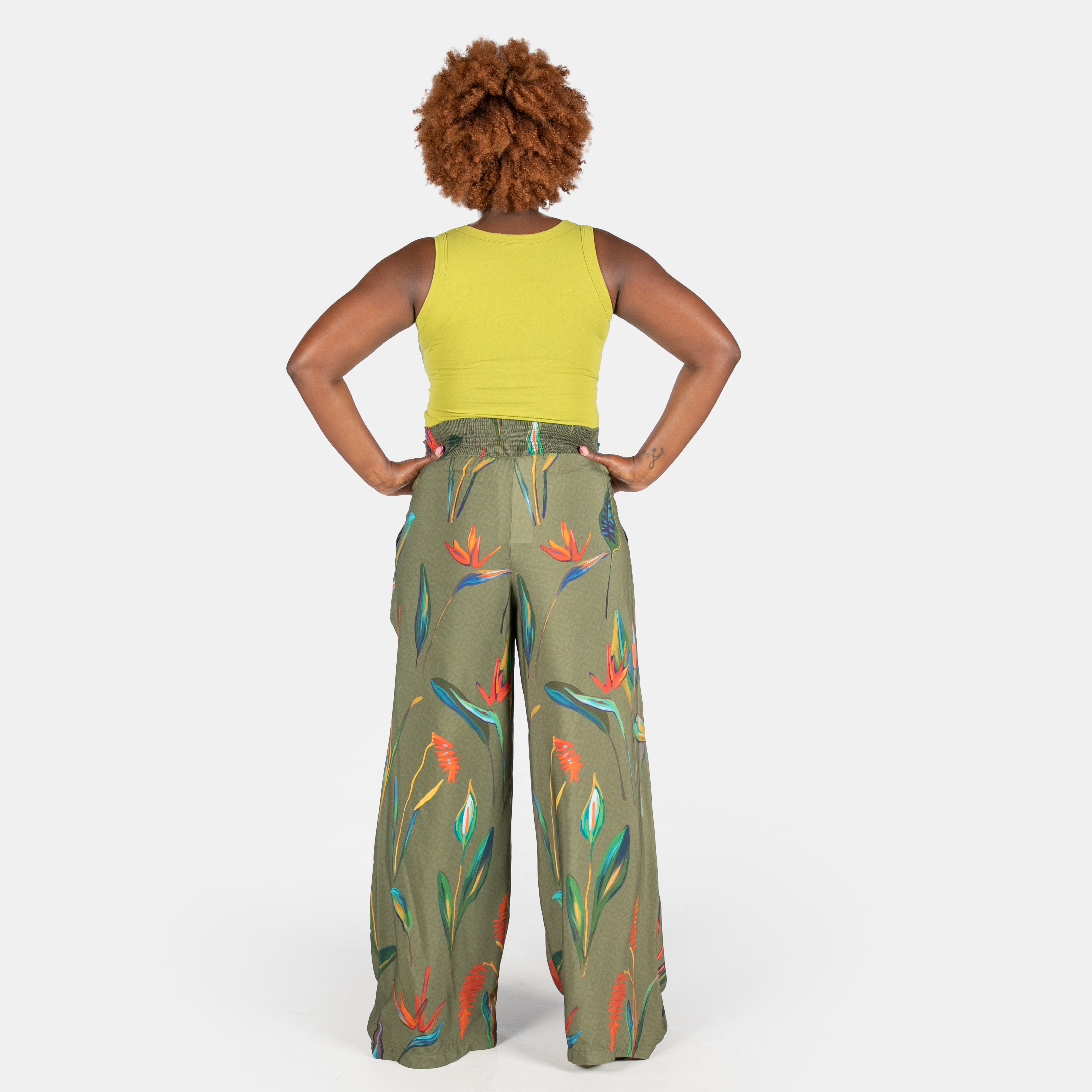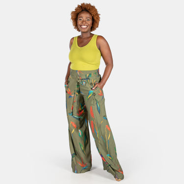 Ladies' Printed 6 Button Pants - Olive