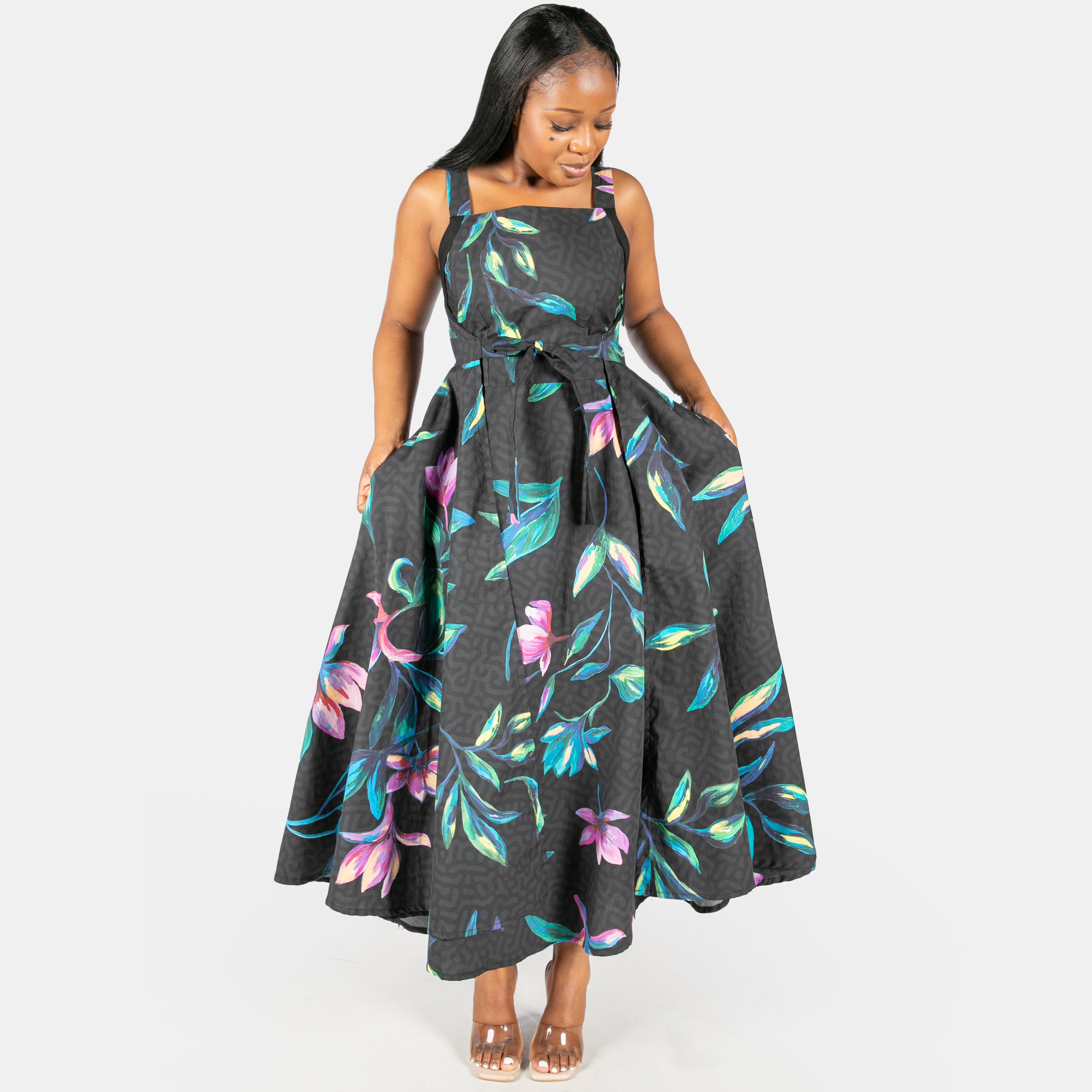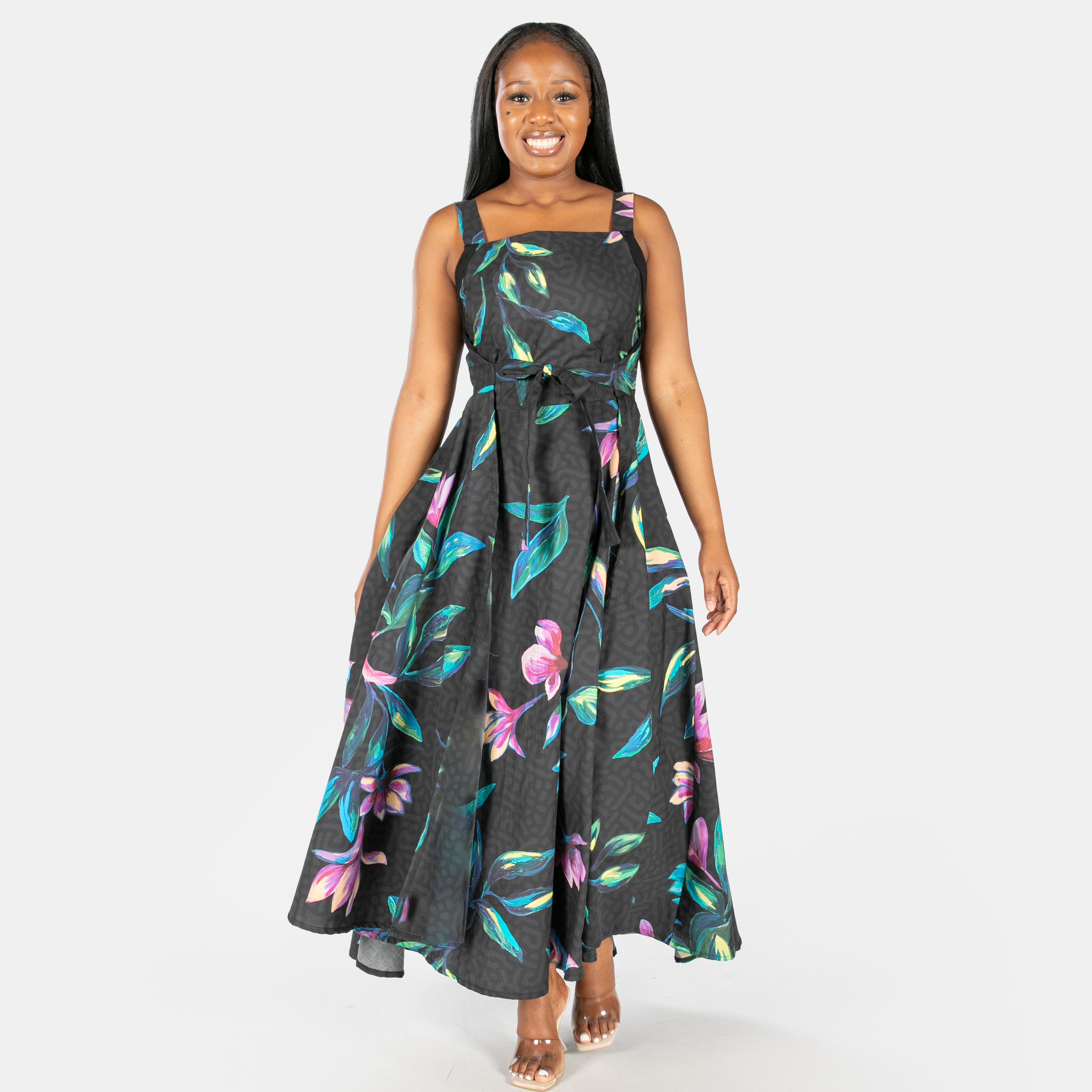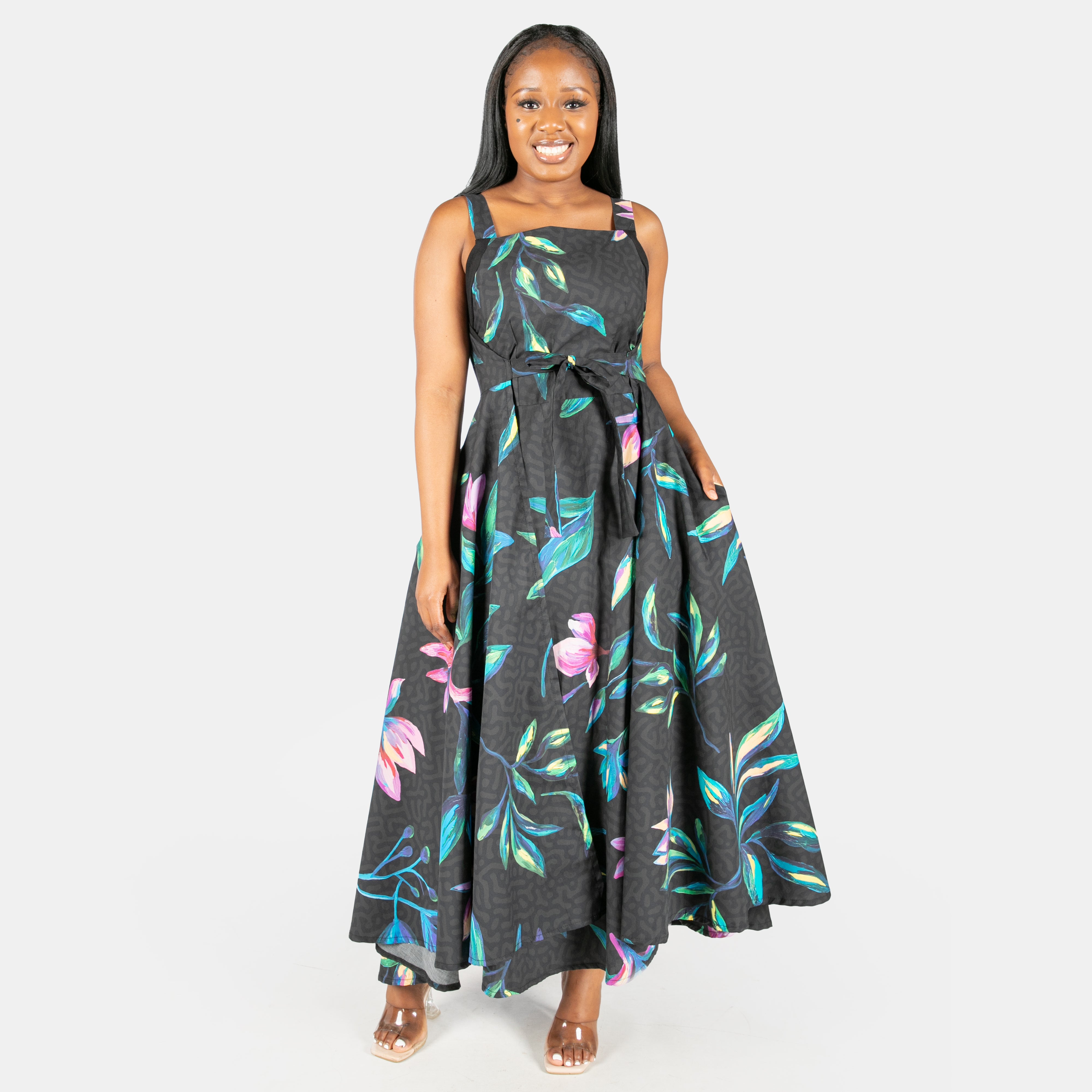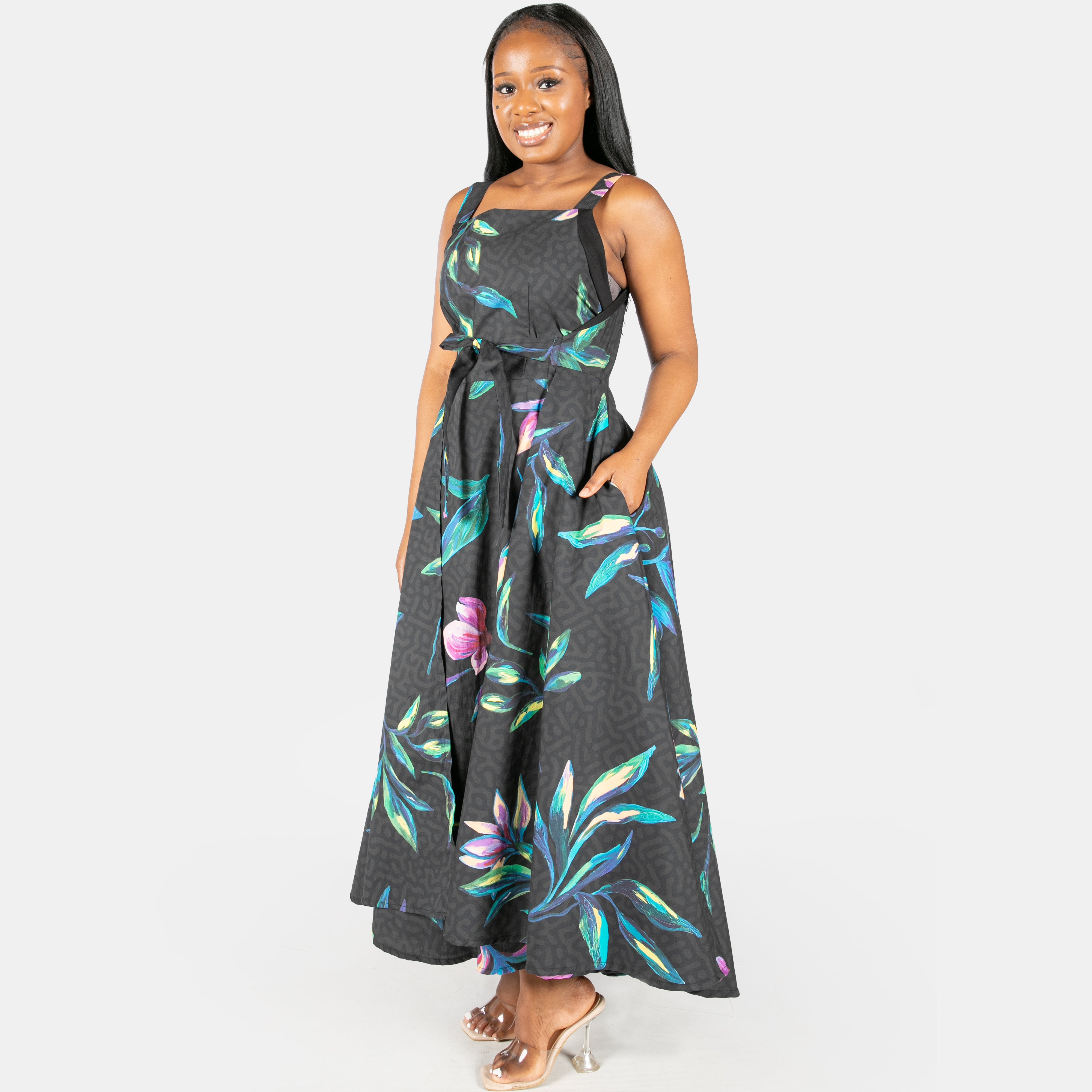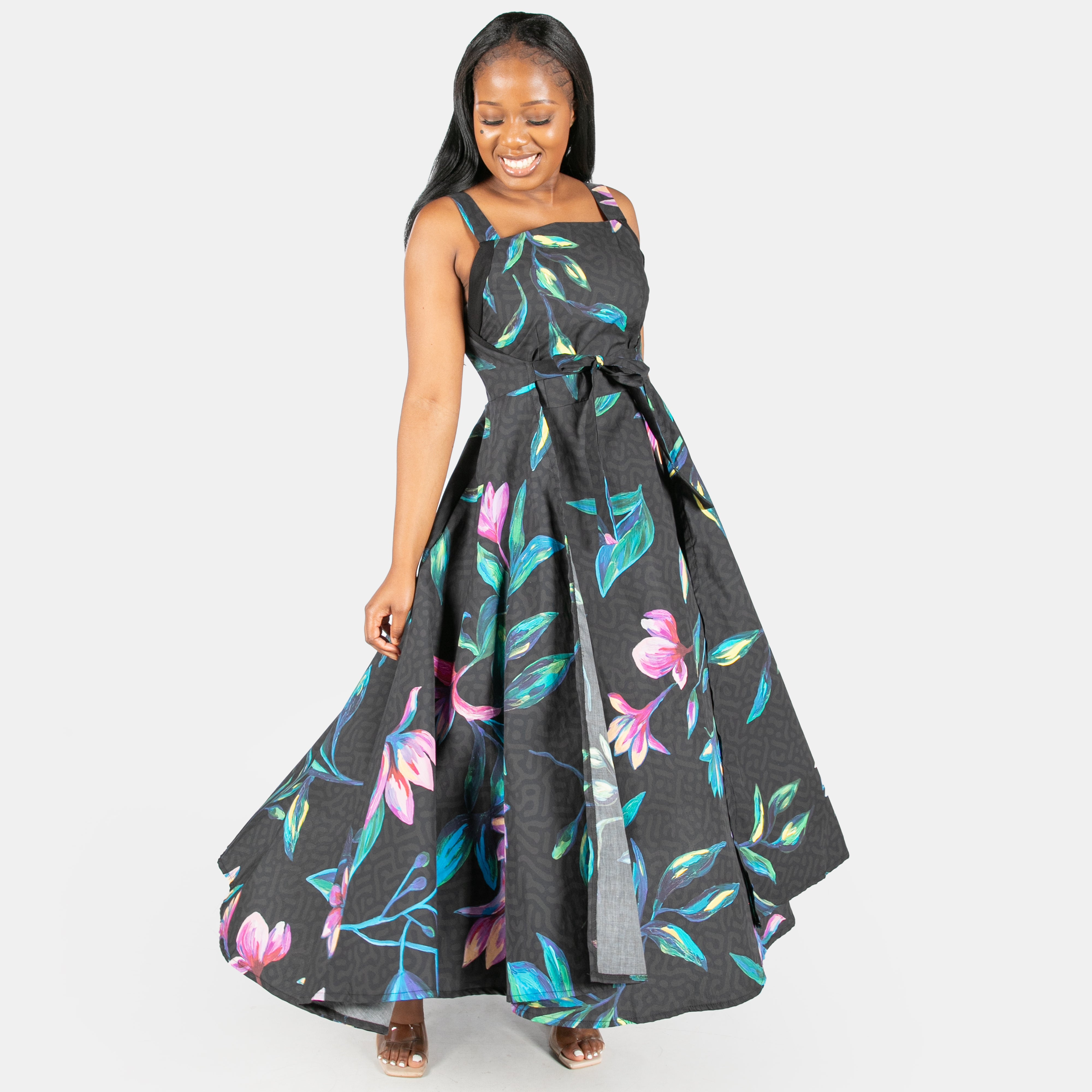 This statement dress is now available in a beautiful floral print and can be worn in two different ways to give you some versatility.
