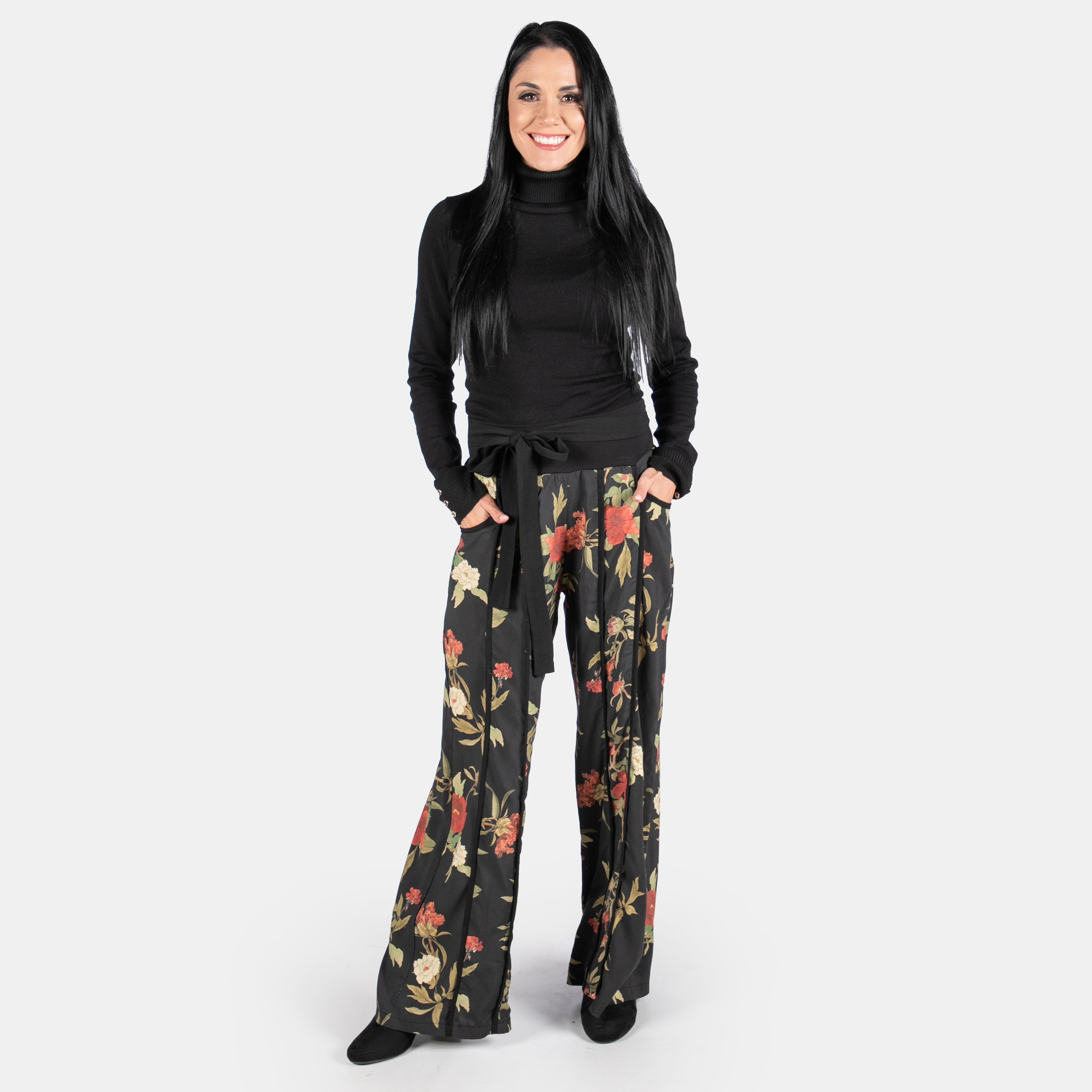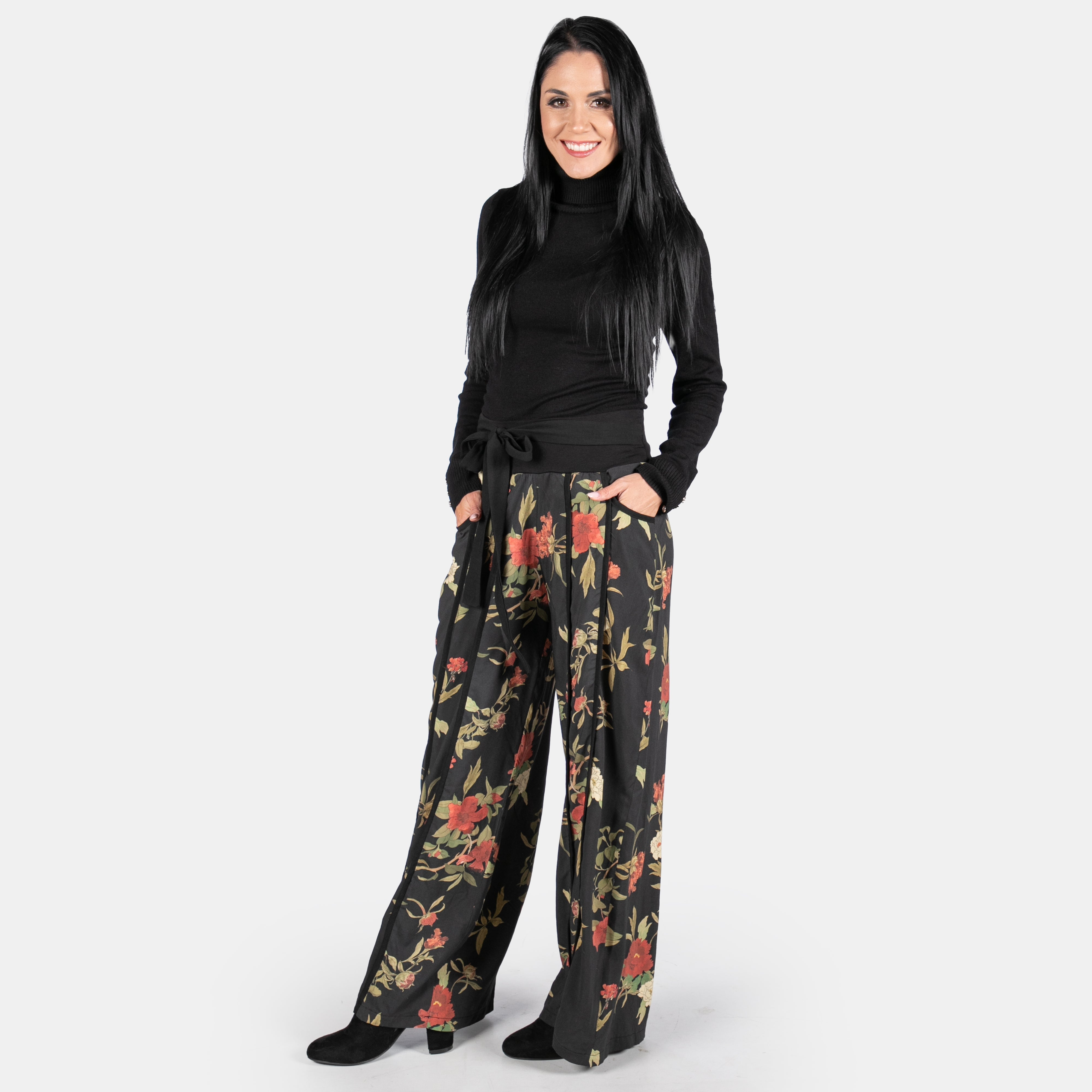 The beautiful floral fabric is the first thing you notice on these pants.