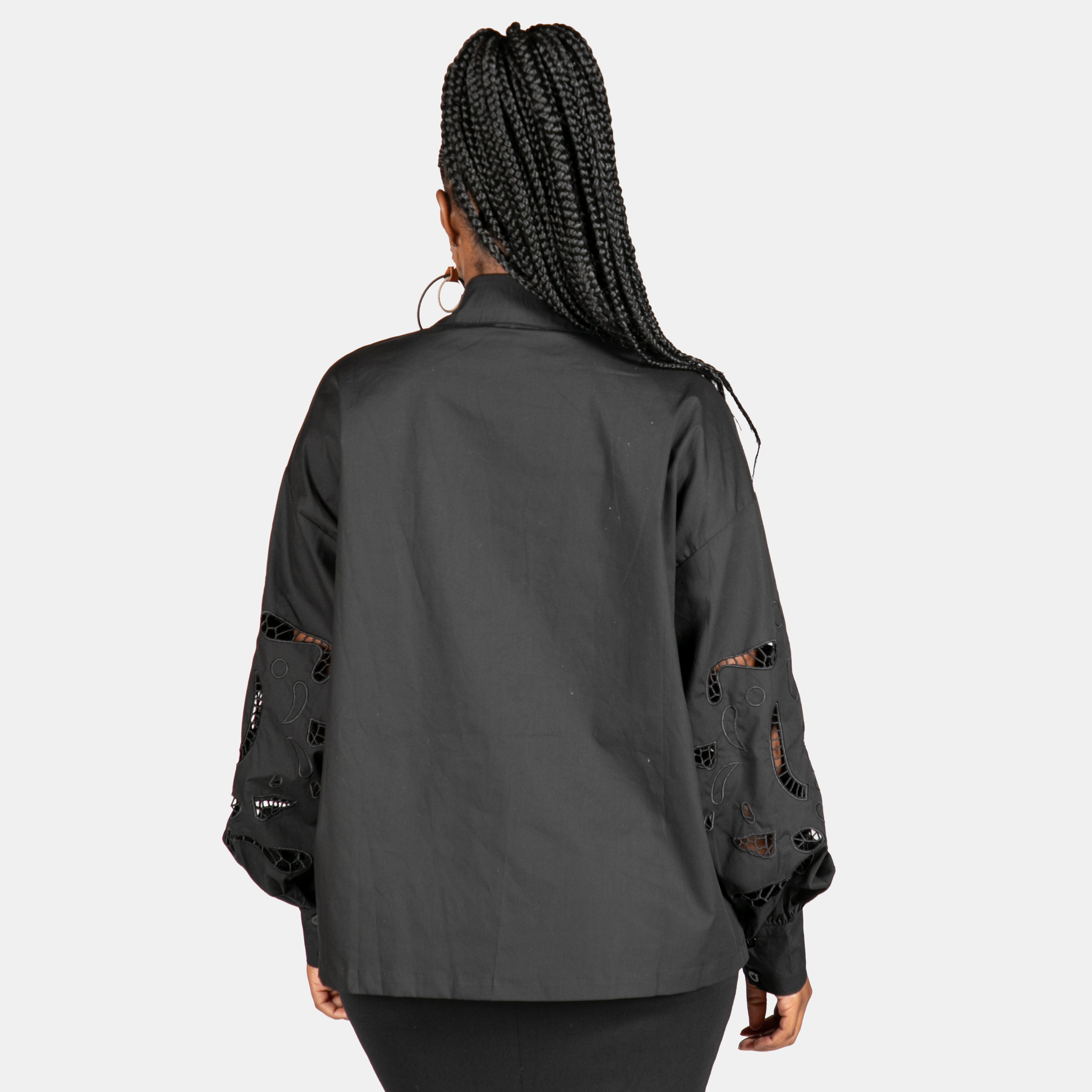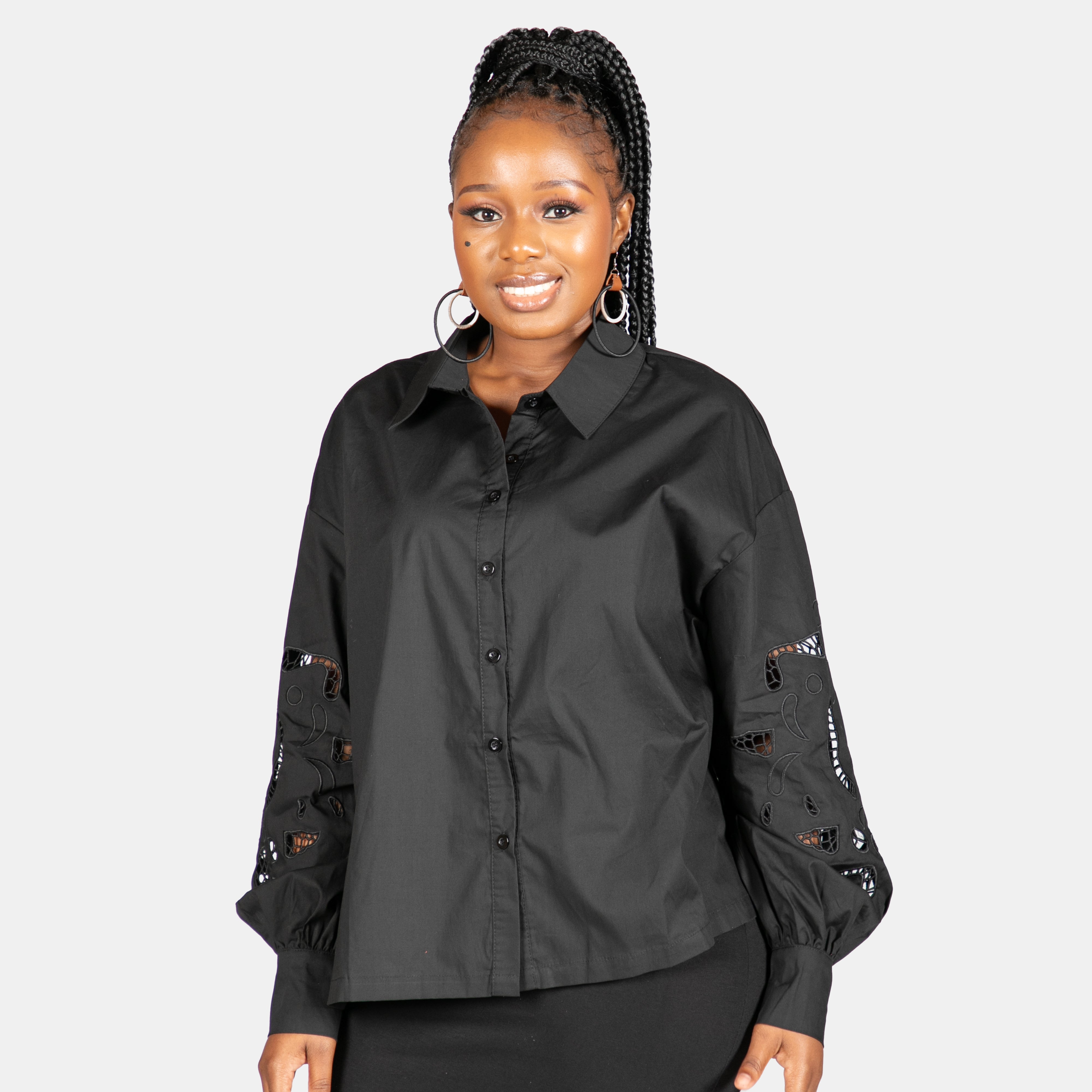 The Maleficent top features a full front button up and collar. The magic is in the long cuffed sleeves. They have an embroidered cut out down the length of both sleeves. Available in Black and Khaki, this shirt is one size fits most and designed as part of the Easy Breezy mix and match range. 100% Cotton.