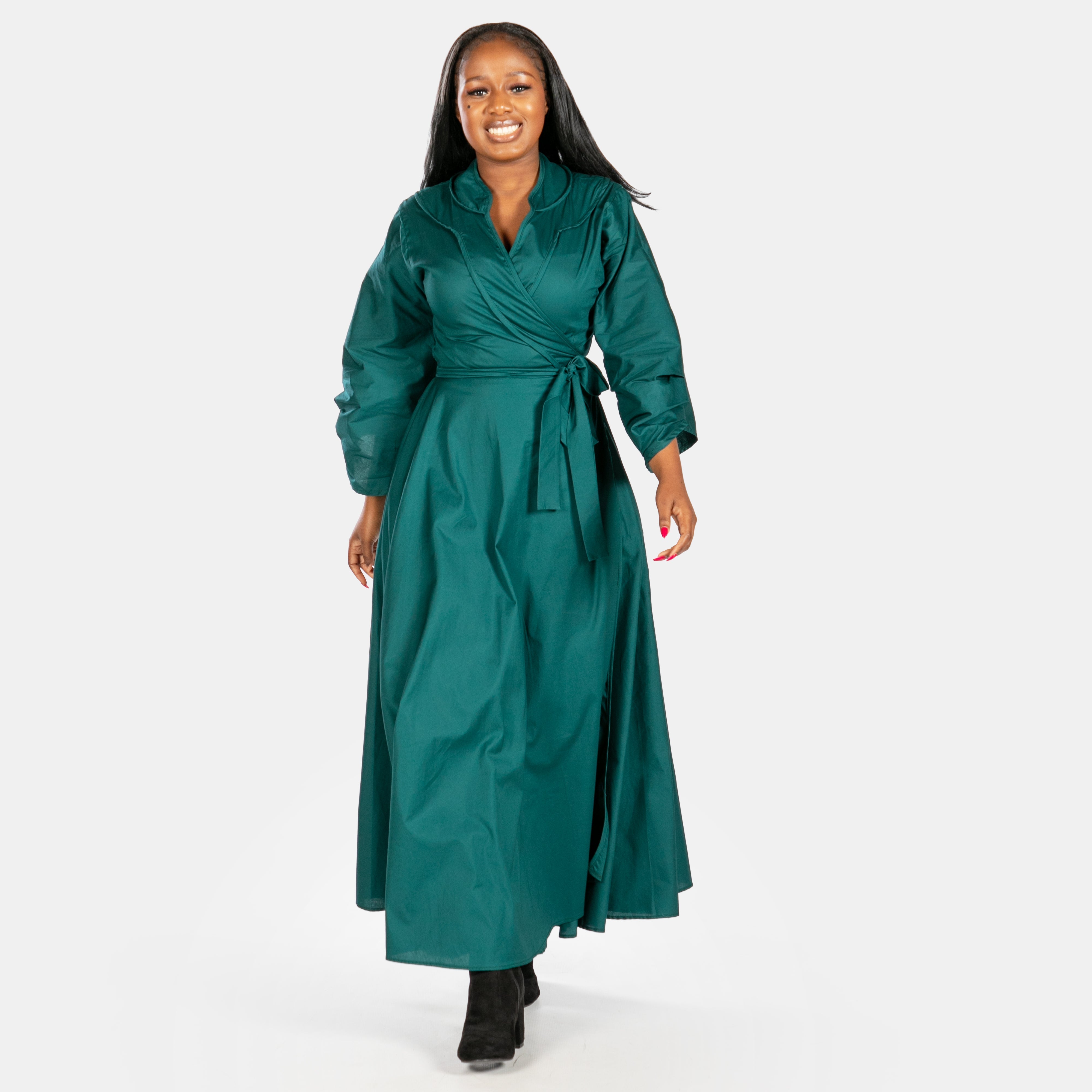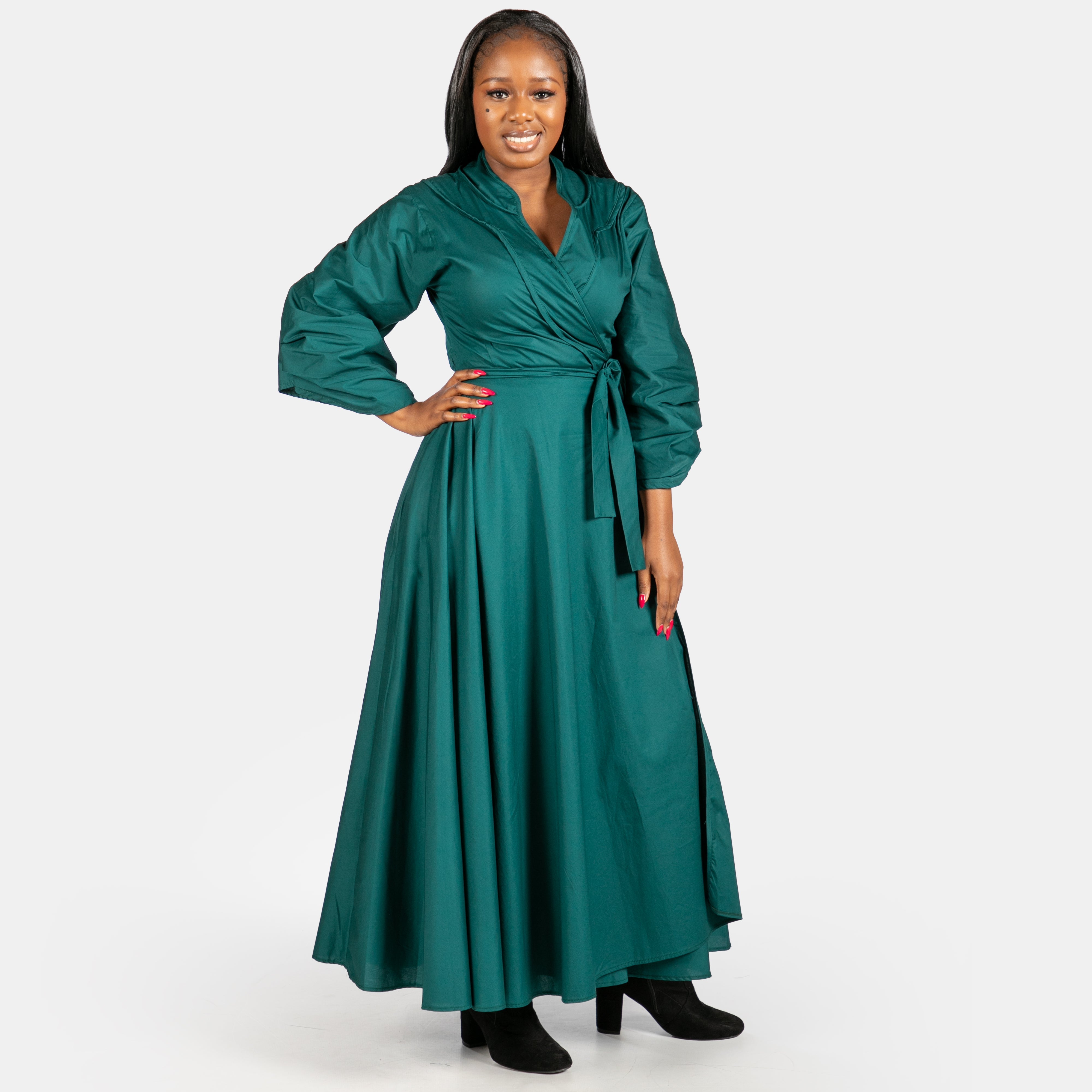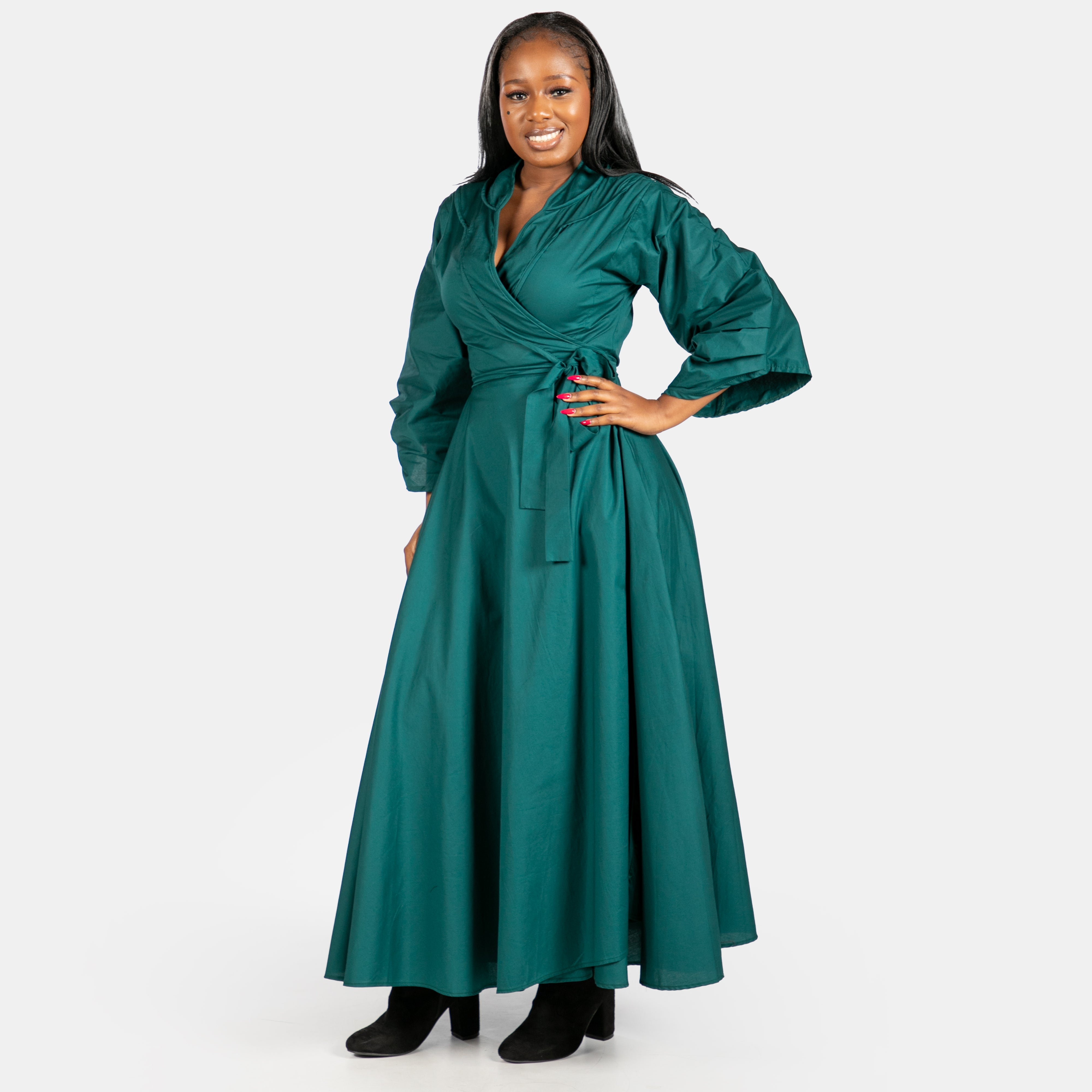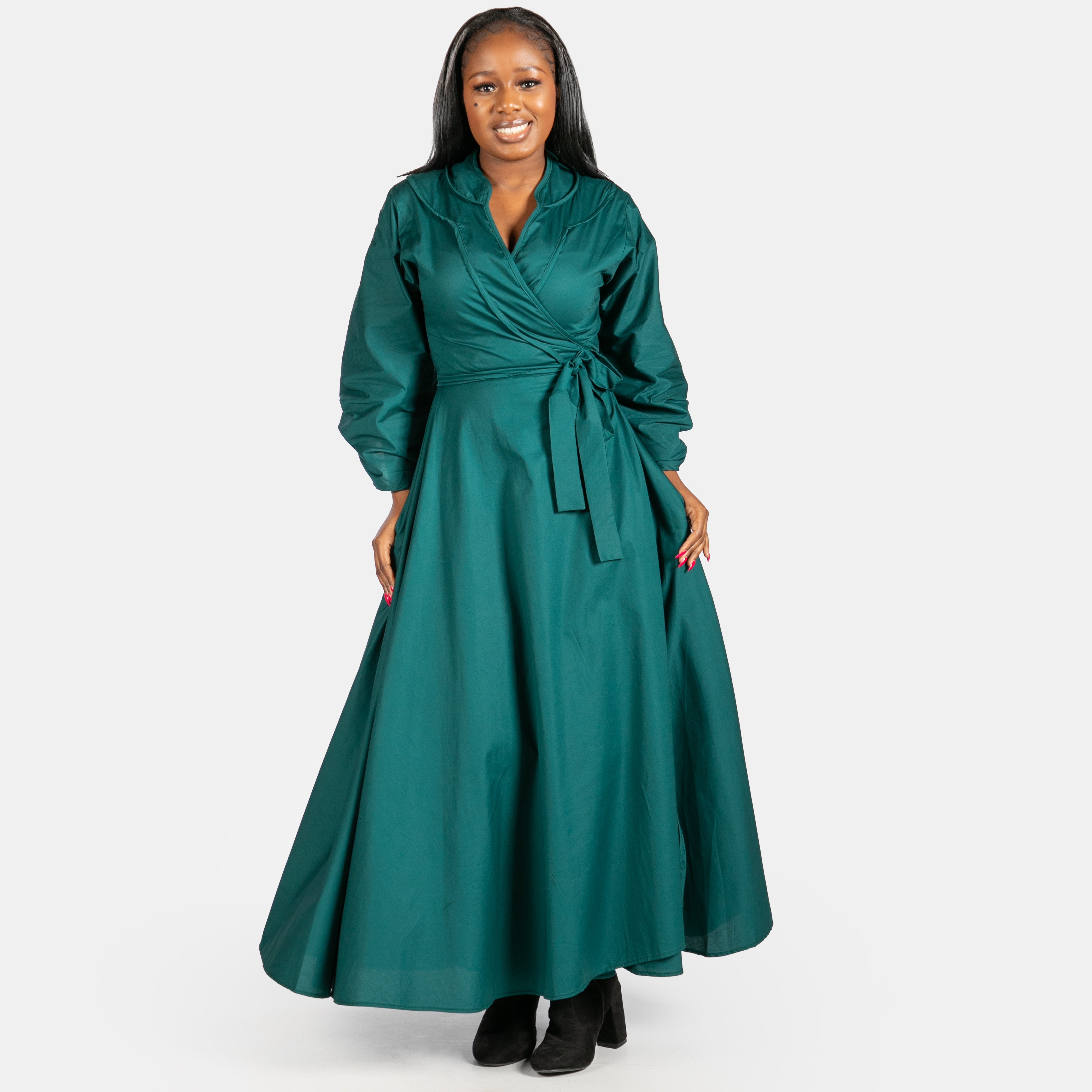 The Scarlet wrap dress is a beautiful addition to your winter selection of special occasion options. Available in two rich jewel colours and sizes Small to 2XL