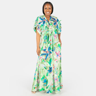 Beautiful Spring florals are the highlight of this maxi dress! Available in three great colours.