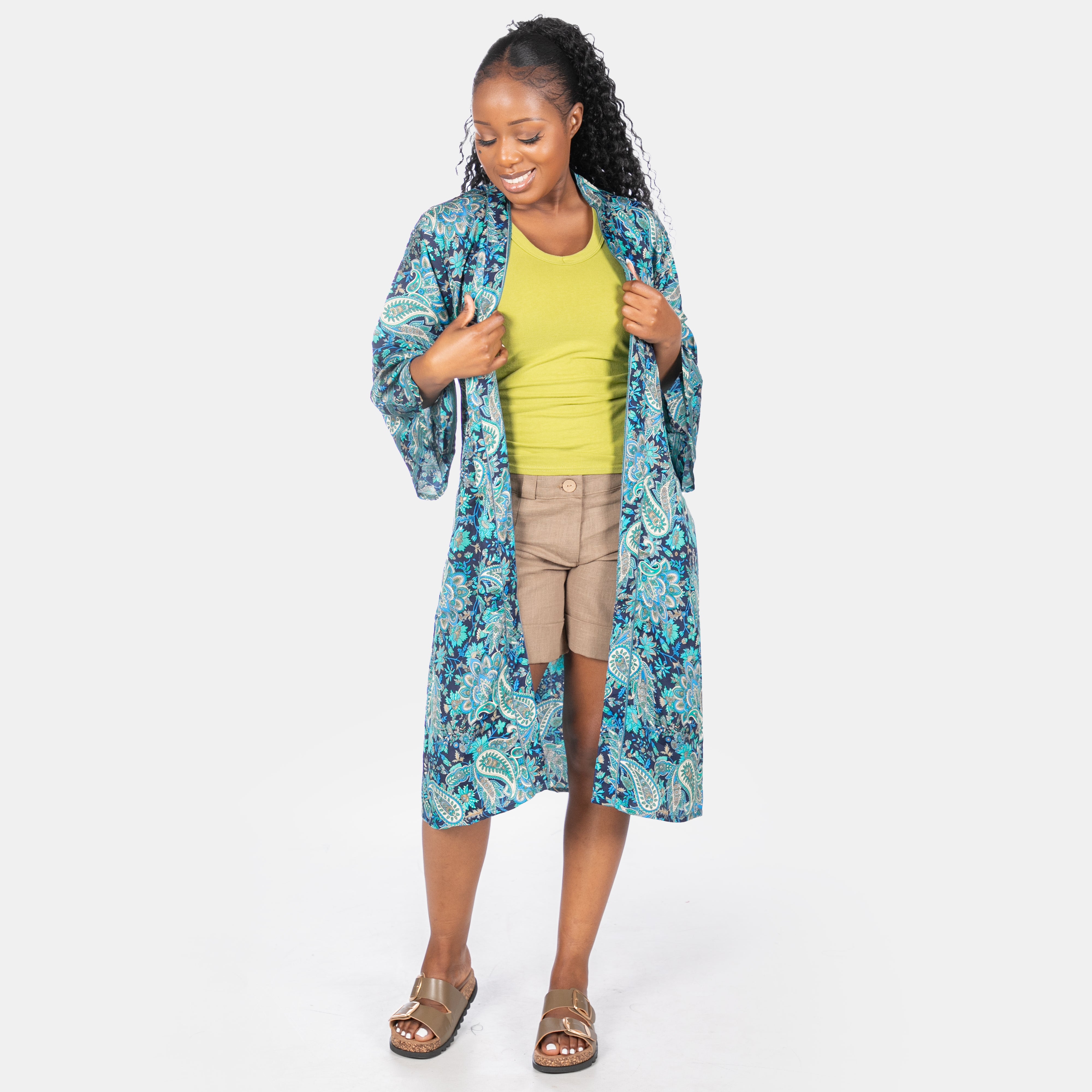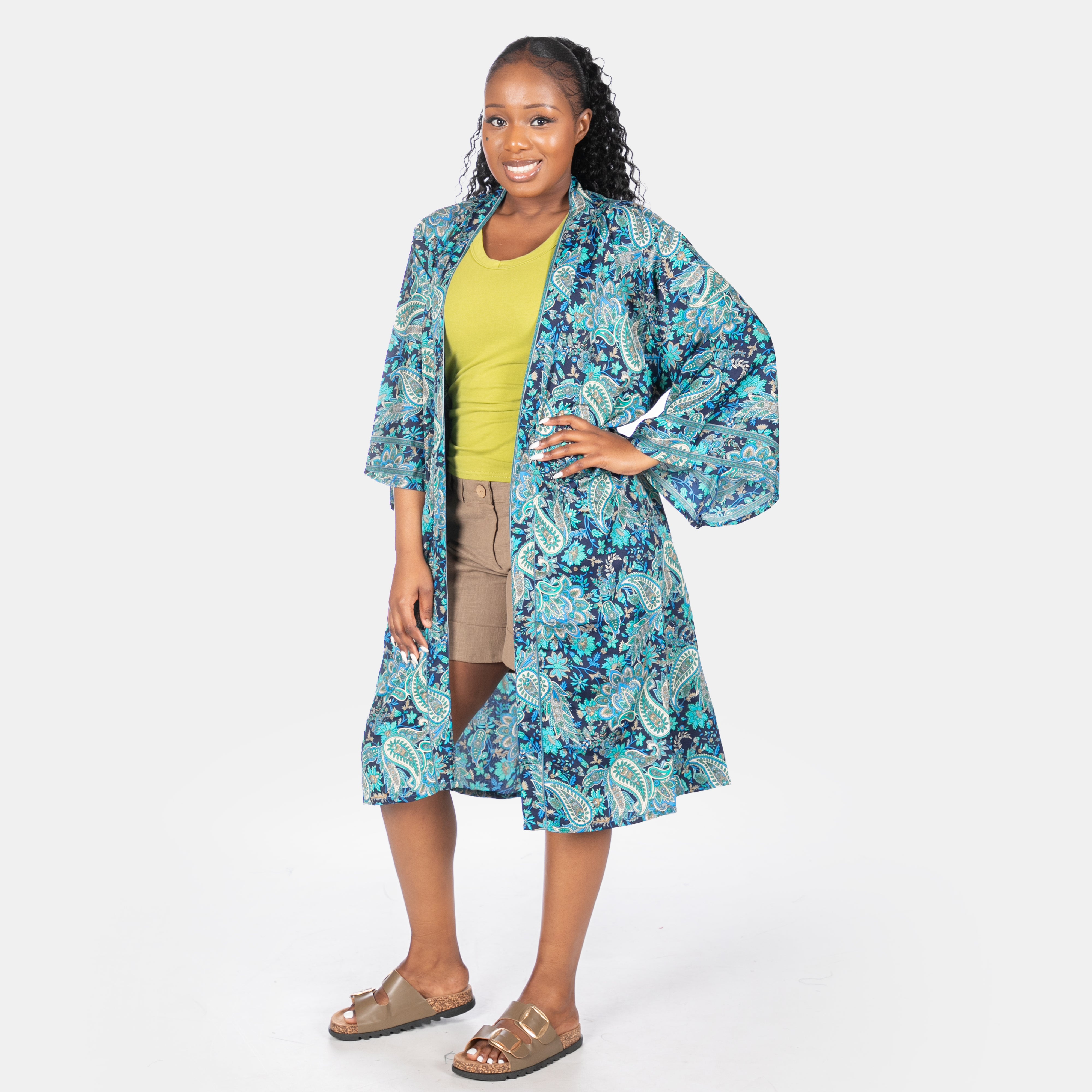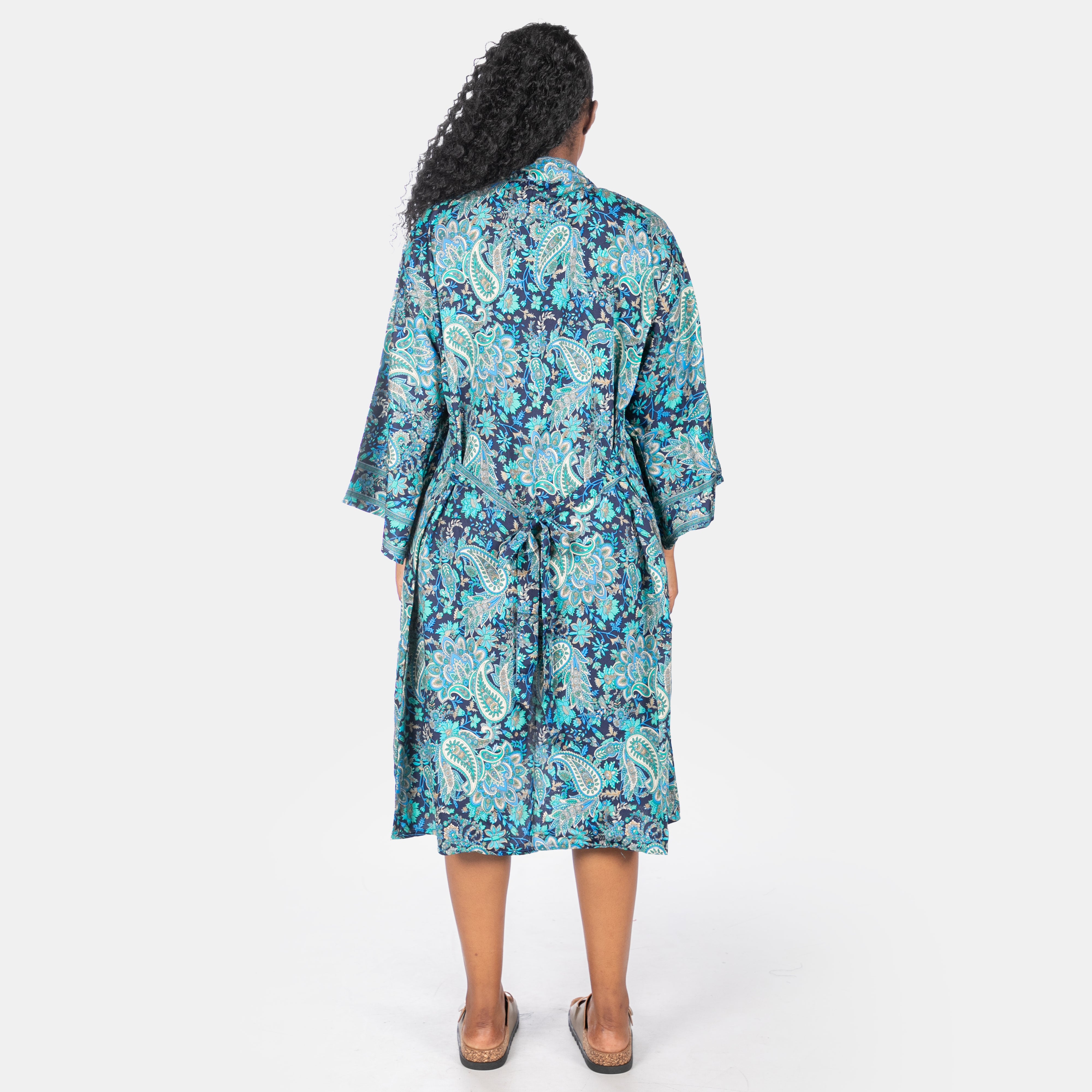 This beautiful soft jacket is the most versatile garment you'll own this Summer. It boasts a soft silky feel to touch, long sleeves and a detachable soft belt. You could wear it as a gown, a kaftan or even a light evening jacket! One size fits most and it's available in three beautiful colours.