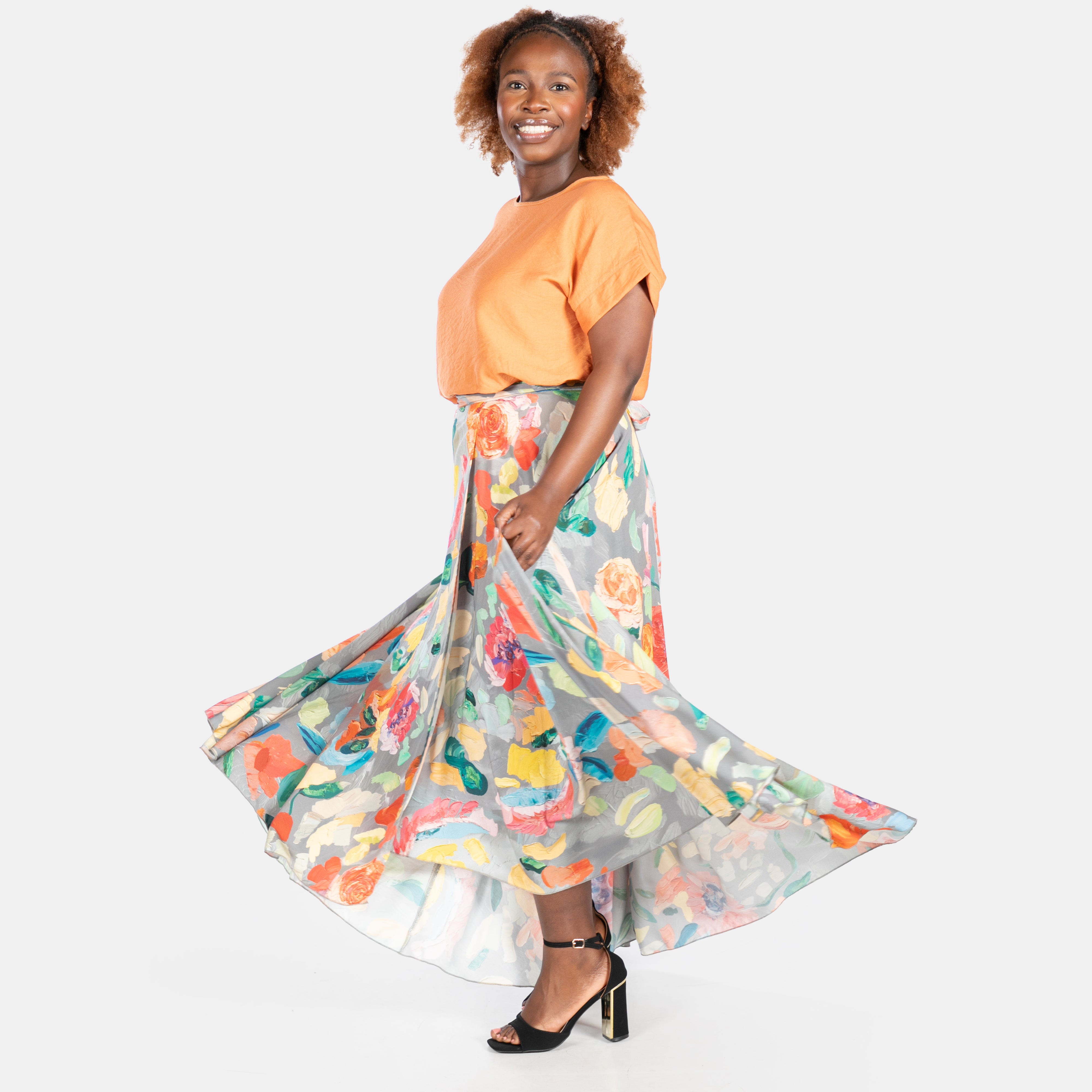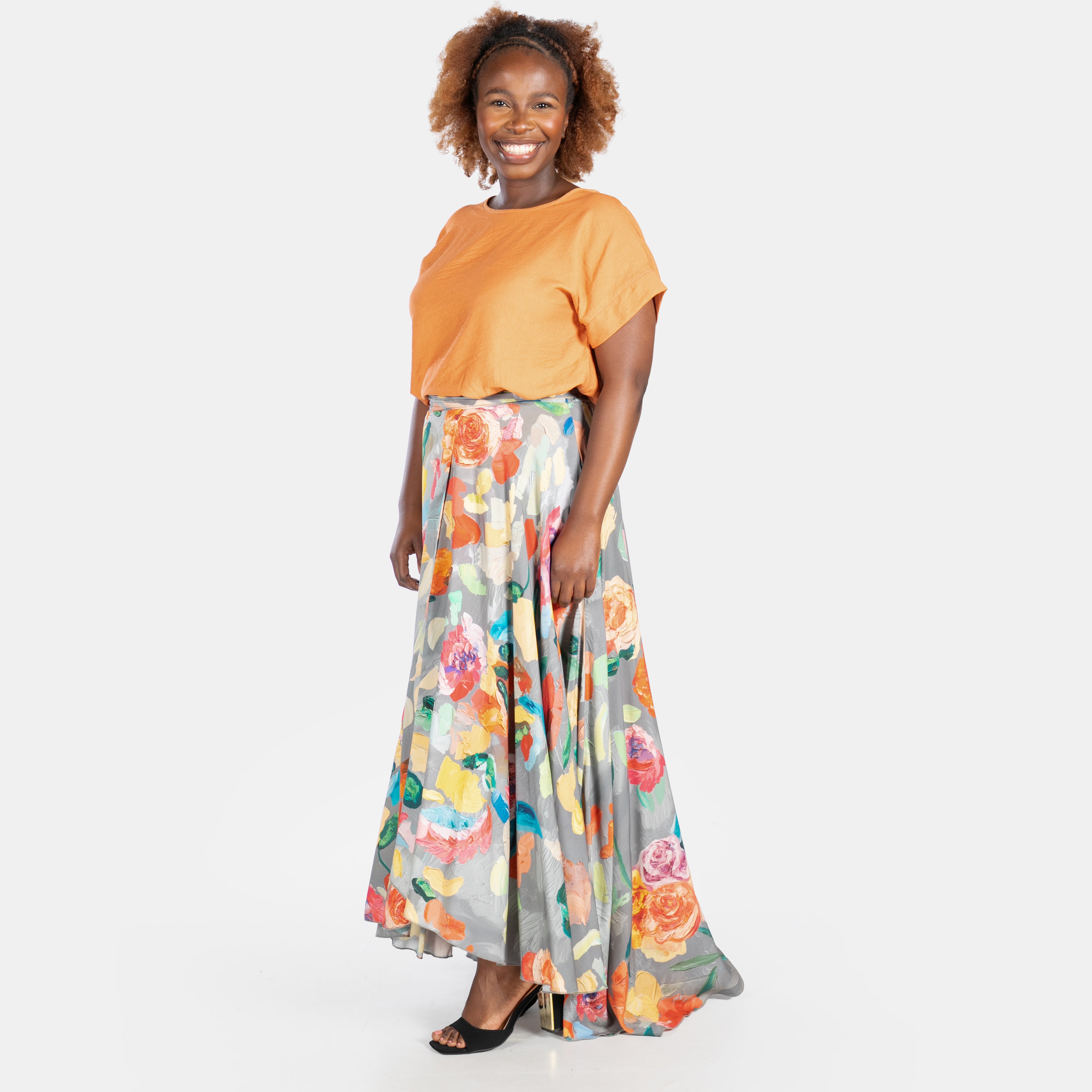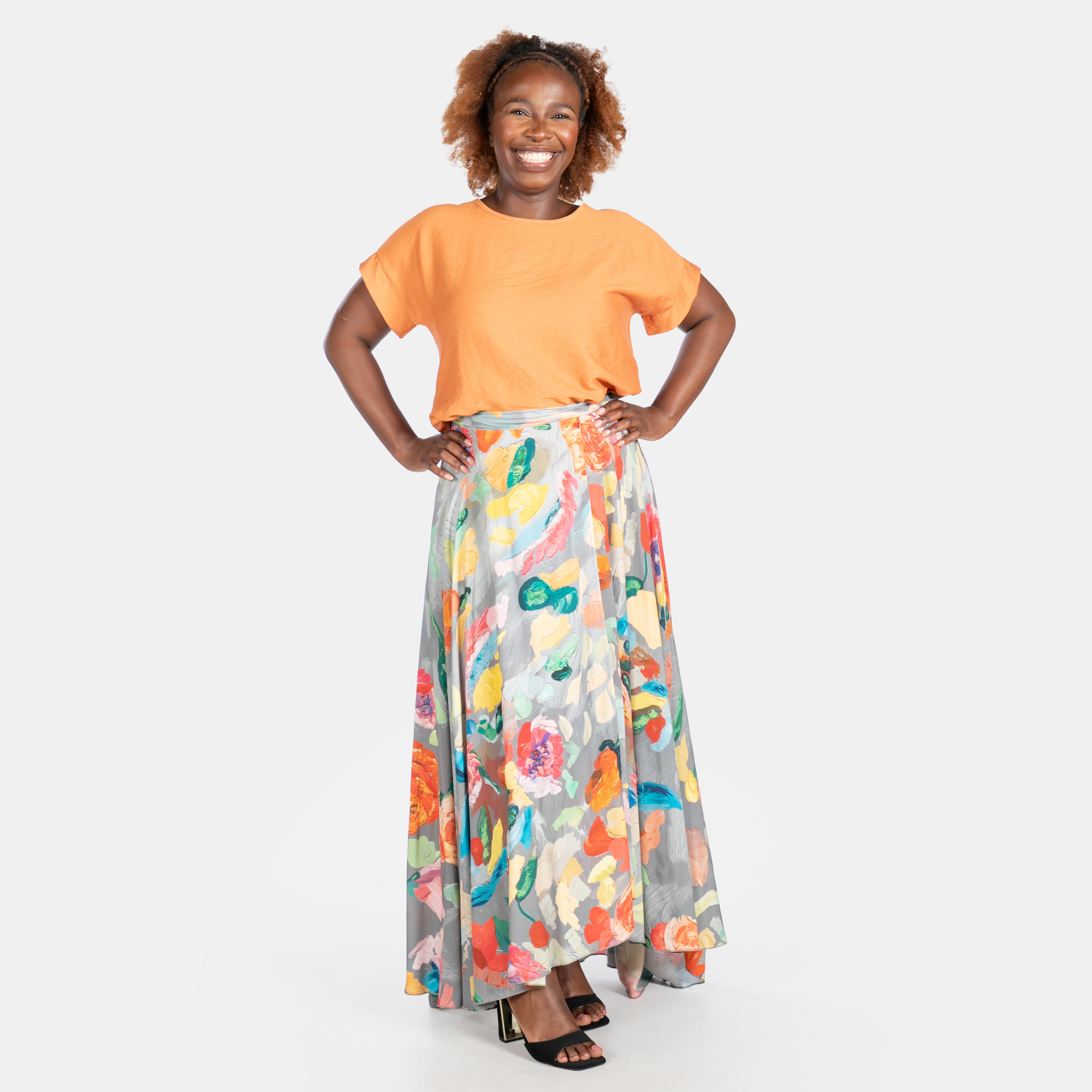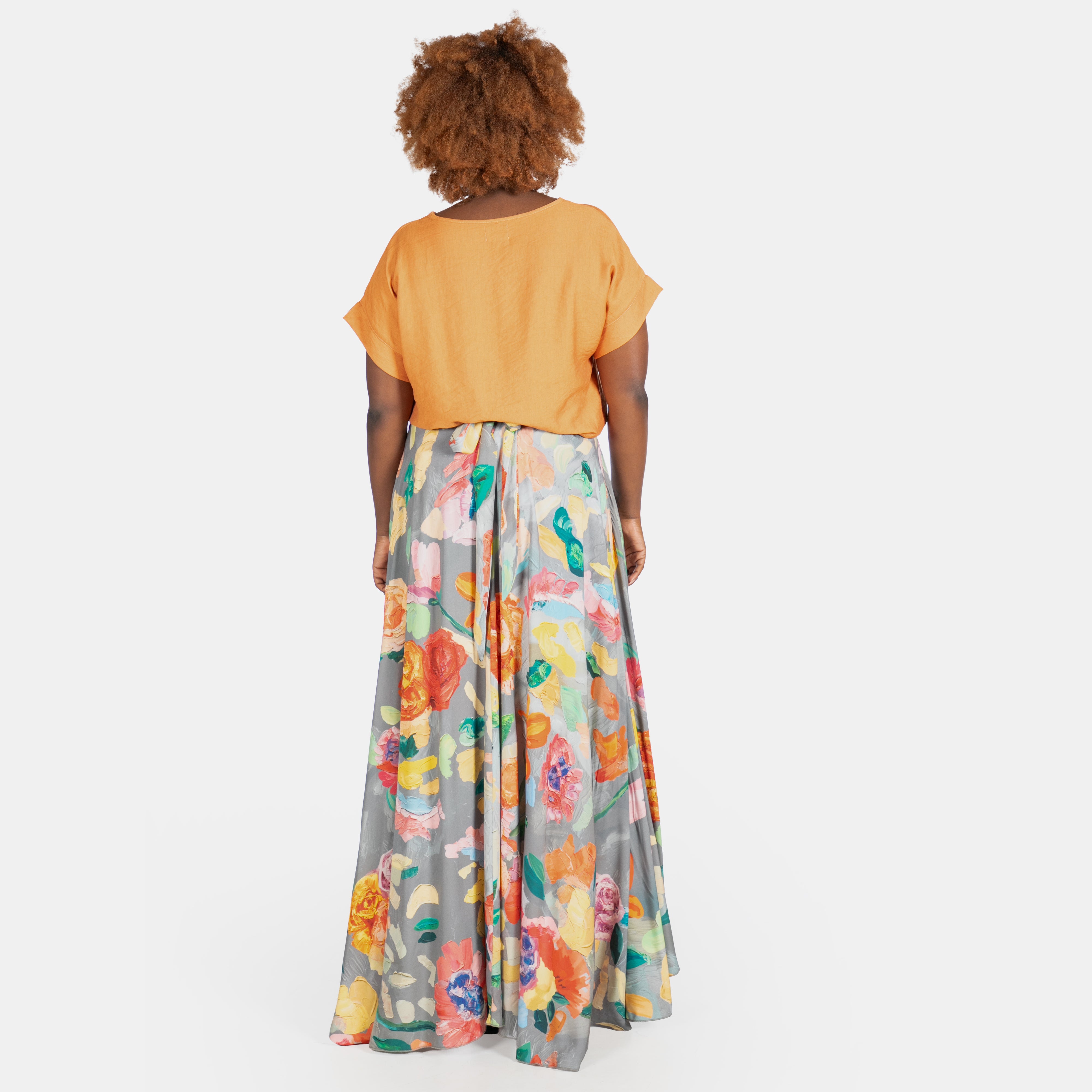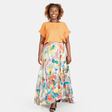 This flowing long skirt adds an elegant statement garment to your Summer collection.