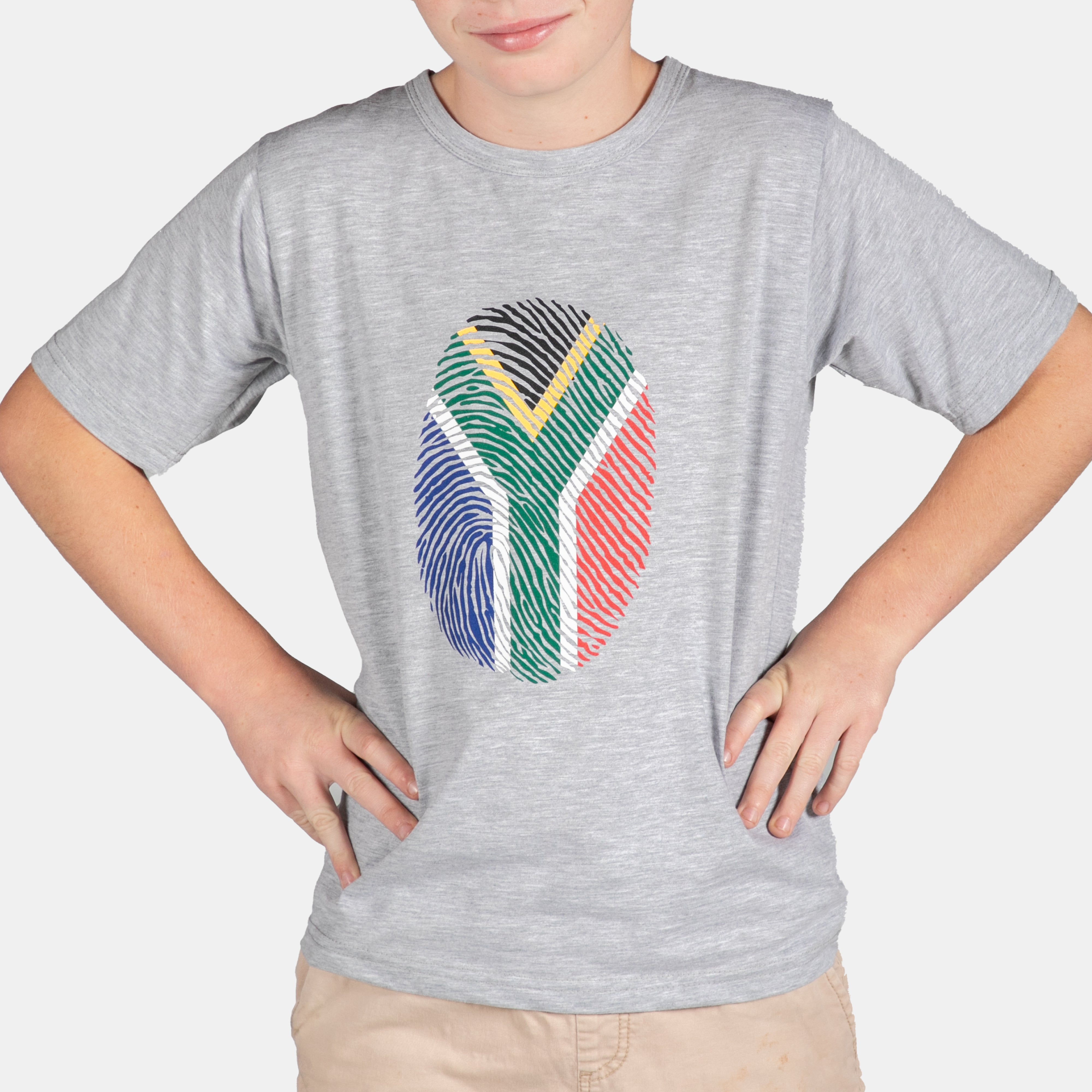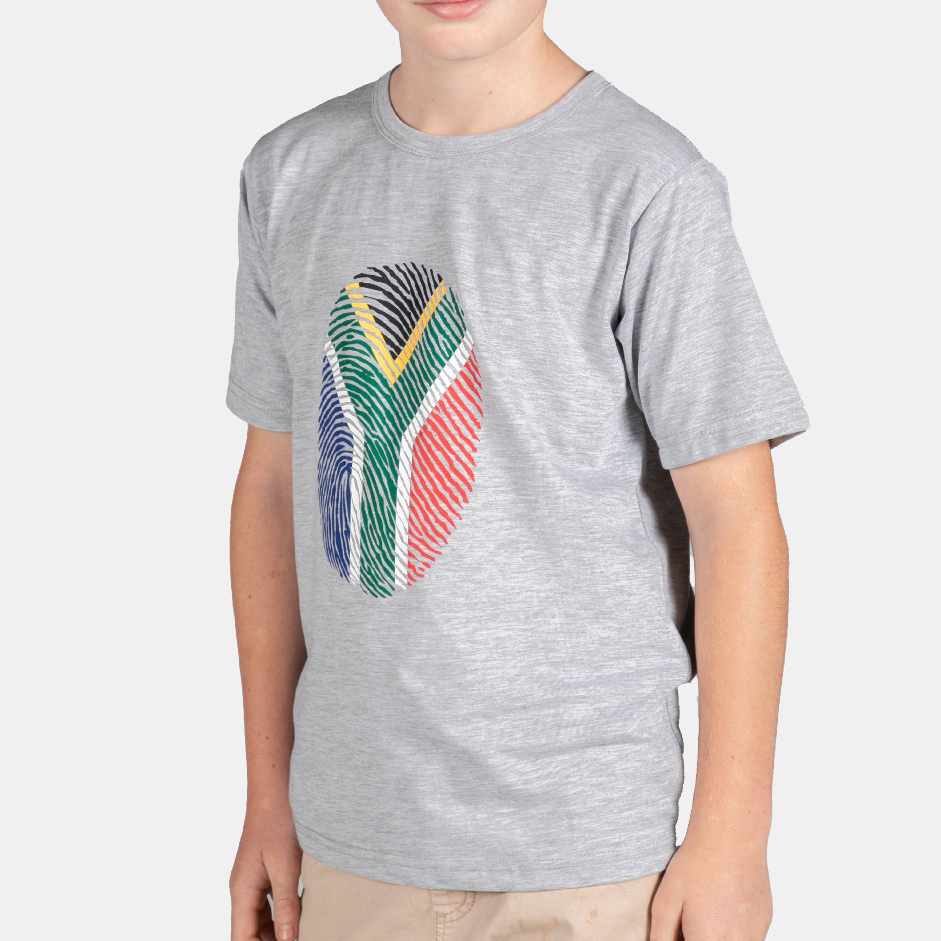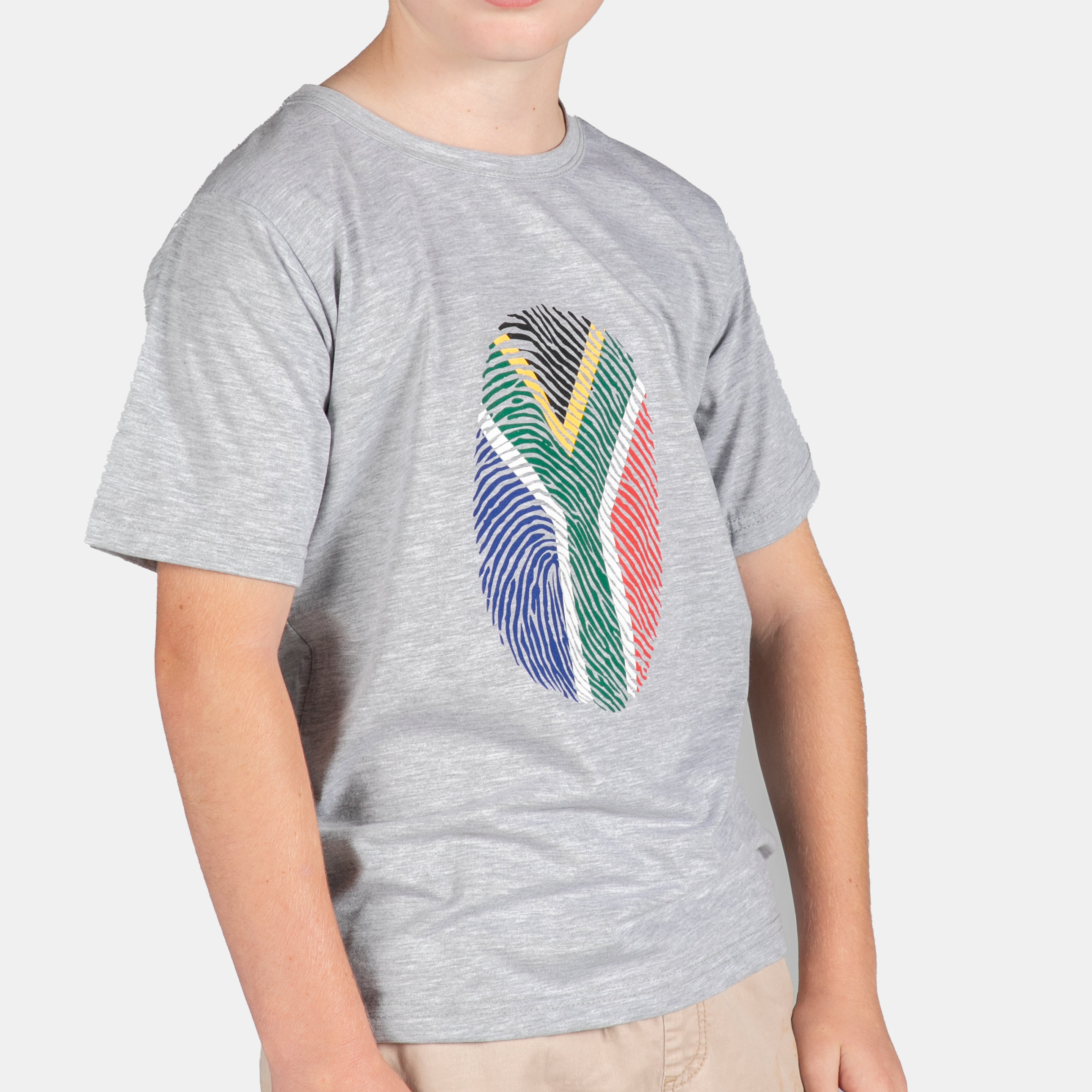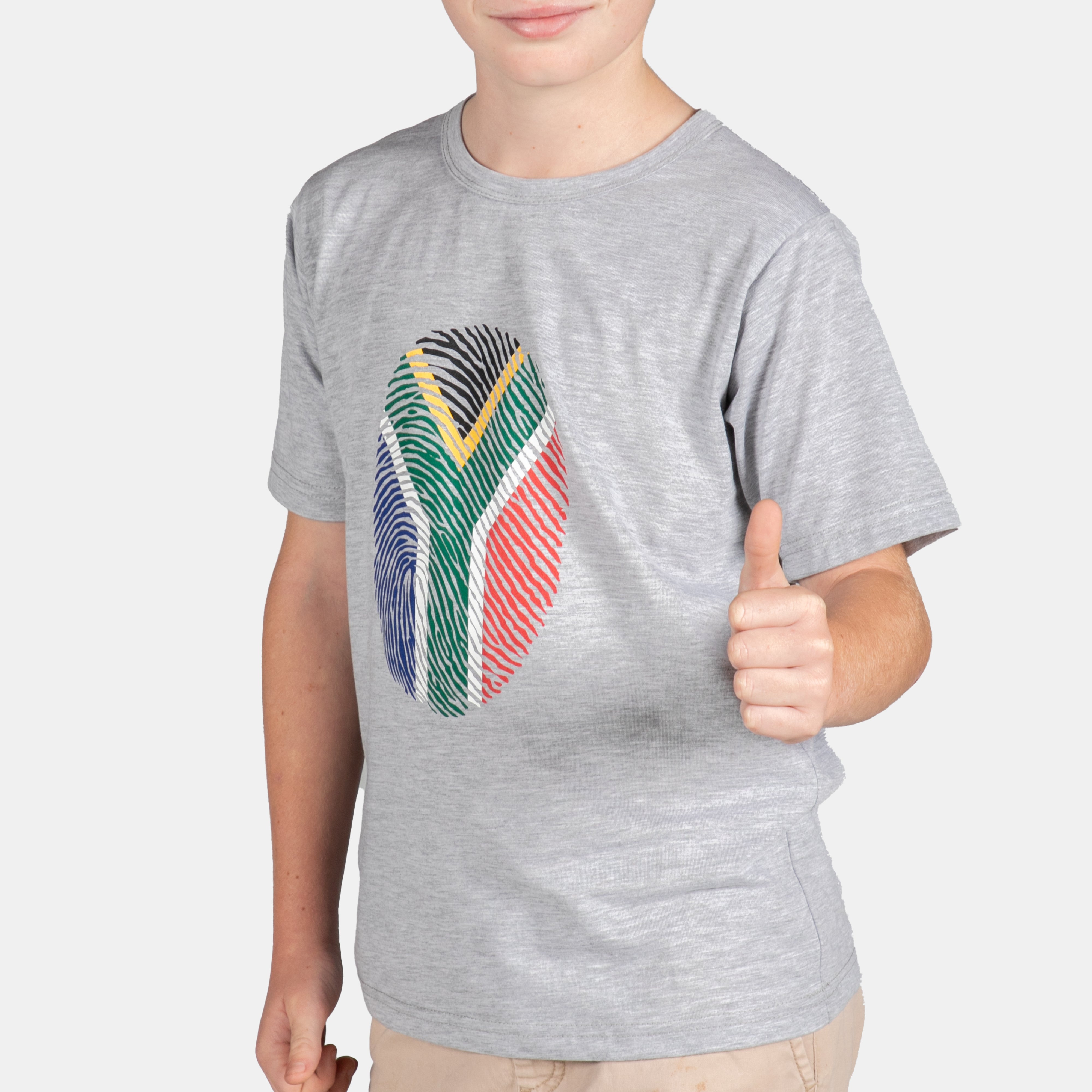 Kid's Junior South African Fingerprint T-Shirt - Grey