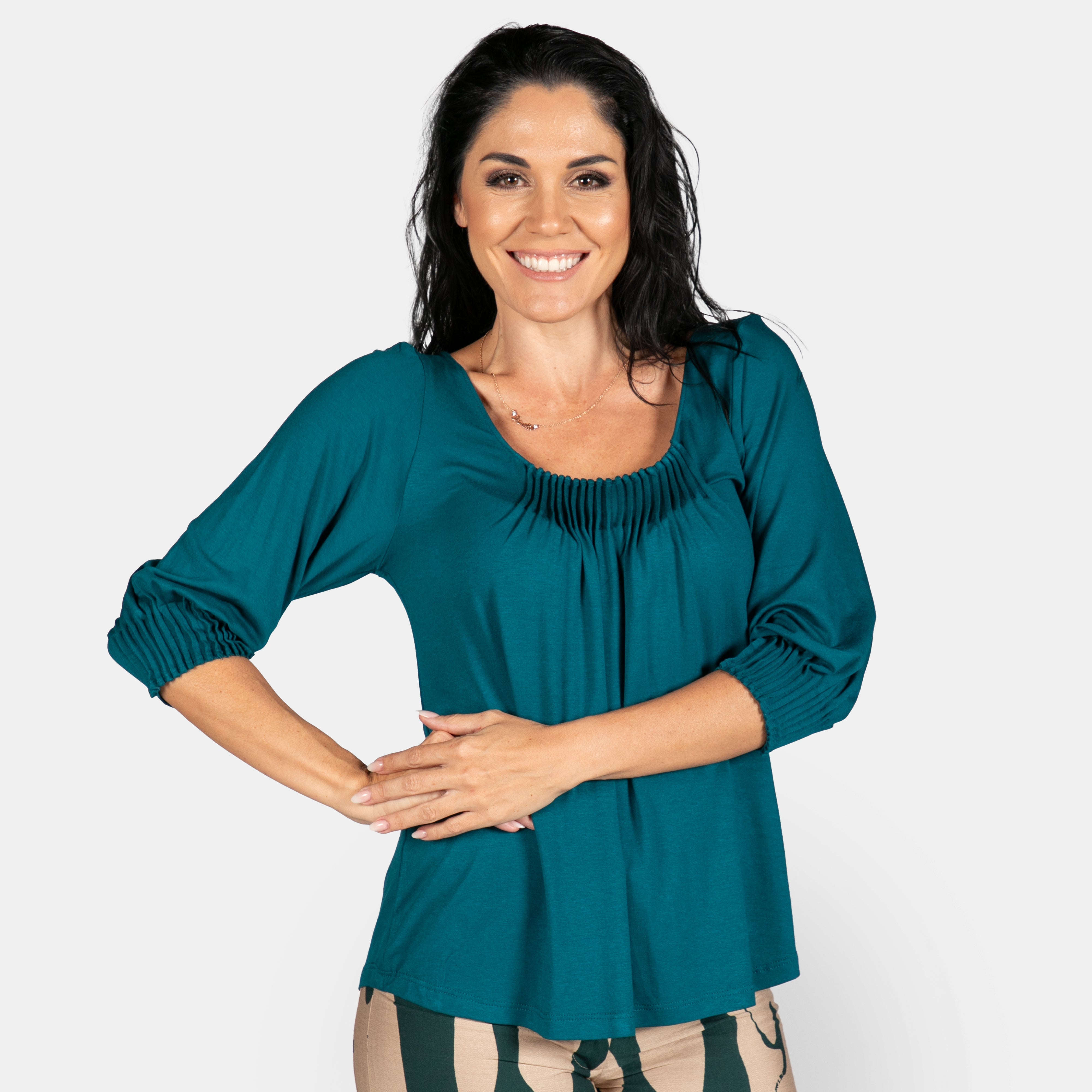 The 3/4 sleeves also feature the pleats on the elasticated cuff.
