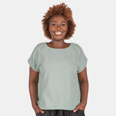 The playful frayed detailing adds instant character and movement to the piece, while the streamlined silhouette keeps things effortlessly cool.