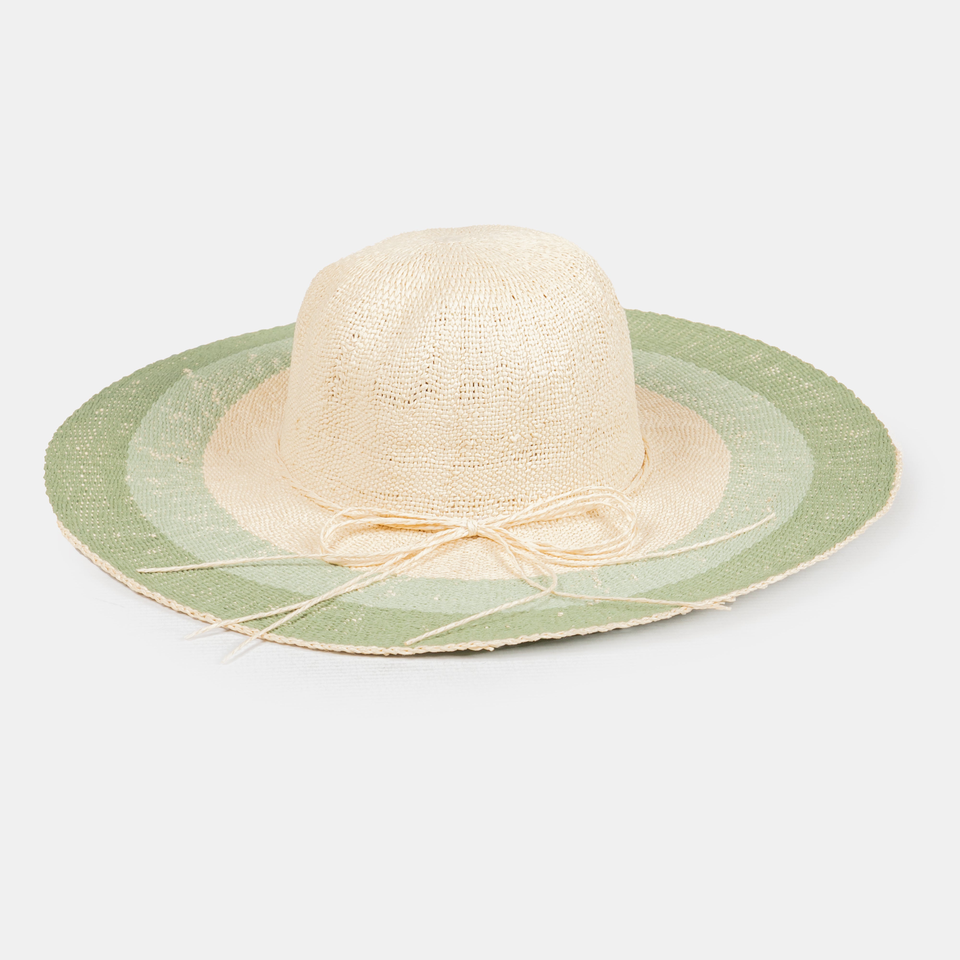 This stylish fibre woven hat is a wonderful accessory to your Summer holiday ensemble. It features a wide brim and a generous, breathable round crown with a thin string tie. The entire hat is woven in expanding bands and tones of Mint Green.