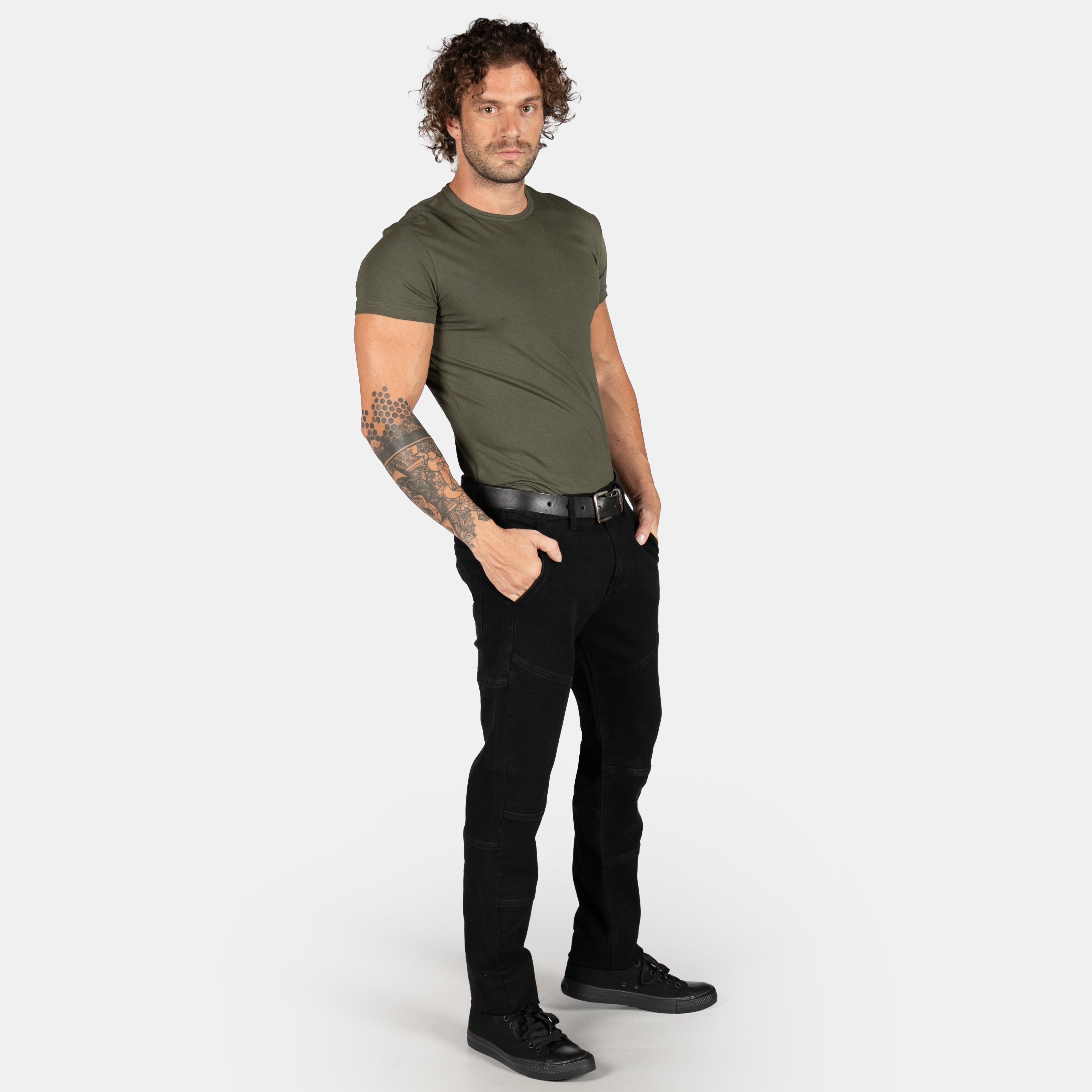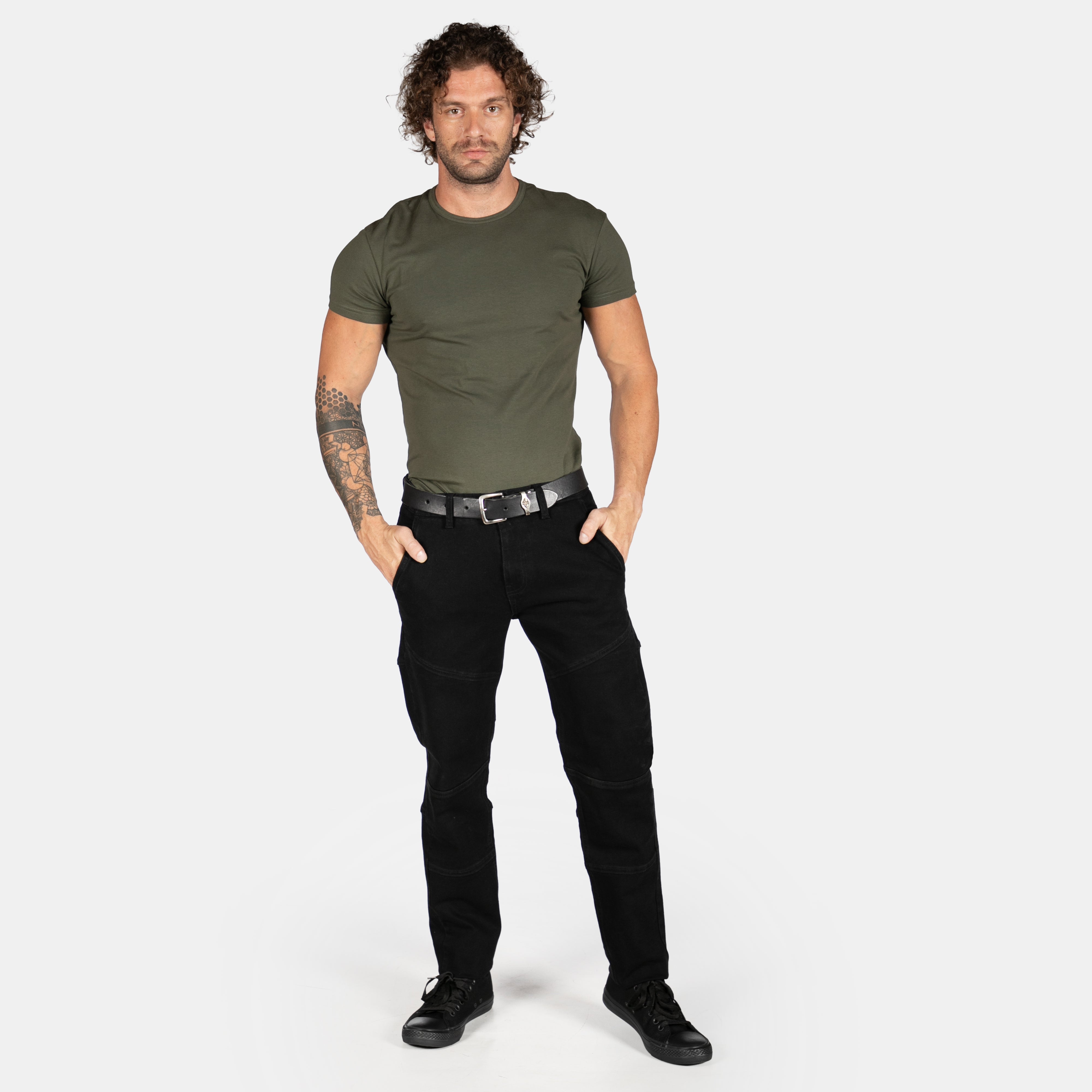 The Alvar pants are casual longs for men with style. They feature a waistband with belt loops and a zipped and button closure. The standard side seam pockets are present as well as two patch pockets on the back. You will notice the Mazerata insignia embroidered onto one of them. The legs are straight regular fit with feature diagonal seams placed strategically all down the length. These pants are manufactured in a robust cotton with detailed overstitching for practical and aesthetic purpose. Available in sizes XS to XL.