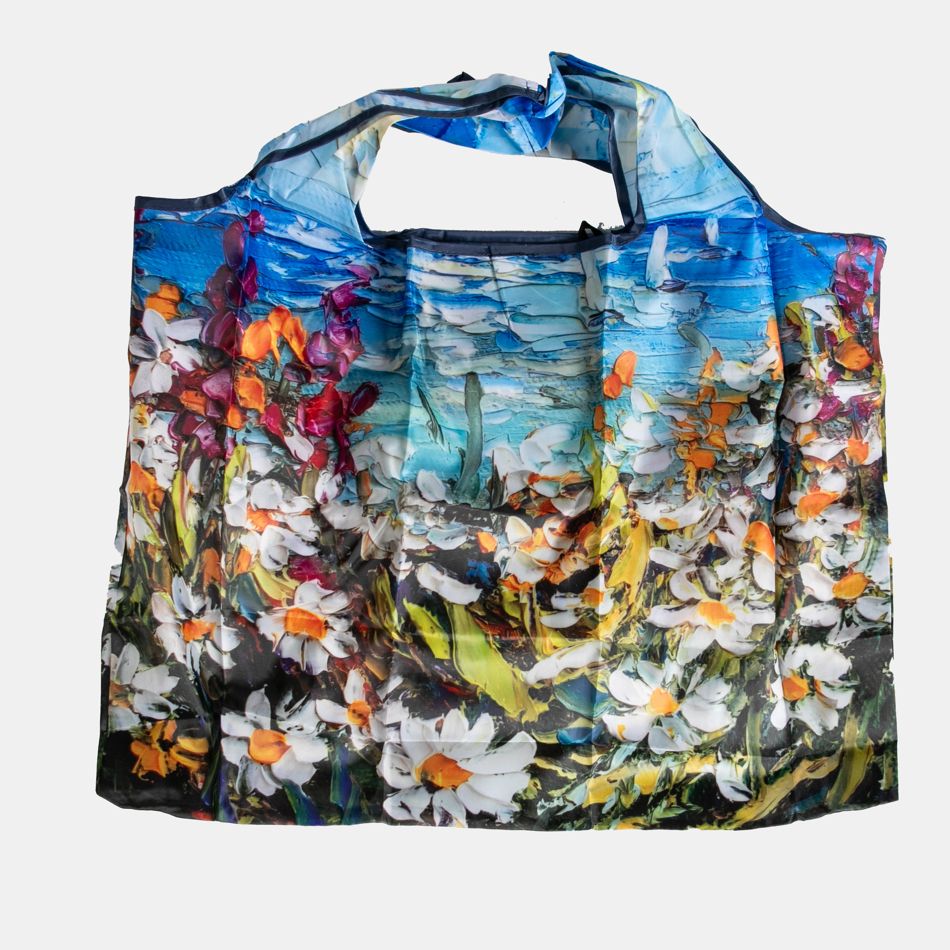 Fold this tote bag up and place it in it's sleeve to keep in your bag when you need it. Opened up it displays beautiful artwork inspired by a legend artist, measures 37cm x 49cm and is large enough to carry up to 15kgs. The sleeve also doubles as a small pouch within the bag.